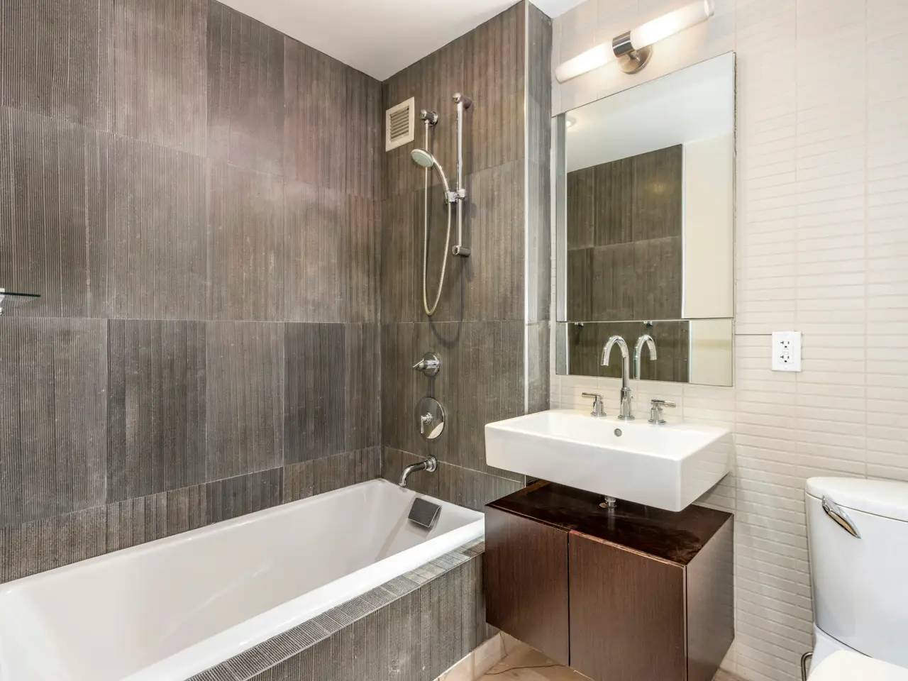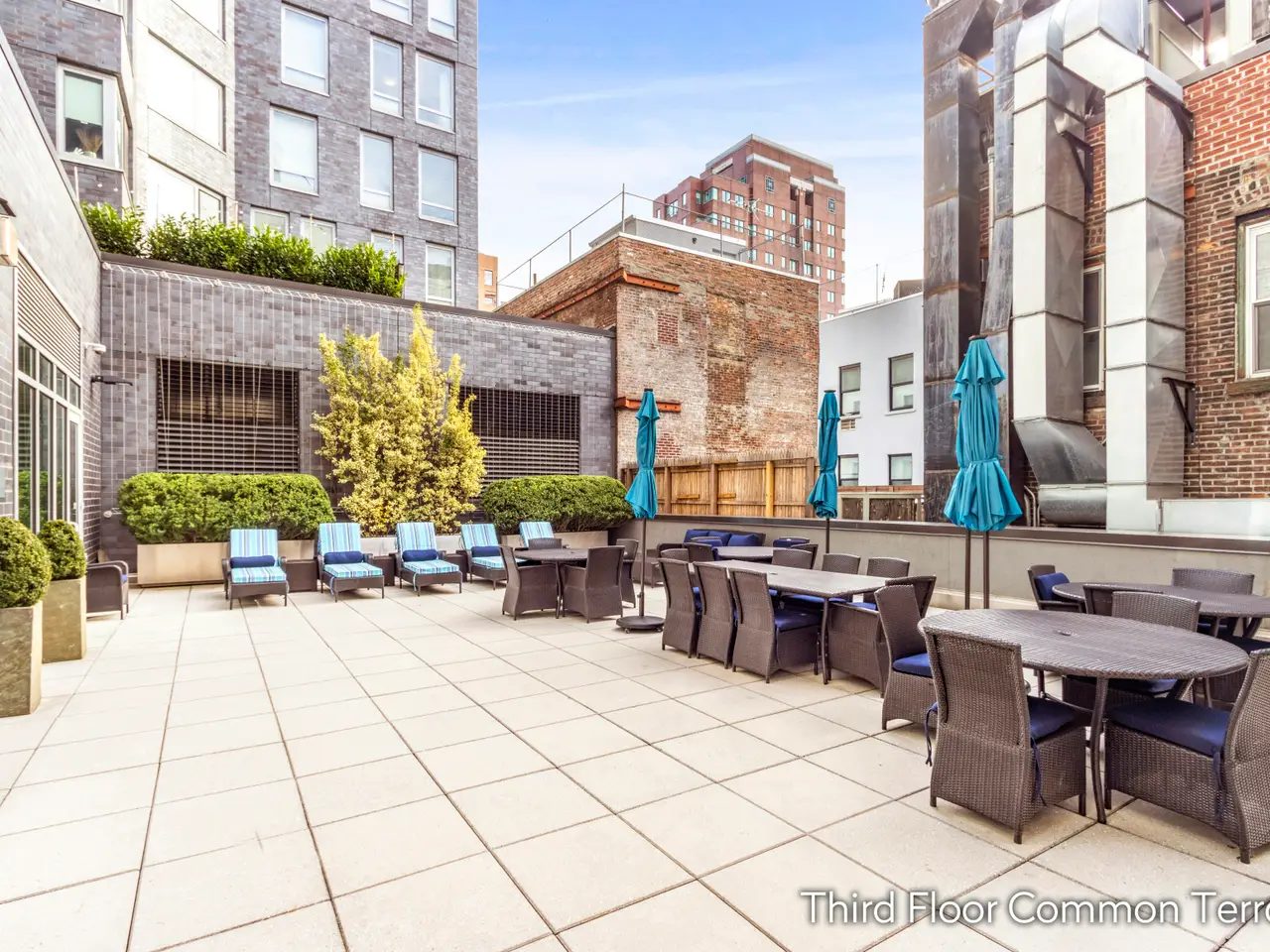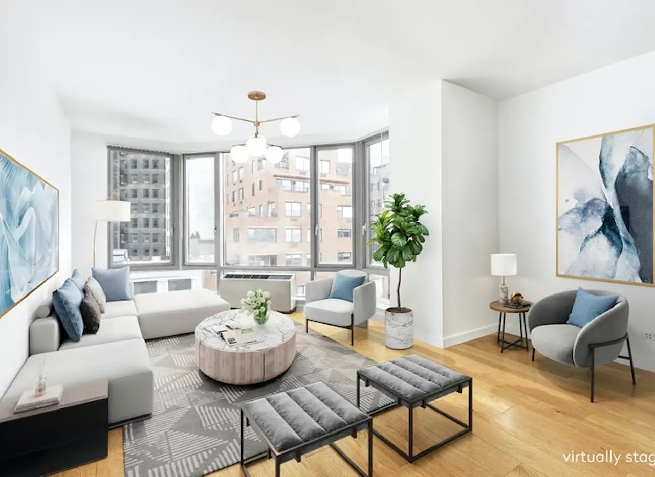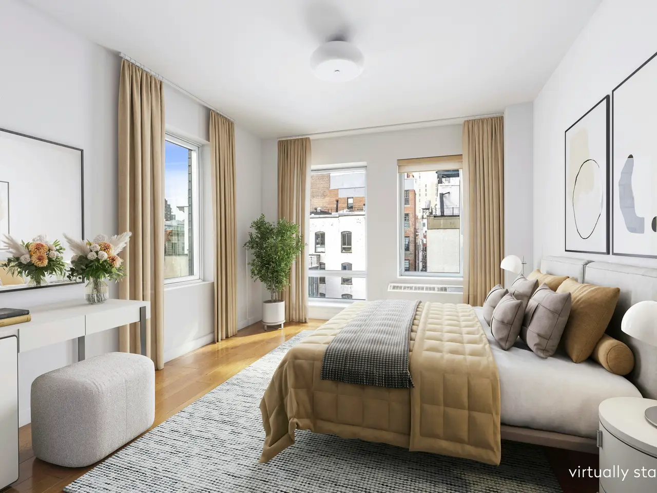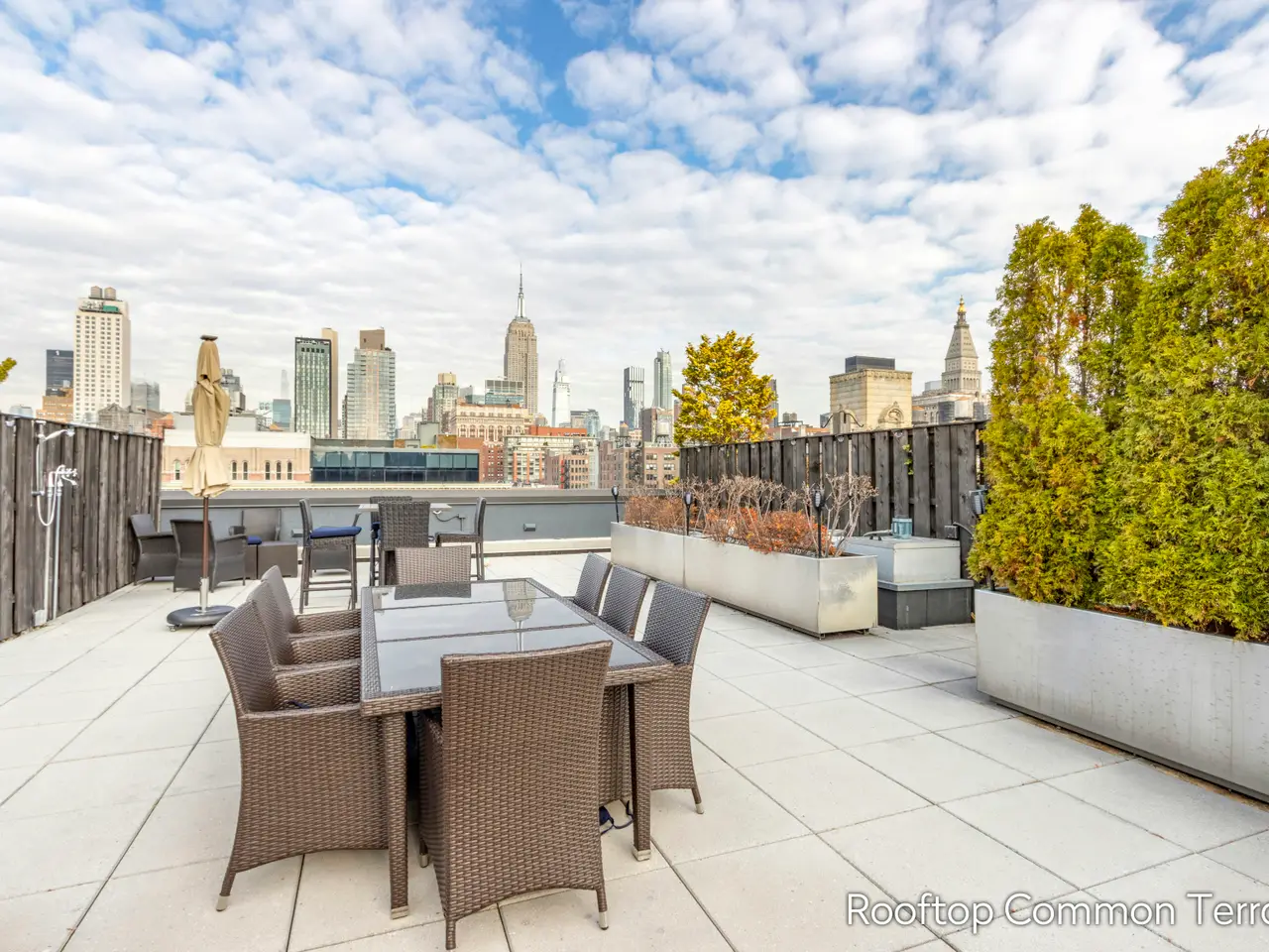 This is a condominium which requires submission of a condo online rental application. In Unit Washer/Dryer. Residence 6E is a beautifully designed two-bedroom, two-bathroom unit offering approximately 1,430 square feet (per offering plan) of stylish living space in the heart of Chelsea. Designed by Garett Gourlay and completed in 2008, this corner home showcases floor-to-ceiling windows, open city and sky views, and an abundance of natural light from South, East, and West exposures. The open kitchen features a breakfast bar finished with Zimbabwe black granite countertops, and top-of-the-line appliances including Sub-Zero refrigerator with two drawer freezer, Miele 5-burner gas cooktop, double convection oven, microwave, U-Line wine refrigerator and built in Nespresso system. A separate dining area easily accommodates a six-person table or can double as a home office. With its split-bedroom layout, the residence offers ideal privacy. The oversized primary suite features two closets including one customized walk-in, and a luxurious en suite bath with dual vanity, soaking tub and separate walk-in shower. On the opposite side of the home, the second bedroom comfortably fits a king-sized bed and includes its own custom closet. A second full bathroom with soaking tub and shower can be found close by. Modern comforts include nearly 10ft ceilings, in-unit washer/dryer (vented), in-sink garbage disposal, wide-plank oak hardwood floors and numerous oversized closets. Building amenities include 24-hour doorstaff, full-time super, fitness center, bike room, and a package room with cold storage. On the second floor, residents enjoy access to a meeting room with a catering kitchen and an entertaining terrace. A beautifully furnished, ADA-accessible 3,500 SF common roof terrace offers a grilling station and iconic panoramic views spanning from Chelsea to Tribeca and featuring the Empire State Building and World Trade Center. Perfectly situated, this full-service condominium offers the best of prime Chelsea, just moments from Westside Market, Trader Joe's, Whole Foods and Fairway. Convenient subway and bus access ensures seamless connections throughout Manhattan, with Union Square, the Flatiron District, and Greenwich Village only minutes away. Select images have been virtually staged for design inspiration. Please contact us to schedule a private showing. Pets case-by-case. Upfront Tenant's Fee Disclosure: First month's rent; One month's security deposit, Move in deposit $500; Move in fee $1,000; Move out fee $1,000, Online application processing fee $65; Application Administration fee 5% of total