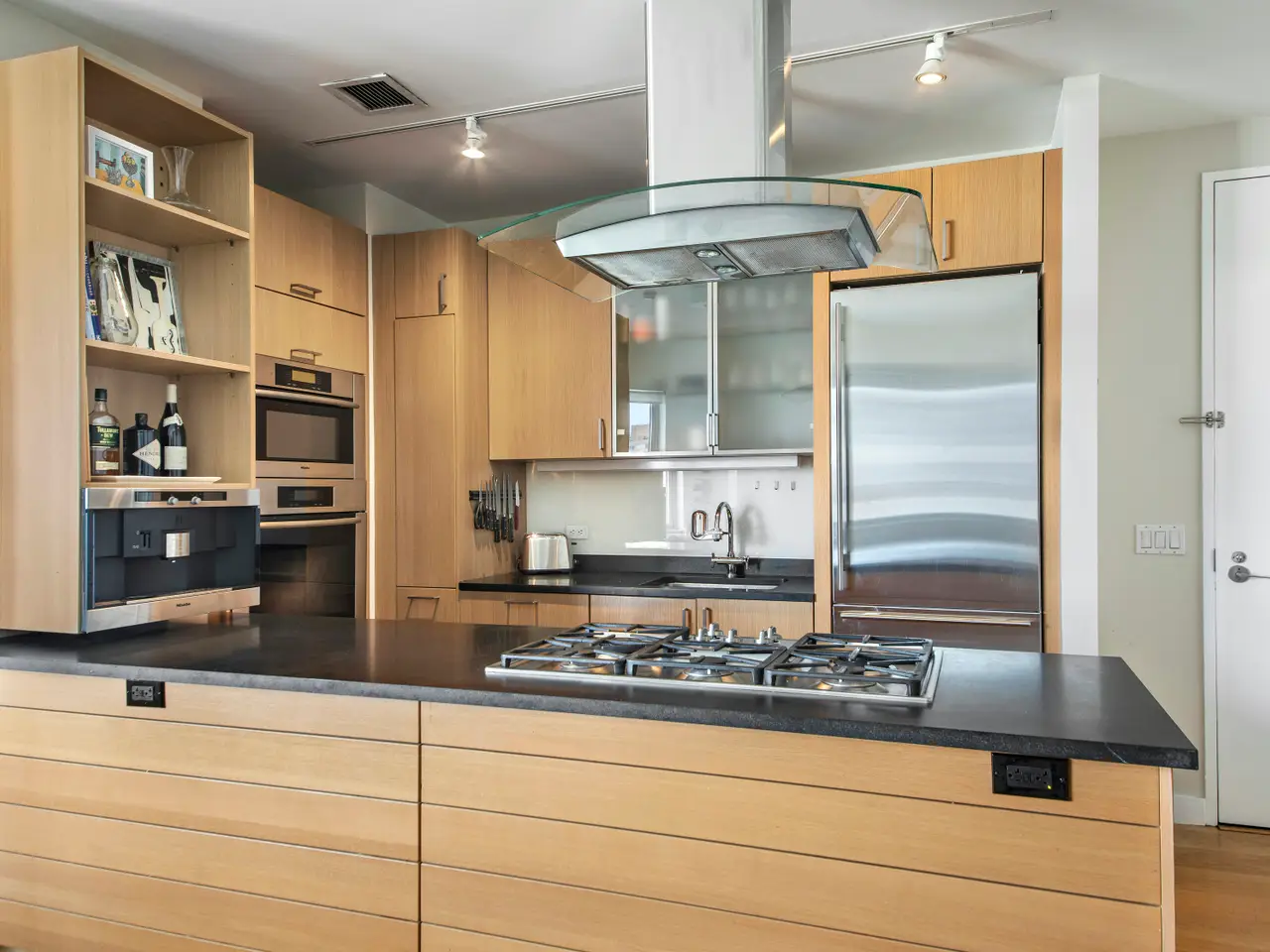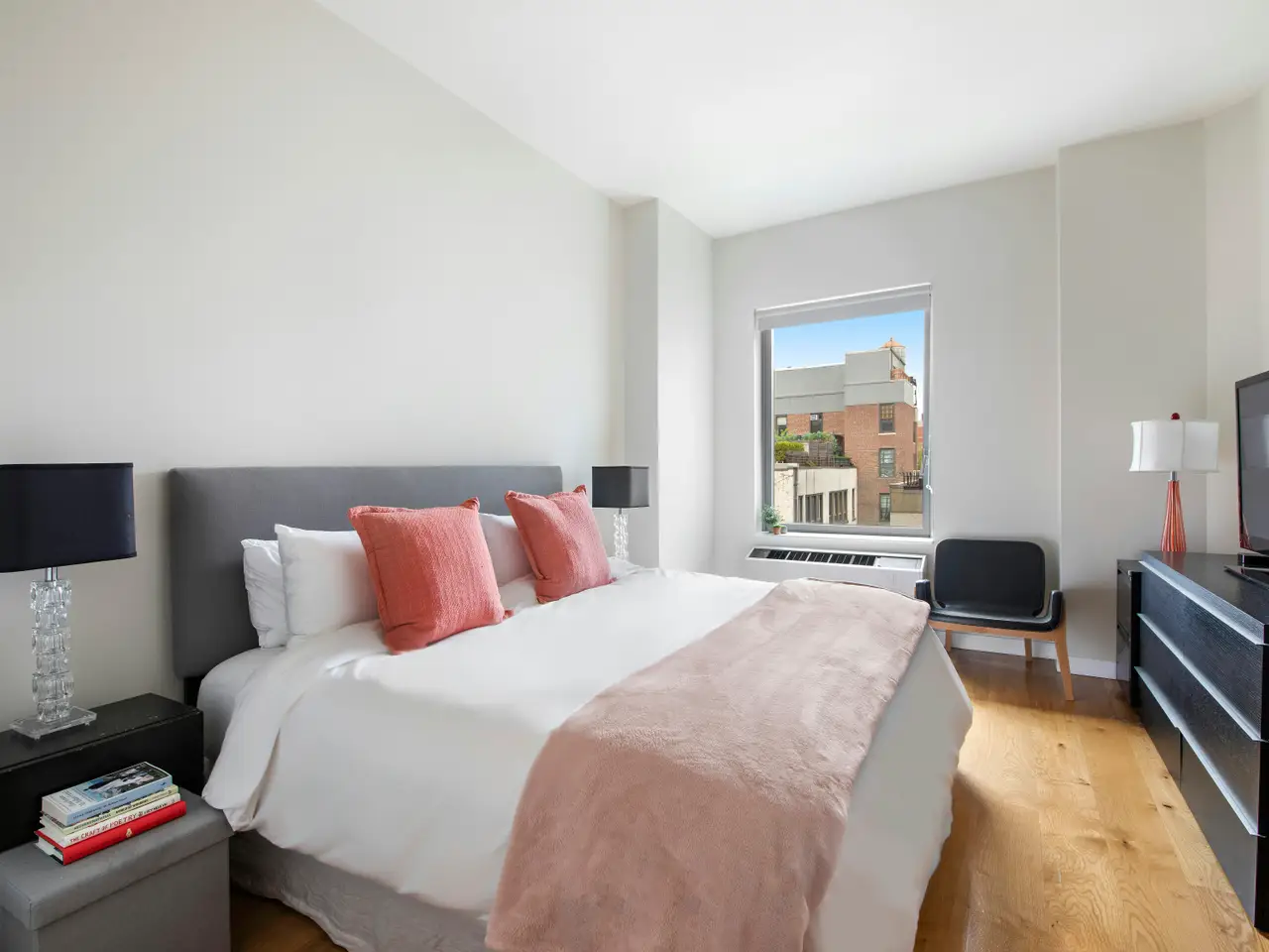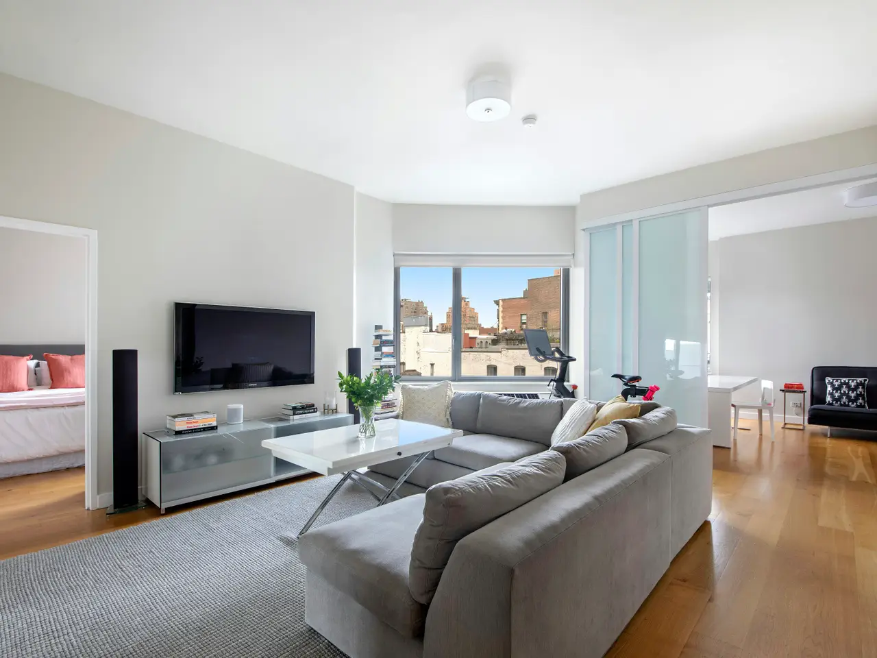 Tenant in place until 12/14. Available December 20, 2025. Live luxuriously in this beautiful sun-drenched 2 bedroom, 2.5 bathroom condominium with open south and west exposures and split bedroom layout for optimal privacy.7F is designed with high-end finishes and has wide-plank oak hardwood floors that flow throughout with 10'4" ceiling heights. The spacious living room overlooks city views and connects to a gourmet kitchen with Zimbabwe black granite countertops, Sub-Zero stainless steel refrigerator, 26 bottle U-Line wine refrigerator and Miele kitchen appliances, including 5 burner cooktop, double oven with convection microwave and a built-in Nespresso coffee/cappuccino system. Your king-size primary bedroom with a huge walk-in custom transform closet and en-suite five-fixture bathroom, features a deep soaking tub, separate glass shower and double sinks. The secondary bedroom suite is flexible as it opens up to the living room and offers plenty of closet space and it's own en-suite bath. A full-size vented GE Washer/Dryer within unit and private storage locker in the basement included. Located in the heart of Chelsea, one of New York's most desired neighborhoods, 100 West 18th offers a host of amenities, including a full-time doorman, live-in super, fitness center, club room with billiards and catering kitchen, a spacious furnished panoramic rooftop deck and Zen garden, plus a bike room and cold storage. Nearby are great restaurants, boutiques and some of the best large specialty stores, not to mention convenient subway transportation.