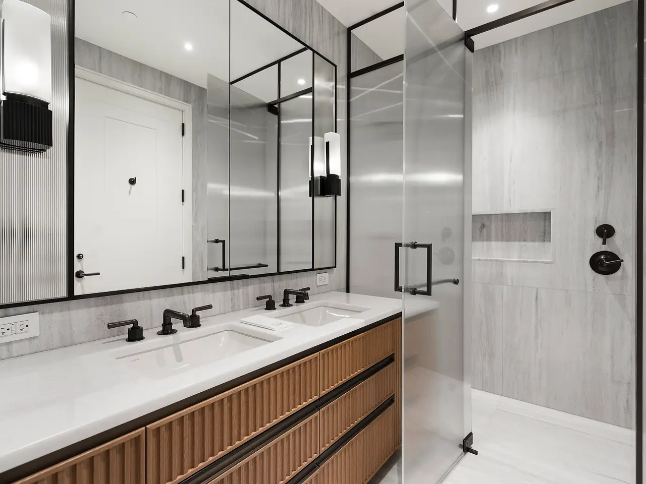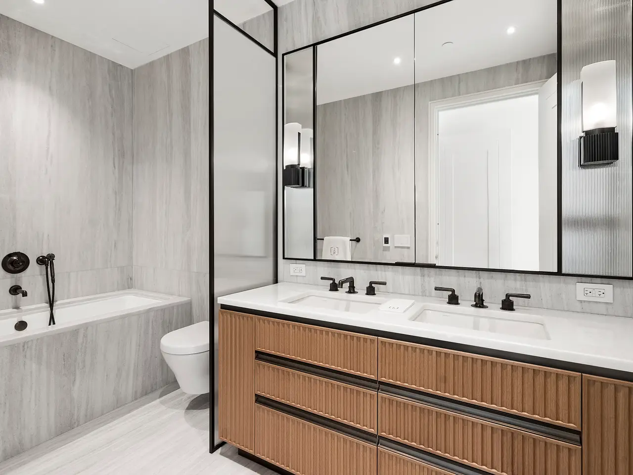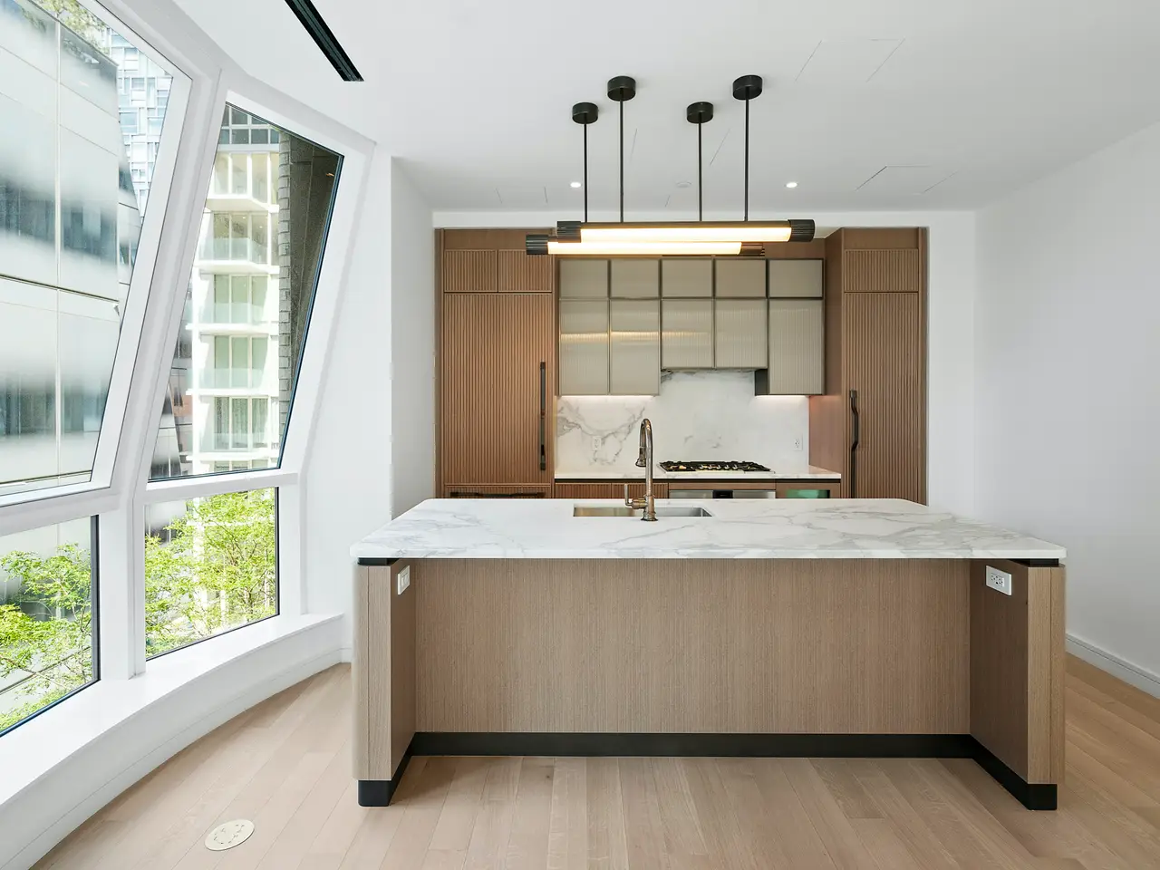 Triple mint 2 bed/2 bath available at West Chelsea's iconic Lantern House. Designed by Thomas Heatherwick Studio with interiors by March and White Design, the level of finishes combined with the floor-to-ceiling lantern-style windows create a truly remarkable residence on the High Line. This oversized home is entirely south-facing with a corner great room boasting both south and west exposures, bathing the home in natural light throughout the day. The open, windowed chef's kitchen features a full suite of Gaggenau appliances including a wine refrigerator. The kitchen is further outfitted with convex fluted oak cabinetry, Calacatta Venato marble slab countertops and backsplash, and custom bronze-finished trim and hardware. The king-size, south-facing primary suite features a large, custom built-out walk-in closet and designer bathroom. The primary bathroom is finished in Nestos Beige marble slab flooring and walls, polished Emperador Grey marble countertops, specialty glass wall sconces and fluted mirror panels, custom double vanity, wall-mounted Toto toilet, and radiant heated floors. There is a large deep-soaking tub and a separate stall shower. The spacious second bedroom boasts a massive south-facing window and a large linear closet. The impeccably-finished second bath features Cristallo honed marble flooring and polished marble wet walls. The second bathroom is further outfitted with a custom vanity, oak cabinetry, and Cristallo Pearl counter. This grand home features ceiling heights of up to 10 ft. There is 5 inch wide plank French oak flooring throughout and a washer and dryer in unit. An unparalleled suite of amenities and Related's best-in-class services complement the architecture and interiors to provide an unrivaled experience. Health and well-being are central to the amenity program at Lantern House featuring a 75 swimming pool, infrared sauna, cold plunge, hot tub, massage/treatment room, steam rooms, a state-of-the-art Health Club programmed and managed by Equinox and a yoga and meditation room overlooking the High Line Park. Additional resident amenities include an outdoor courtyard nestled underneath the High Line, playroom, co-working lounge, library, game room, private dining room, media lounge and rooftop terrace with BBQ grill. Residents of Lantern House will also enjoy exclusive programming, community events and preferred access, tickets and other benefits to an elite segment of art, media, fashion, culinary, wellness and cultural experiences provided by Related Life. Parking is available for additional fee.