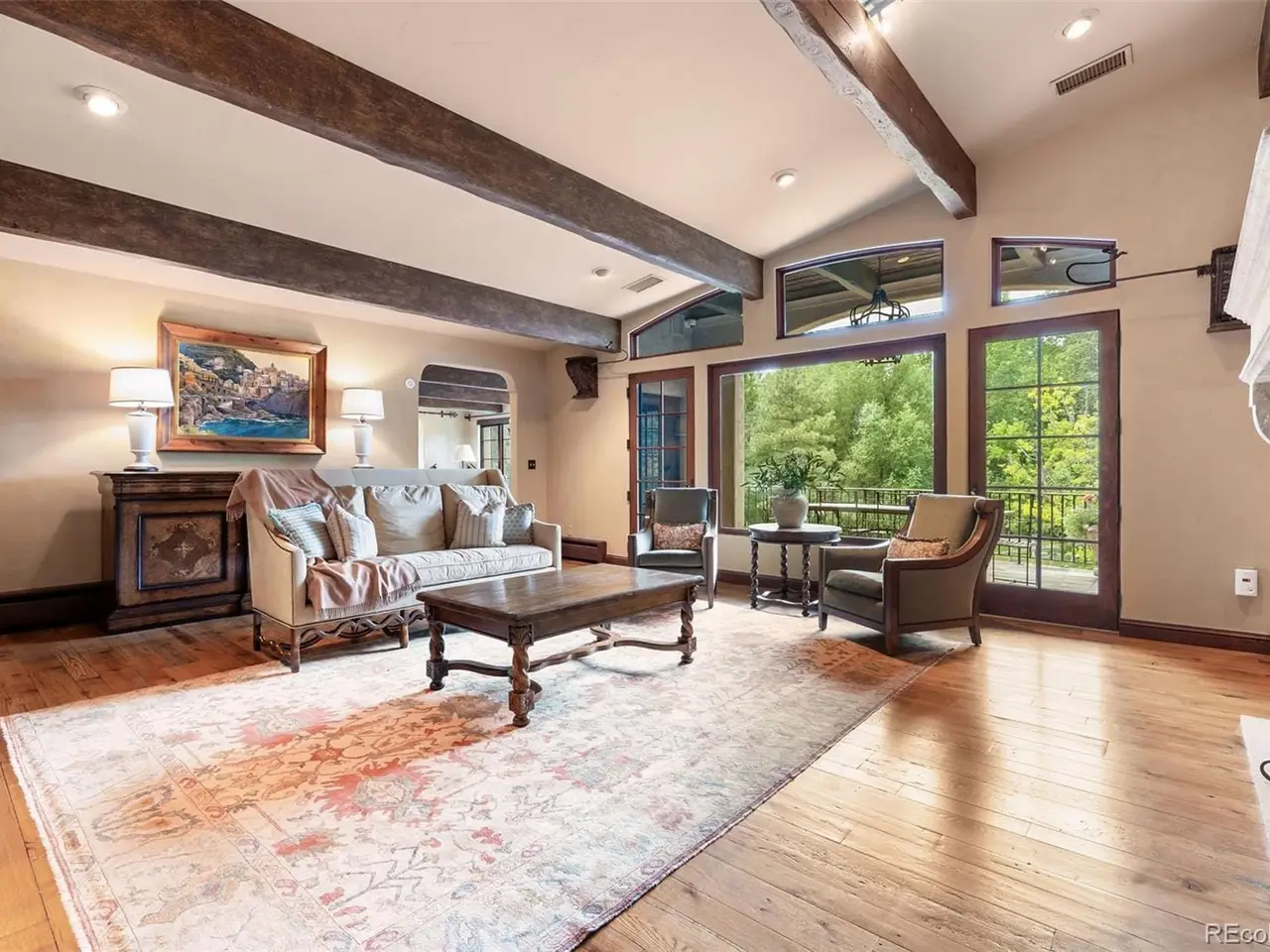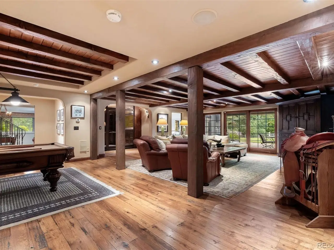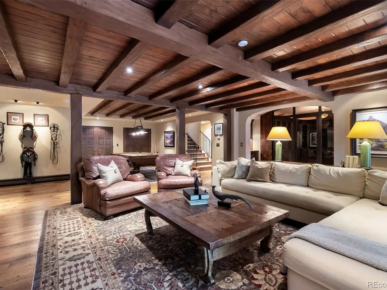 Residing at the end of a private lane and backing to Little Dry Creek, this magnificent property spans nearly 2 acres. Gated circular drive & porte-cochre invite you to this European style residence, incorporating uncompromising architecture, outstanding craftsmanship, customized details + stunning natural surroundings. Remarkable park-like grounds are comprised of multiple patios including an incredible space featuring outdoor fireplace & expansive vine-covered arbor, perfect for al fresco dining. Garages accommodating 4 cars feature epoxy floor coating + snow melt at the car court, courtyard & north walkway. Amazing flex space in the 650sf garage attic + a Martha Stewart potting shed. Enjoy gathering with friends at the bocce ball court, and watching sunsets over the exquisite pond, the epitome of outdoor activity & relaxation. Dramatic entry brings you into the thoughtfully designed dining & living rooms overlooking the impressive backyard with doors leading to the balcony. Well-equipped kitchen features attractive hand-painted tile, an original Scott Yablonski, signed by the artist; and accented by a colorful butlers serving area. Sumptuous primary boasts illuminating sunlight with patio, 6pc bath & walk-in closets + adjacent guest en suite. Vast lower level includes 2 en suites, family/game room, wine room, study, gym, laundry + storage. Richly accented with reclaimed hardwood floor, plastered walls, artistic wrought iron, custom carved European stone fireplaces & exquisite lighting fixtures. Handsome stone staircase leads you to a private suite with 4pc bath, coffee bar & patio elevated above the courtyard. A landmark property - a perfect private sanctuary or wonderful place to entertain on a small or grand scale. High ceilings + expansive doors & windows invite lively interplays of light & color. One of the most revered locations in Old Cherry Hills, this exceptional property offers an unmatched combination of privacy & proximity to so many amenities.