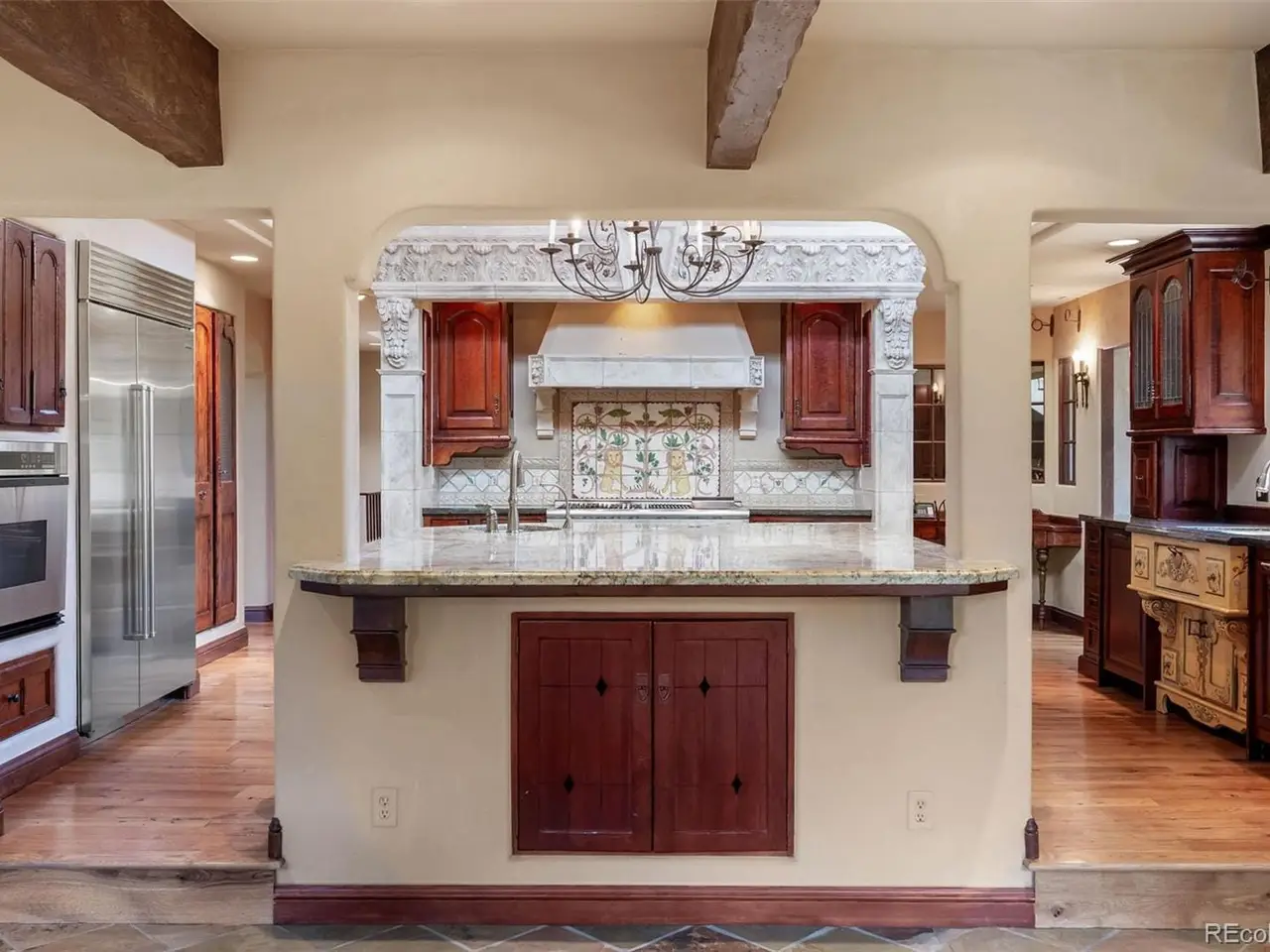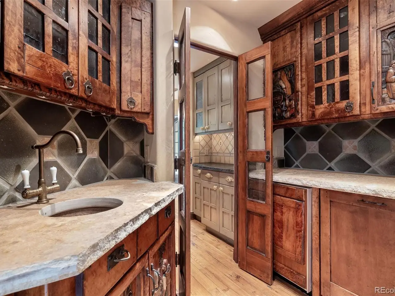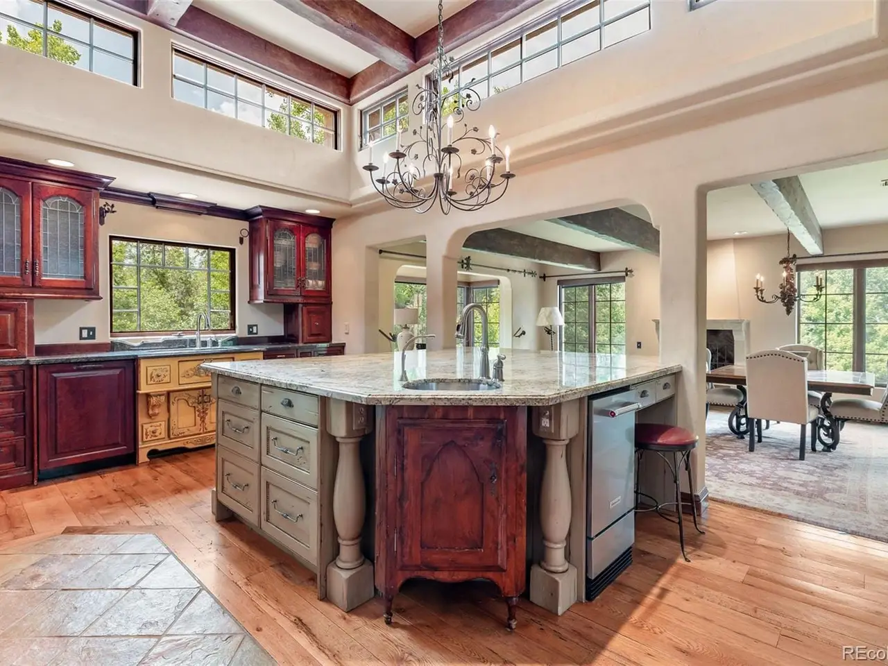 Residing at the end of a private lane and backing to Little Dry Creek, this magnificent property spans nearly 2 acres. Gated circular drive & porte-cochre invite you to this European style residence, incorporating uncompromising architecture, outstanding craftsmanship, customized details + stunning natural surroundings. Remarkable park-like grounds are comprised of multiple patios including an incredible space featuring outdoor fireplace & expansive vine-covered arbor, perfect for al fresco dining. Garages accommodating 4 cars feature epoxy floor coating + snow melt at the car court, courtyard & north walkway. Amazing flex space in the 650sf garage attic + a Martha Stewart potting shed. Enjoy gathering with friends at the bocce ball court, and watching sunsets over the exquisite pond, the epitome of outdoor activity & relaxation. Dramatic entry brings you into the thoughtfully designed dining & living rooms overlooking the impressive backyard with doors leading to the balcony. Well-equipped kitchen features attractive hand-painted tile, an original Scott Yablonski, signed by the artist; and accented by a colorful butlers serving area. Sumptuous primary boasts illuminating sunlight with patio, 6pc bath & walk-in closets + adjacent guest en suite. Vast lower level includes 2 en suites, family/game room, wine room, study, gym, laundry + storage. Richly accented with reclaimed hardwood floor, plastered walls, artistic wrought iron, custom carved European stone fireplaces & exquisite lighting fixtures. Handsome stone staircase leads you to a private suite with 4pc bath, coffee bar & patio elevated above the courtyard. A landmark property - a perfect private sanctuary or wonderful place to entertain on a small or grand scale. High ceilings + expansive doors & windows invite lively interplays of light & color. One of the most revered locations in Old Cherry Hills, this exceptional property offers an unmatched combination of privacy & proximity to so many amenities.