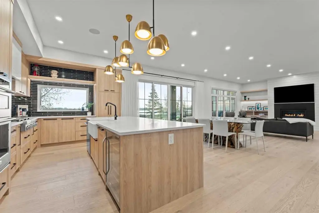 Discover the perfect blend of luxury and lakeside living at 336 West Chestermere Drive. This lakeside gem offers the ultimate retreat with stunning lake views and an array of premium upgrades throughout. Perfectly designed one of a kind home for those who love to entertain or simply savor serene lake living on one of the largest lots on the lake. This home will WOW you from the moment you walk in offering 4200 sqft of luxurious finishing. The main floor plan offers an open concept with 10'0 ceilings that gives you an unobstructed view of the 750 acre lake. Gourmet kitchen equipped with state-of-the-art appliances, custom cabinetry ,10'0 Island and a massive pantry not to forget the pot filling faucet. The mud room comes with built in cabinetry and coat racks leading you to a 4 Car garage with epoxy flooring (23x42) with a mezzanine for additional storage. There is also room to park 4 vehicles in the driveway. Enjoy the views of the golf course while working from the main floor den. Upstairs you will find a total of 4 bedrooms, 2 of which are primary suites with 2 more in the basement. The Grand Primary suite has in floor heating, a free standing tub, steam shower and a heated towel holder. Custom walk in in closets for every bedroom. There is a collection of 4.5 elegantly appointed bathrooms in this home. You will definitely want to take advantage of the upper and lower East Facing wrap around decks with gas hookups for heaters and barbecues. Enjoy listening to music from both the interior and exterior speakers. Laundry is conveniently located upstairs along with a bonus room with access to upper balcony. Downstairs you will find another recreation room with wet bar , 2 more bedrooms and 9 foot ceilings. Enjoy the natural light from all the windows on all 3 levels. and the high end blinds throughout. The walkout basement takes you to the fully landscaped yard with an irrigation system with mature trees and a new hot tub. There is a brand new dock and boat lift with a storage shed with electricity to store your summer toys. This truly is one of the best walkout lots on the lake that is turn-key move in ready and enjoy lake living. There is both a sea doo lift and a boat lift with remote to accommodate larger boats and keep them covered from the elements. This home is still covered under New Home Warranty. Call your Favourite realtor to view this amazing lakefront property as this one will not last!