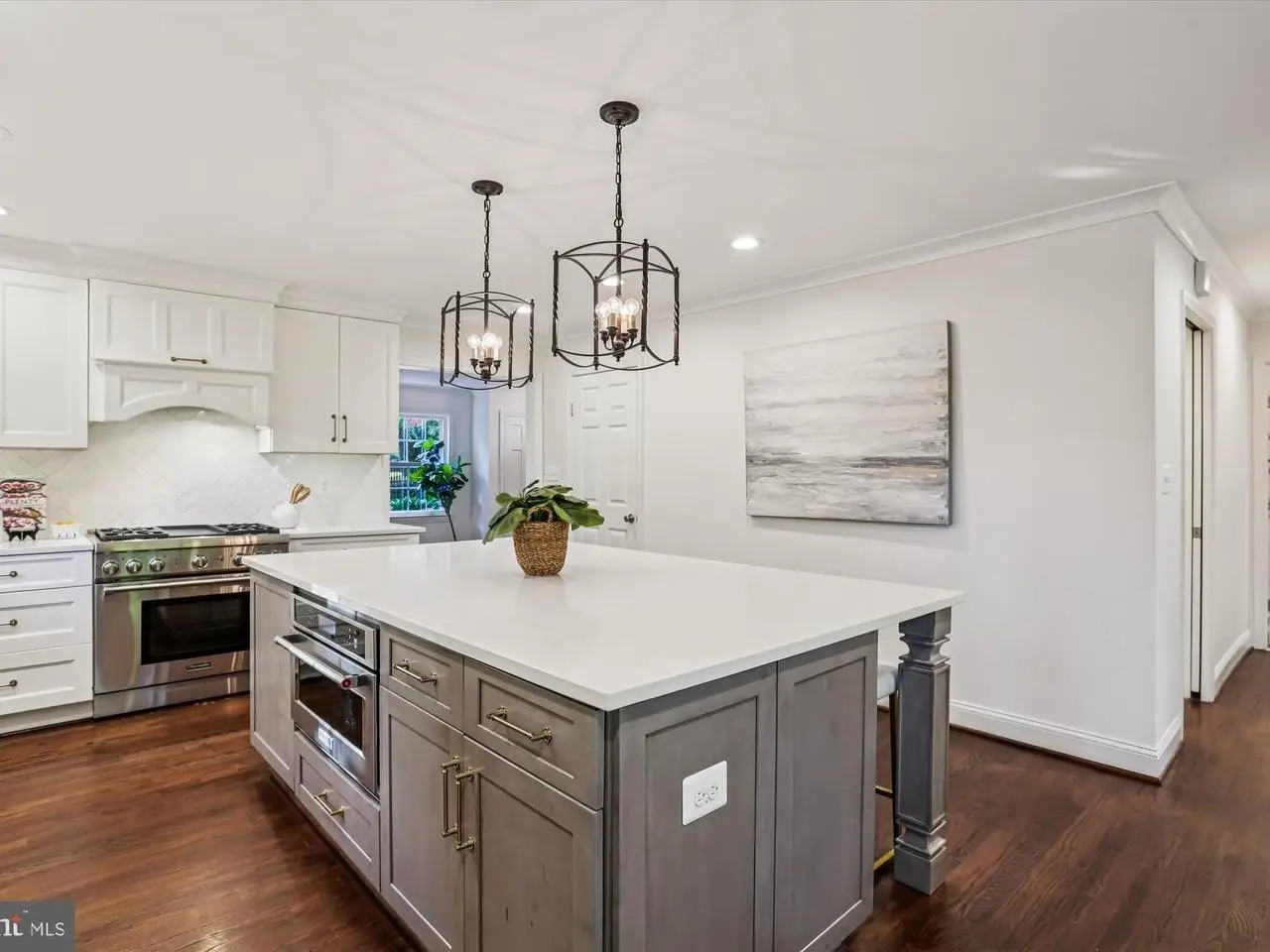 OPEN SUNDAY 1-3pm. Tucked along a picturesque, tree-lined street in one of Chevy Chase's most desirable and walkable neighborhoods, this charming Colonial perfectly blends timeless character with modern comfort. Thoughtfully renovated and expanded in 2019, the home offers five bedrooms and four full baths, including a main-level bedroom suite and a beautifully landscaped, fully fenced rear yard. A welcoming foyer and living room set the tone with abundant natural light from three walls of windows and a classic wood-burning fireplace. The heart of the home is the chef's kitchen, showcasing quartz countertops, custom cabinetry, and premium appliances-KitchenAid French-door refrigerator, gas range with griddle, Bosch Emerald Pro dishwasher, and Azure wine fridge. A large island with ample seating, connects seamlessly to the family room addition which has a custom built-in banquette, while sliding doors open to a deck ideal for outdoor dining and relaxation. Entry from the attached one-car garage leads to a mudroom with cubbies, providing everyday convenience and organization. Privately tucked away, the main-level bedroom suite with beautifully renovated bath is perfect for guests, an office, or multigenerational living. Upstairs, the generously sized primary suite offers a spa-inspired bath, walk-in closet with custom shelving, and views of the backyard. Three additional bedrooms include one with an en-suite bath and two sharing a hall bath. The lower level features a cozy recreation room with fireplace and built-ins, laundry, and generous storage space. Outdoor upgrades include a deck (2019), brick patio and front steps by Capitol Hardscapes (2020), and a new garage door (2024). Moments from Chevy Chase Lake, the Purple Line, Rock Creek Park, and the North Chevy Chase Swim Club, this exceptional home delivers modern updates, classic design, and a beloved neighborhood setting.