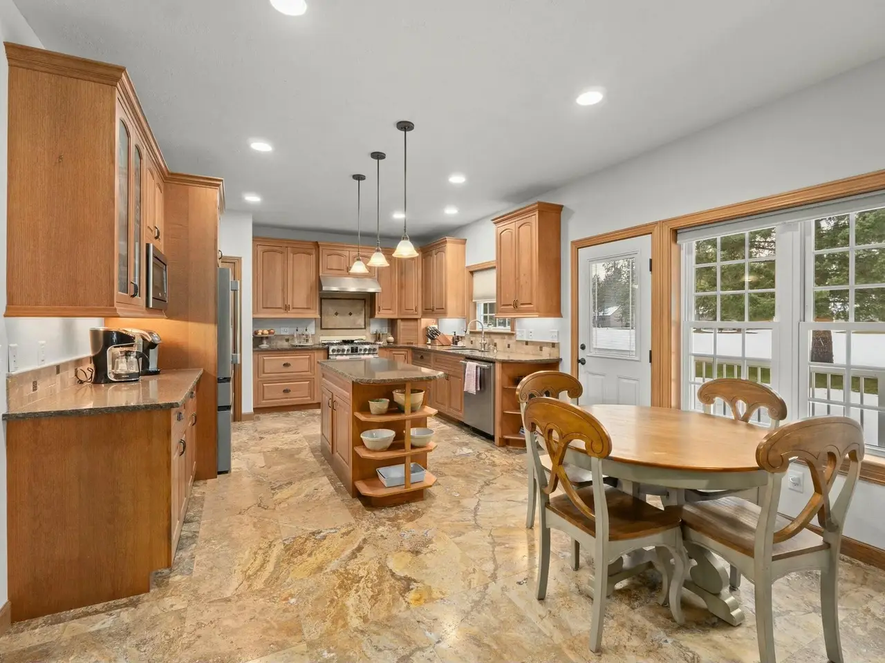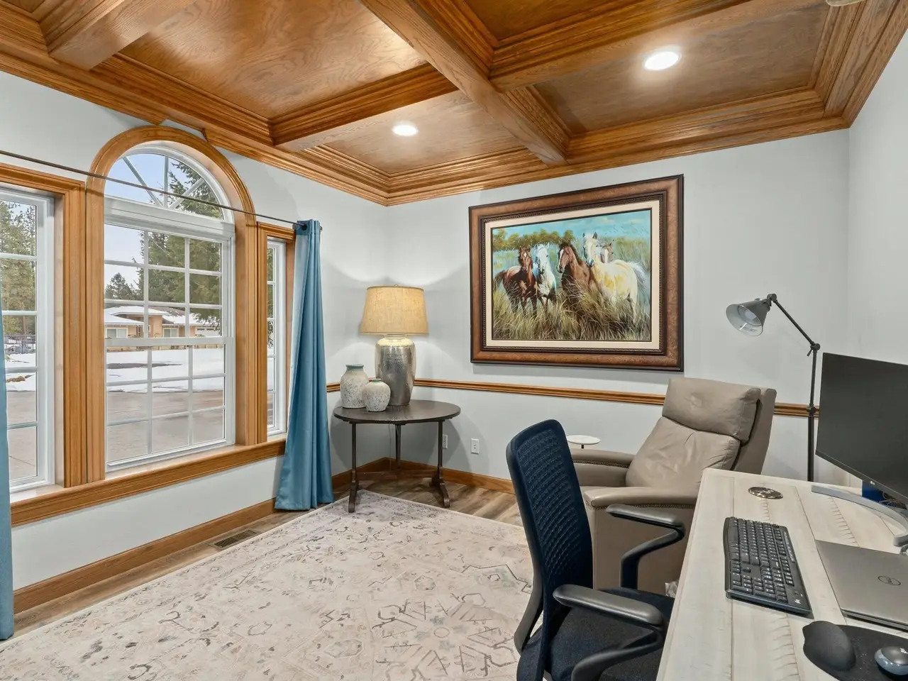 Discover timeless elegance in this exceptional home situated on the fairway of the prestigious 27-hole Chewelah Golf and Country Club. Delight in the chef's dream kitchen featuring solid oak cabinetry, gleaming stainless steel appliances, rich granite countertops, and exquisite Travertine flooring. A sweeping staircase adorned with ornate wrought-iron hand railing adds a touch of grandeur, while recessed lighting and coffered ceilings creates a warm, inviting ambiance throughout. Nestled on a double lot with both an attached garage and a 36x40 detached shop with 12' and 14' doors for insulated RV parking. Enjoy a short commute to 49 Degrees North Ski Resort, downtown Chewelah and Mistequa Casino for entertainment. Your dream home awaits!