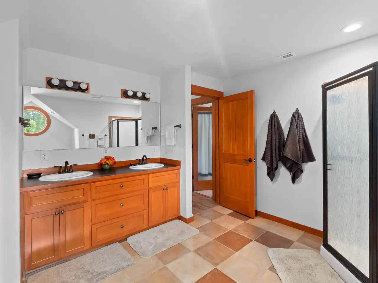 Enjoy golf course living in this gorgeous custom home without the day-to-day buzz of being directly on the course! This 3 bed/2.5 bath premium constructed home sits on an oversized beautifully manicured lot overlooking the #7 and #16th holes. It also features a second detached garage/workshop, a small orchard with a variety of fruit trees, a 100 amp natural gas backup generator, premium exterior of stone or composite shingle, custom two inch slat window blinds, Spanish floor tile directly from Spain, composite wood flooring with rubber backing, custom chandeliers, and much much more! You can also enjoy the surrounding ammenities ranging from the 27 hole golf course, pickleball/tennis courts, 410 acres of trails, airport, 49 Degrees North ski hill, and Mistequa casino to name a few!!