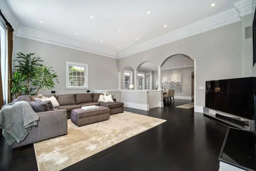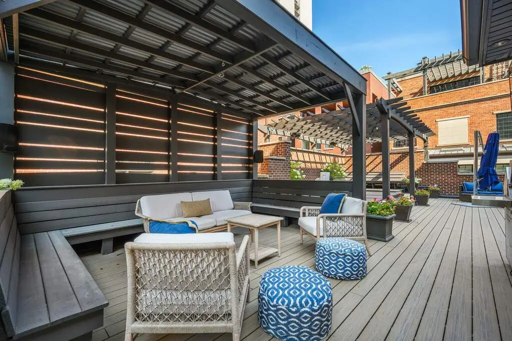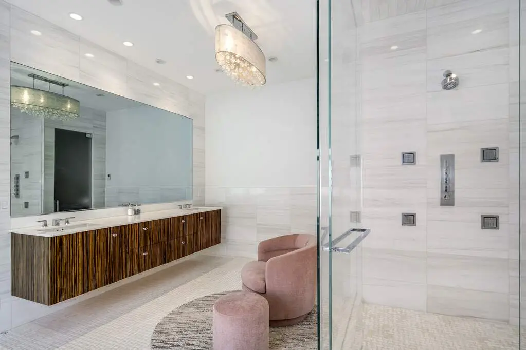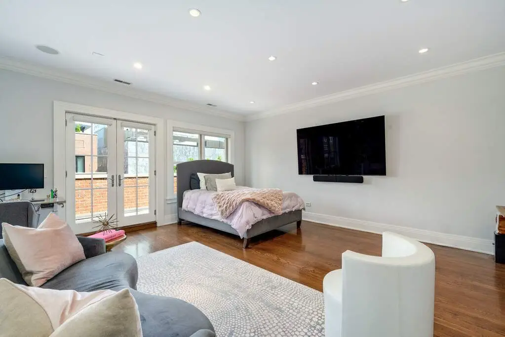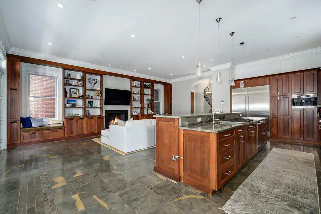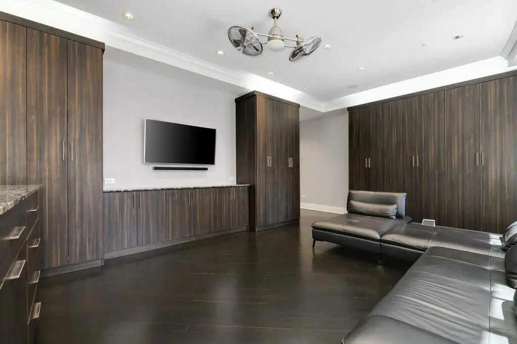 Spanning 68' in coveted Kingsbury Estates, this home is truly one of a kind! Offering over 10,300 square feet, plus an additional 4200 square feet of the absolute best outdoor space, this home offers a suburban lifestyle right in the heart of the city. The entry is a great spot to host parties or events in the lounge & wine room. This entertaining space connects to a secondary living space featuring a professional home gym with a resistance pool. There is also a bedroom, kitchenette/family room, and an entire lower level. Back in the main part of the home, you will love the paneled library, full bath, powder room, and the most gracious foyer which takes you to the second floor, allowing for amazing light and privacy. The extra-large chef's kitchen/great room features a 60" Wolf range plus cooktop, three Wolf ovens, double Miele dishwashers, built-in espresso machine, plus a steam oven. This is all open to fantastic space for informal gathering plus a super sunny breakfast nook, both of which open onto one of the massive terraces. This terrace features multiple spaces for sitting and dining, a large resistance swimming pool, and an outdoor fireplace. The third level of the home is devoted to the primary suite, allowing for a spacious bedroom with a terrace, sensational closet space, dual luxurious baths, and a coffee bar. There is an additional sitting room that could double as an office or perfect nursery space. Bedroom level laundry can also be found, conveniently located off the primary bath. The top level of the home has 2 more ensuite bedrooms, plus an additional lounge or bedroom with a kitchenette and terrace as well as an additional laundry area. An interior staircase leads to the enormous rooftop terrace with a second outdoor fireplace, multiple levels for entertainment, and the best city views. Allowing for even more entertaining space, the lower level has a true theater room. An additional bedroom, bath, sitting/playroom complete the lower level. An elevator to all levels makes for easy living! Perfect for car enthusiasts, this home has an attached garage with parking for six cars! Located within a gated community with parks, fabulous dining, and the riverwalk steps from your front door, this home is true gem and a rare find in the city!