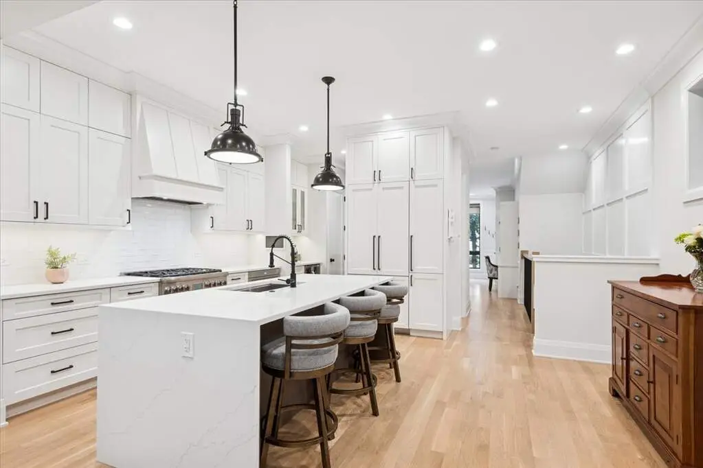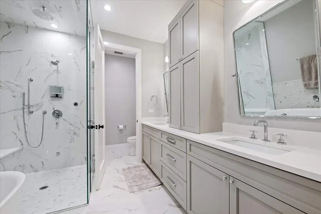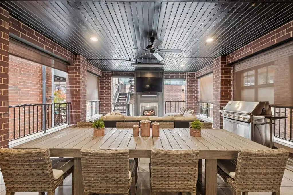 On a quiet, tree-lined street in Lincoln Park, a home awaits that feels both timeless and brand new. Built in 2022 on an extra-long lot, this 2,800-square-foot duplex down lives like a single-family home-designed for connection, comfort, and the rhythms of everyday life. With 4 bedrooms and 3.5 baths across two spacious levels, it's more than just beautiful; it's better than new construction, move-in ready with every thoughtful upgrade already done for you. The first floor unfolds as a story of light and gathering. A gourmet kitchen, dressed in custom white cabinetry, quartz countertops, and a classic subway tile backsplash, sets the stage for meals that turn into memories. A professional Thermador suite, oversized waterfall island, and butler's pantry with beverage fridge make every moment effortless, while a walk-in pantry keeps life neatly tucked away. The kitchen flows into dining and family rooms where custom blinds frame sunlit windows, and a built-in desk with dual bookcases adds charm and function. From here, the home extends outdoors to a covered patio designed as a true three-season retreat. Built-in heaters and a ceiling fan stretch its use through spring, summer, and fall. Custom exterior blinds filter light and privacy, while a flat-screen TV and gas-powered fireplace transform the space into an outdoor living room. There's room for dining, lounging, and lingering-and an additional grade-level patio only adds to the possibilities. Downstairs, the lower level becomes a place of rest. All four bedrooms are thoughtfully tucked away, creating quiet sanctuaries. The primary suite is its own retreat, with two large walk-in closets and a spa-like bath where quartz finishes, dual vanities, a freestanding soaking tub, a steam shower with multiple heads, and a private water closet turn daily routine into ritual. Three additional bedrooms and beautifully appointed baths offer comfort and flexibility for family, guests, or a home office. With garage parking included and every detail already complete, this home is as practical as it is elegant. And beyond its walls, the best of the city is just steps away-parks, shops, cafes, DePaul, and the train that carries you anywhere your day leads. Here, in the heart of Lincoln Park, you'll find more than a home. You'll find a story waiting to unfold-one of ease, connection, and a life beautifully lived.