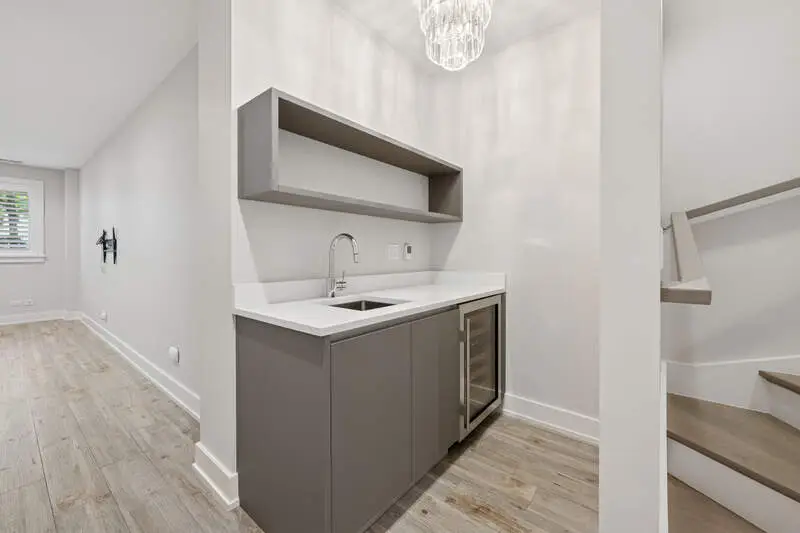 Graciously sized with sleek, modern appointments, this pristine condo is ideally located in the heart of Chicago's vibrant West Loop neighborhood. With 3000 SQFT, 4 bedrooms, 3 baths, 2 large family rooms, and 2 outdoor spaces, this duplex down lives more like a single-family home. Highlights include soaring 12 ft coffered ceilings, 5" wide plank oak floors, and heating flooring throughout the residence. The living /dining room features a gas fireplace, floor to ceiling windows, French doors leading to a large balcony, and a separate dining area with chandelier. An open kitchen outfitted with custom Italian cabinetry by Copat, veined quartz countertops, Bosch, Sub-Zero, and Wolf appliances, and a center island with breakfast bar. Serene and spacious, the primary suite has plantation shuttered windows with two exposures, a custom walk-in closet, and a luxurious ensuite bath with an oversized steam shower, heated flooring, and dual vanities. The second bedroom has a walk-in closet and an ensuite bath with a second entrance off the hallway. An exclusive private deck with an outdoor kitchen is conveniently covered for comfortable use throughout the year. A walk-in laundry room with pantry space provides additional storage on the main level of this home. Downstairs, the lower level remains above grade and enjoys ample natural light through windows outfitted with plantation shutters. This level features a large recreation room, a fully equipped wet bar, two bedrooms with copious closet space, and a full bath. One oversized parking space with electrical charger is included in the price. This unique, 8-unit elevator building is located just steps from parks, playgrounds, shopping, world-class restaurants, and nightlife the West Loop has to offer along with easy access to public transportation and the expressway.