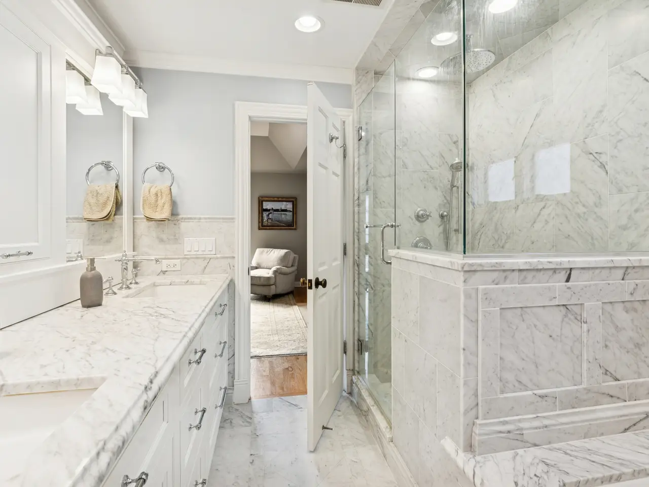 Spa-like primary bath with marble