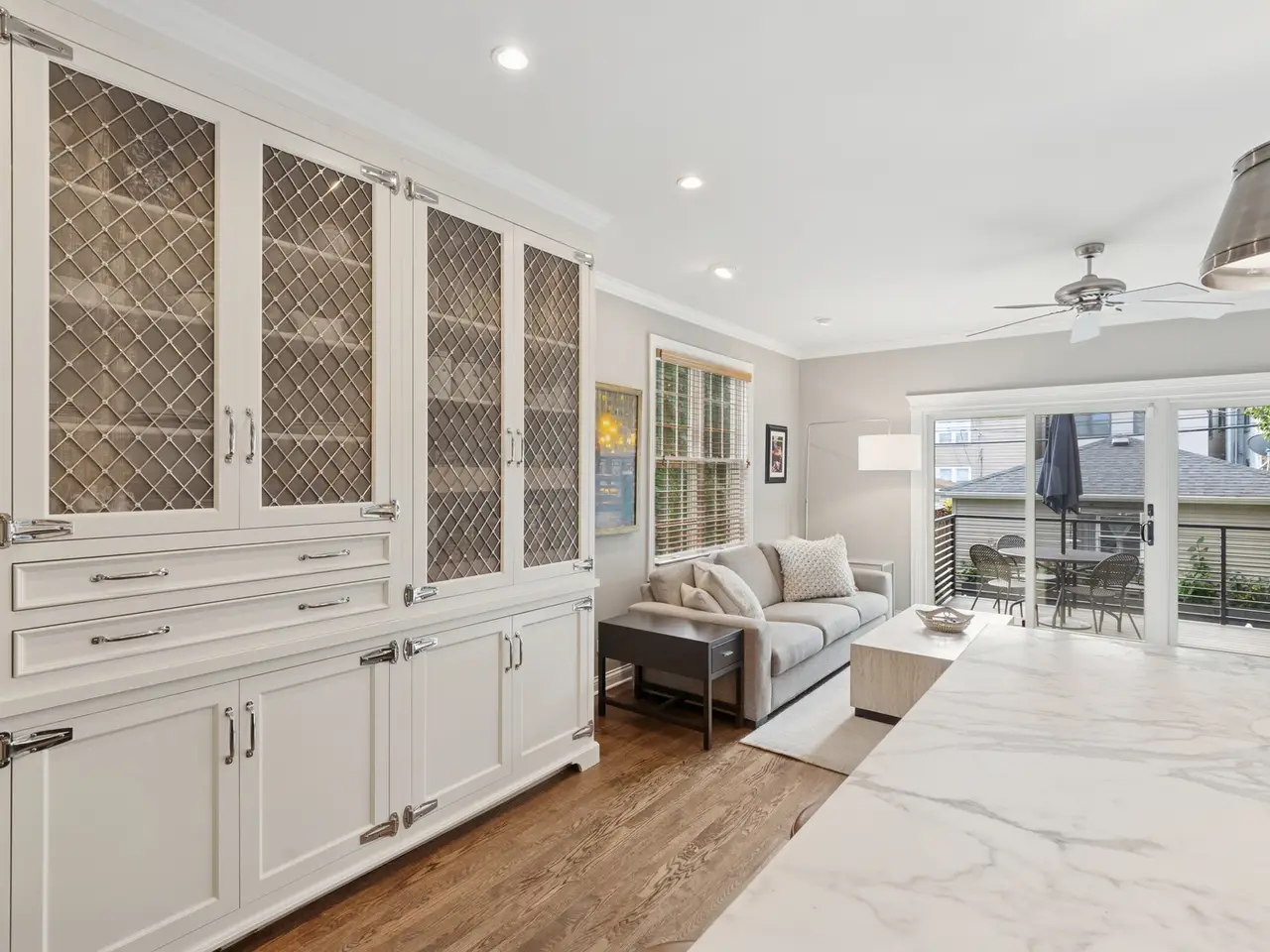 Finally, after 25 years with its original owners, numerous upgrades and renovations, this North Center/Lincoln Square Gem is on the market! Lovingly maintained with meticulous TLC, this beautiful, 4 bedroom, 3.5 bath, single family home sits on a one way, quiet, tree-lined street just steps from the Riverbank Neighbors Park walking path, Horner and Wells parks, and within the coveted Waters Elementary School District. Stylish and comfortable, and graced with hardwood floors throughout, the rooms of this home blend seamlessly for everyday living or high-end entertaining. The formal living room, punctuated by one of three wood burning/gas fireplaces in the home, and surrounded by windows featuring beautiful Carolina Shutters, leads to the formal dining room defined by beautiful inlaid hardwood floor detail, perfect for dinner parties. A large pantry and tastefully decorated powder room comes next, before you enter the heart and soul of the home: a stunning, completely renovated chef's kitchen, designed by acclaimed designer, Rebekah Zaveloff's ""Kitchen Lab"". A gorgeous Calcutta Marble island, large enough for five to gather comfortably, is surrounded by quartzite countertops, inset European cabinetry, undermount lighting, Sub Zero Fridge, four burner Wolf stove with double griddle, Bosch dishwasher and microwave drawer, and a striking stainless steel hood. The large, furniture-style, built-in cabinet/pantry completes this masterpiece! The adjacent great room is both spacious and cozy, complete with another wood burning/gas fireplace and flooded with light from the floor to ceiling windows and sliding glass door that leads to the outdoor deck outfitted with stained wood screening for privacy, a state-of-the-art, built-in grill with surrounding cabinets and stone countertop, and a built-in overhead radiant heat lamp-another of the many renovations only a few years old. Take a few steps down and you'll find a true outdoor oasis: the Shangri-la-feeling patio is grounded in blue-gray limestone surrounded by a row of towering Aspen trees, meticulous landscaping, a built-in gas fire table and another built-in radiant heat lamp perfect for cozying up to the fire during chilly Chicago nights. A wide staircase leads to a huge lower level family room, with brand new carpeting throughout, a full bathroom and the spacious fourth bedroom with large closet. Also on this level , you'll find another beautifully renovated laundry room with front loading W/D, a marble folding table, inlaid cabinetry, and huge storage closets. Across the hall, behind an ornate glass door is the custom built wine cellar, with enough space for hundreds of your favorite vintages. The upper level features two more bright spacious bedrooms and full bath, and a generous primary suite, flooded with light from the new sliding glass doors, and a coffered ceiling adds to the spacious feel. The showstopper is the completely renovated spa like primary bath, surrounded in beautiful marble, featuring a large soaking tub, huge shower,with rain spout and radiant heated floors. The entire home is appointed with hardwood floors, custom window treatments and high end lighting. A one of a kind gem in a wonderful neighborhood! Seller is a Licensed Real Estate Broker.