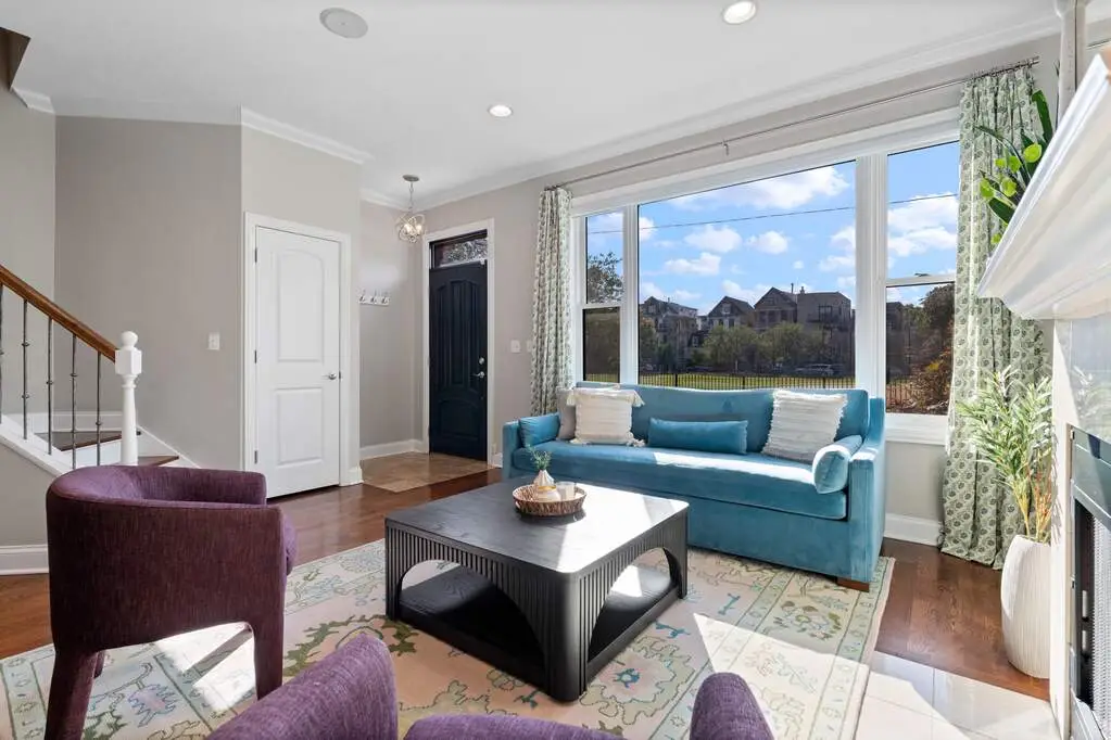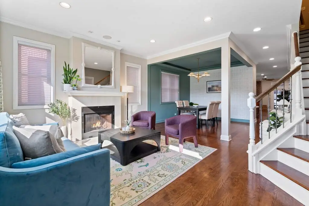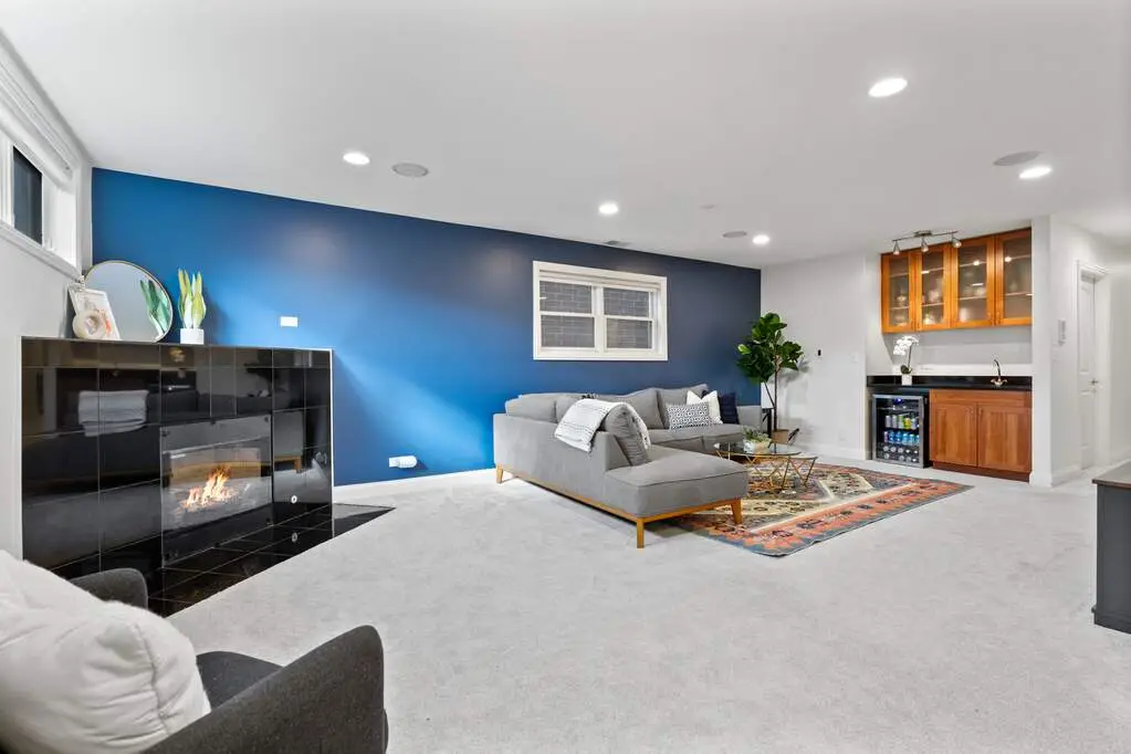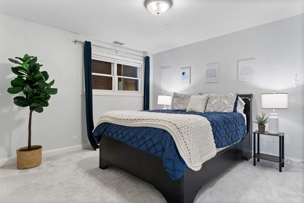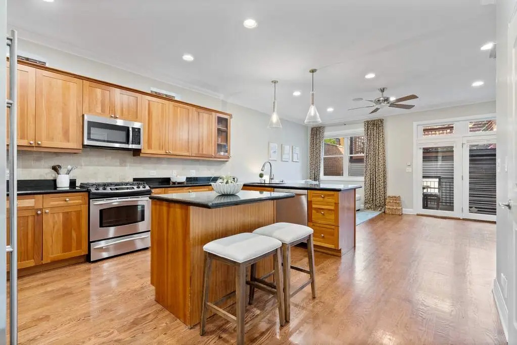 Perfectly positioned in the heart of Bucktown, directly across from Holstein Park, this stunning 4-bedroom, 3.1-bath full masonry home offers the ideal blend of elegance, comfort, and city convenience. Step inside to a sun-drenched living room highlighted by a charming picture window overlooking the park and a cozy wood-burning fireplace, seamlessly flowing into a sophisticated dining area. The chef's kitchen is designed for both everyday living and entertaining, featuring abundant cabinetry, a full pantry, expansive counter space, an eat-in breakfast bar, and a central island that opens into the spacious family room. Sliding glass doors extend the living space outdoors to a large Trex deck-ideal for grilling and al fresco dining-with stairs leading up to a beautifully appointed garage roof deck with pergola. Upstairs, discover three bright bedrooms, including a luxurious primary suite with generous closets and a spa-inspired bath boasting a soaking tub, oversized shower, dual vanities, ample storage, and natural light from a skylight. The two additional bedrooms share a thoughtfully designed bathroom with double sinks and a separate shower/toilet area. The lower level offers exceptional versatility with a sprawling recreation room, gas fireplace, built-in bar with wine fridge, storage closets galore, and space for relaxing or entertaining. A fourth bedroom with a full bath makes an ideal guest suite or home office. Additional highlights include a large laundry room, grand mud area, irrigated front lawn and a two-car garage. Enjoy the vibrant Bucktown lifestyle just outside your door, with Holstein Park's pool, playground, and green spaces serving as an extension of your backyard, plus easy access to the Blue Line for seamless commuting.