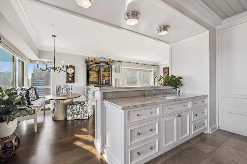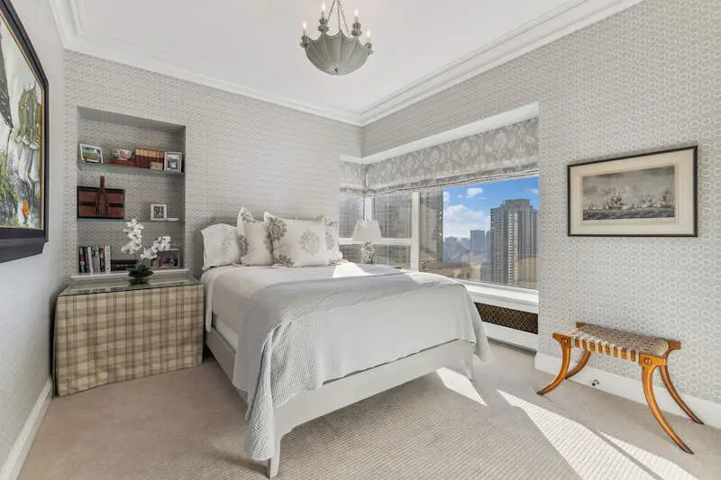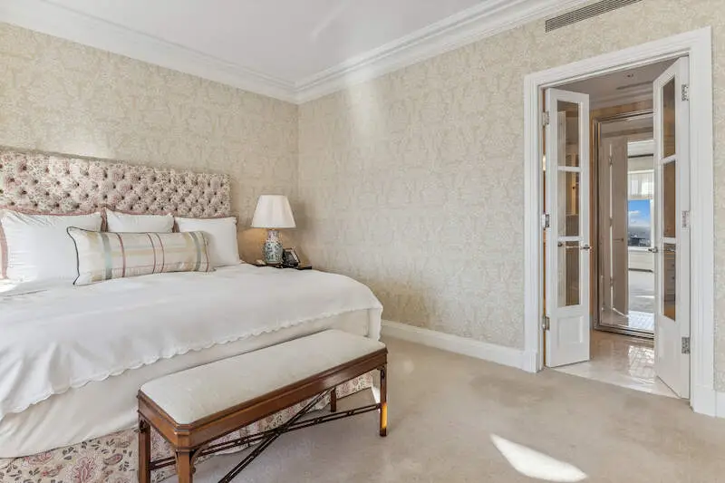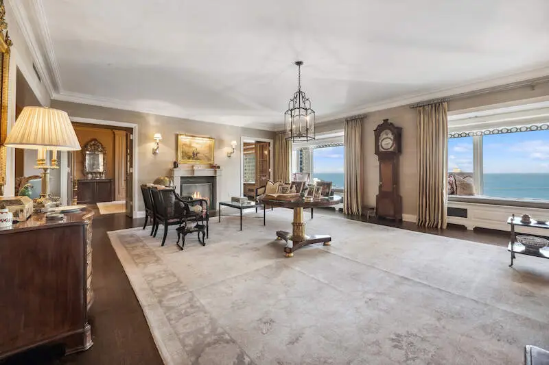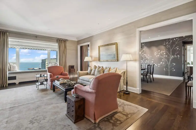 This extraordinary, elegant residence at Park Tower stands as a testament to sophistication and grandeur. Custom designed by Robert Klingel, elegance surrounds you in this expansive 5,250 square foot, 4 bedroom plus paneled library / office. This home has been meticulously crafted using only the finest materials and design. A grand foyer welcomes you into the home, setting the tone for the grandeur that lies beyond. A spectacular 30 x 20' living room is anchored by a fireplace and oversized windows that artfully frame the east-facing views of the lake and city. Two pairs of French doors with beveled glass leads you to the rich wood-paneled office, showcasing the craftsmanship that went into creating this sanctuary. The custom cabinets seamlessly integrate into the paneling, providing both functionality and aesthetic appeal. Each cabinet is a work of art, featuring handcrafted details and ornate handles that add a touch of luxury to the room. These cabinets are not only storage solutions but also contribute to the overall design, adding depth and dimension to the space. As you explore the office, you'll discover hidden gems - a discreetly concealed television and hidden storage. A graceful transition to the formal dining room dressed in embroidered silk wallcoverings by Holly Hunt that creates a backdrop of sophistication that sets the stage for memorable gatherings. The piece de resistance of this dining sanctuary is undoubtedly the crystal chandelier that hangs majestically from above, casting a soft, ambient glow that dances off the wallpaper, creating an atmosphere of intimacy and grace. The dining room flows into the eat-in kitchen offering south and east-facing views. Anchored by an oversized center island, the kitchen features quartzite countertops that complement the custom cabinetry with polished nickel detailing and a center chandelier. The extensive suite of appliances by Wolf and Sub Zero and a discrete butler's pantry that offers additional ovens, wine storage and prep space. The oversized balcony is just off the kitchen providing the perfect amount of space to relax and enjoy the city and lake views. An extension of the kitchen is a cozy breakfast nook that is nestled in the SE corner and flows seamlessly into the comforting embrace of the family room that exudes an atmosphere of casual elegance. The bedroom wing offers 4 bedrooms including a primary suite that is a study in grandeur. Featuring a 29x14 bedroom wrapped in windows to the west, an incredible organized closet, and a spacious ensuite bath with radiant heated floors. Elegantly appointed in marble with polished nickel fixtures throughout, the primary bathroom features two separate custom carved vanities, Rohl plumbing fixtures and a luxurious shower. Three additional bedrooms, South facing bedroom two is wrapped in elegant wallcoverings and is ensuite, while bedrooms three and four enjoy western views and sunsets. Completing the residence are a beautifully appointed powder room, a discreet utility room with side-by-side washer and vented dryer, and a separate service entrance for the ultimate in privacy. No detail has been overlooked, from the custom interior lighting, the luxurious drapery fabrics, the textured wall coverings to the motorized shades throughout and a Control 4 system that automates the home. This five-star dwelling surpasses all expectations. The NoMi Club, offering a state-of-the-art fitness center and an indoor pool, coupled with premium hotel services, elevates the resident experience to unprecedented levels. Two garage spaces and a capacious storage unit are included. Seize the ultimate lifestyle opportunity in this prime location, where every element of luxury living has been meticulously curated. This residence at Park Tower is more than a home; it's a symphony of indulgence in the heart of the city. 2023 Taxes: $68,350.03 (a $13K decrease from 2022).