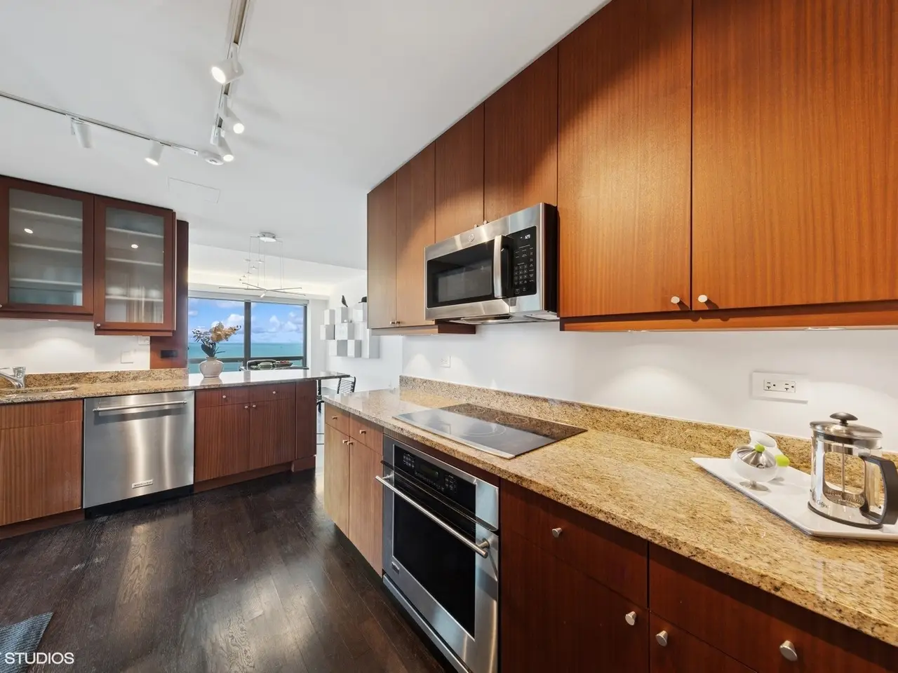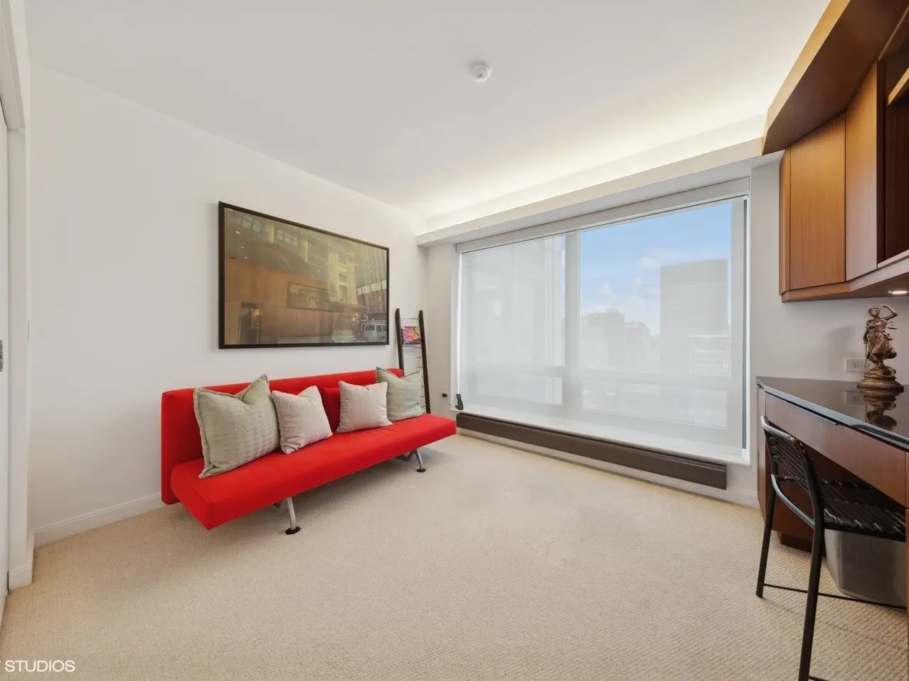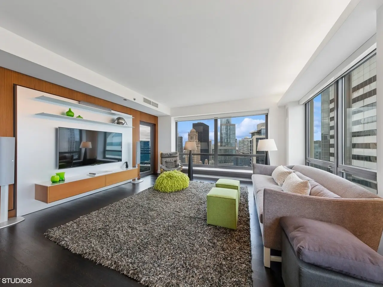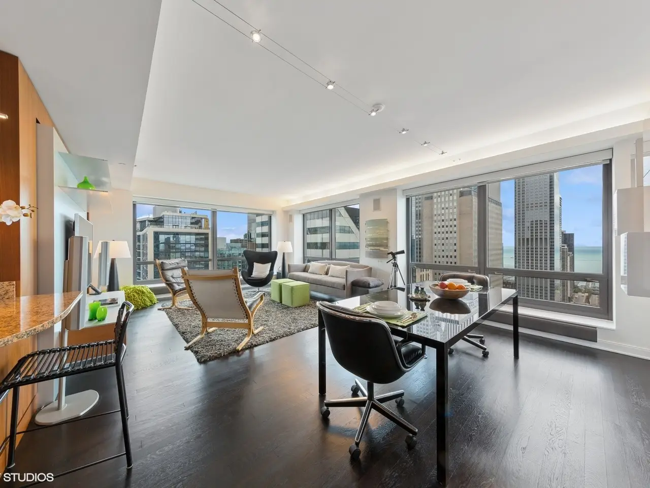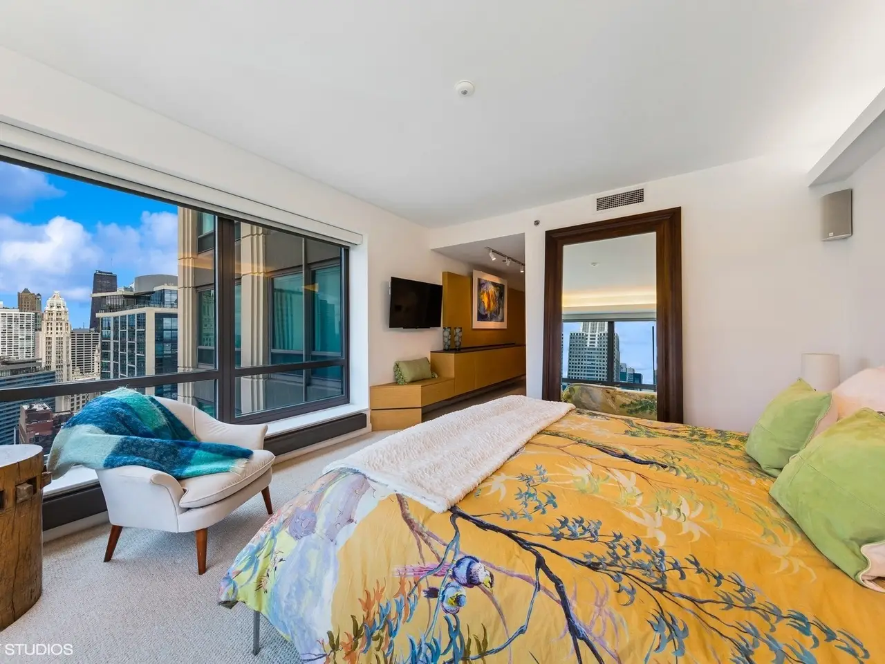 Discover urban elegance in this highly upgraded 3BR/3BA residence on the 41st floor of the Heritage, perfectly positioned on Chicago's Cultural Mile for downsizers and second home buyers seeking proximity to theater, Millennium Park, Lake Michigan, and the Museum Campus. Breathtaking North/East/West corner views of the city skyline, lake, and park unfold through floor-to-ceiling windows, amplifying the 2157 sq ft layout. Custom motorized shades, cove lighting, and bespoke cabinetry elevate the sophisticated interiors. The open kitchen, dining, and living areas feature upgraded hardwood flooring, abundant counter space, a breakfast bar, and access to a spacious recessed balcony-ideal for relaxing or entertaining. The primary suite boasts a Jacuzzi bath, separate shower, walk-in closet, and custom Abitare cabinetry. A dedicated laundry room (not a closet), guest suite, and third bedroom/home office with tailored desk and shelving add practicality and charm. Enjoy Crestron-controlled Lutron lighting and Boston Acoustics surround sound for effortless ambiance. Building amenities include an indoor pool, hot tub, saunas, fitness center, community rooms & co-working space, dog run, 24/7 door staff, and direct pedway access to rail transit for seamless O'Hare connections. Steps from world-class theater, Symphony Center, Art Institute, Museum Campus, and lakefront trails, this home offers vibrant city living with the serenity of a well-appointed retreat. Stroll to Millennium Park's Lurie Gardens, sail from Monroe Harbor, or dine along the Magnificent Mile-all just outside your door.