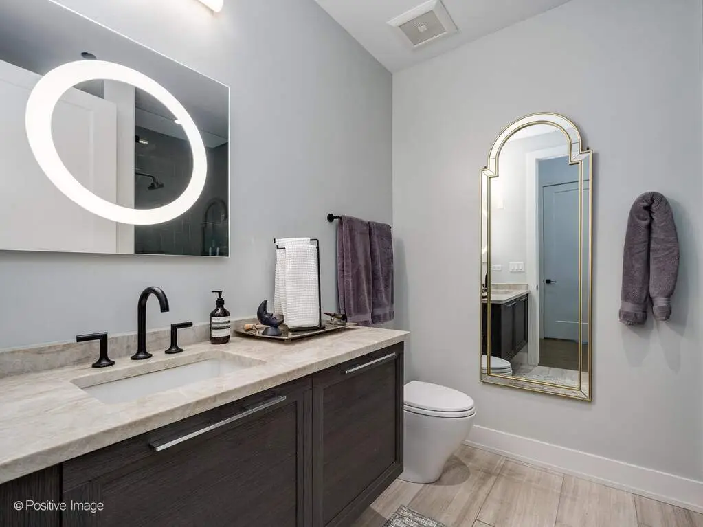 Experience elevated loft living at The Ronsley, one of River North's most sought-after luxury residences. This exceptional 3-bedroom, 3-bathroom home offers a perfect blend of industrial and modern feel, featuring soaring 15-foot timber ceilings, exposed brick, floor-to-ceiling windows, hardwood floors, custom lighting and automatic shades throughout. The open concept living and dining area is filled with natural light and anchored by a custom media wall, seamlessly flowing to a spacious private terrace. The chef's kitchen is outfitted with top-of-the-line Wolf appliances, a large island with polished quartz countertops, custom cabinetry, beverage refrigerator, pantry, and a custom designed built-in breakfast nook. A desirable split-bedroom floor plan offers convenience with each bedroom featuring a full en-suite bath. The luxurious primary suite includes oversized windows with blackout shades, a walk-in closet, and a spa-inspired bath with a steam shower, soaking tub, dual vanities, and updated mirrors. The generously sized second and third bedrooms each offer ample closet space and beautifully appointed en-suite baths. Additional features include a spacious laundry room with side-by-side washer/dryer, utility sink, and extensive cabinetry. The Ronsley is a full amenity building offering 24-hour door staff, fitness center, yoga room, resident lounge, an expansive landscaped courtyard with grilling stations, fire pit, and lounge seating and a private dog run. Ideally located near Montgomery Ward Park, the Chicago Riverwalk, Larrabee dog park, Health/Wellness Clubs such as East Bank Club and Bian, Target, groceries, top dining, nightlife, shopping, public transit and highway access. Price includes a premium deeded garage parking space with a lift accommodating two vehicles.