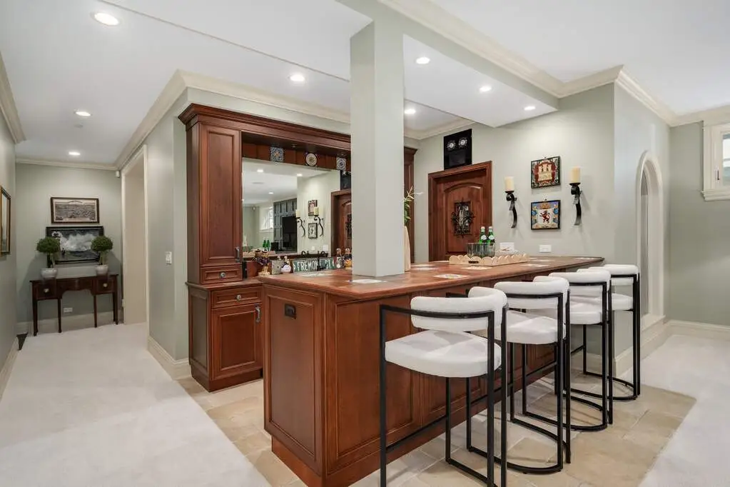 Exceptional, completely custom home on a 48' wide lot! Offering the most spectacular outdoor space with a green, grassy backyard and up to the minute finishes. The expansive main living level offers elegant spaces to host and gather, both formally and informally, with wide and gracious room sizes and great ceiling height. A classic foyer greets you upon entering with amazing natural light through a top-level skylight that pours sunlight through the graceful staircase. Wonderful room sizes with front living and dining rooms that offer huge windows overlooking Wolfram Street. A handsome custom library features a built-in desk and looks over the yard. The newly remodeled kitchen is exceptional with two large Sub-Zero refrigerators and a professional range plus dine in table space and a large island with bar seating. A stylish butler's pantry provides for intimate wine storage, plus there is an additional walk-in pantry. Completely open and adjacent to the kitchen is an awesome great room with a limestone fireplace and beautiful built-ins flanking each side. A wall of windows brings in the most amazing southwest light, making for a bright and happy place to live. This entire space walks out onto a deck with a fireplace and pergola, and into the lush backyard. A rare five bedrooms plus an office on the upper levels of the home! Four gracious bedrooms are found on the second level. The primary suite is a true retreat and will feel like you have stepped into the most luxurious hotel suite. Large enough for a large seating area with a fireplace, plus dual walk-in closets, and a newly renovated spa like marble bath. Two of the secondary bedrooms share a nicely appointed Jack and Jill bath, while the other is ensuite. The top level offers a sophisticated entertaining room or office with a beautiful wet bar, and access to a south-facing rooftop. An additional bedroom suite completes this floor. Two additional bedrooms can be found in the lower level of the home; one currently used as a great exercise room. A large recreational space with a kitchenette/wet bar and a spectacular wine cellar plus a giant separate playroom all wonderfully designed. The large mudroom leads to an attached garage for added convenience and also has easy access directly to the kitchen. Conveniently located in the perfect Lincoln Park/Lakeview locale, as well as an easy walk to Southport Corridor!