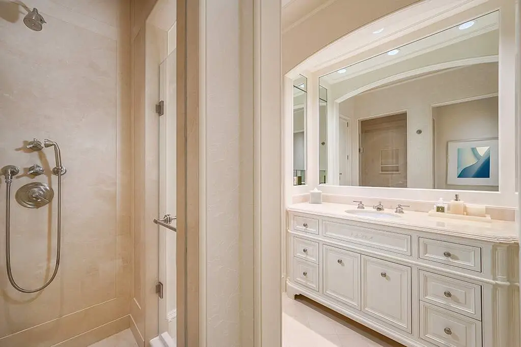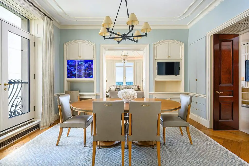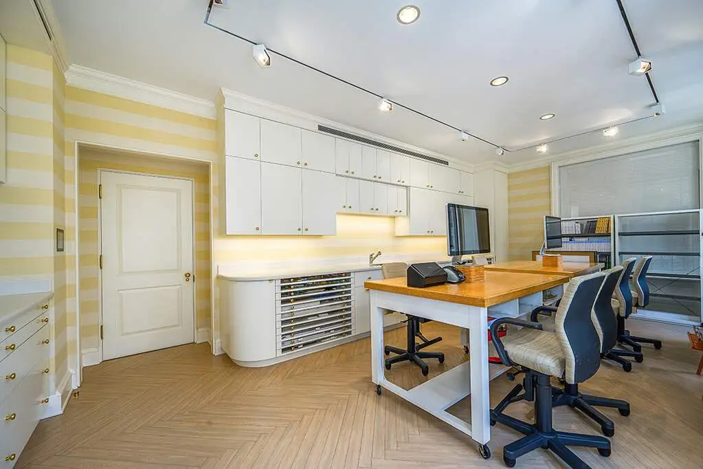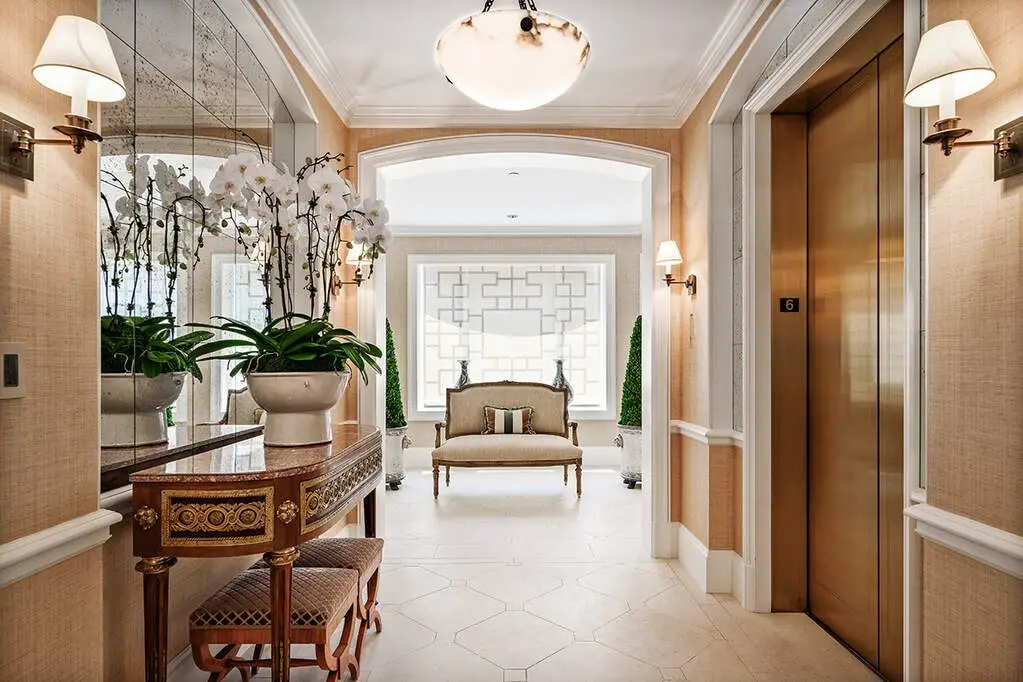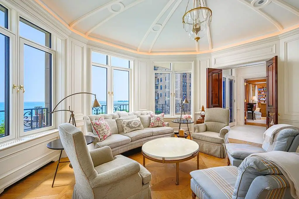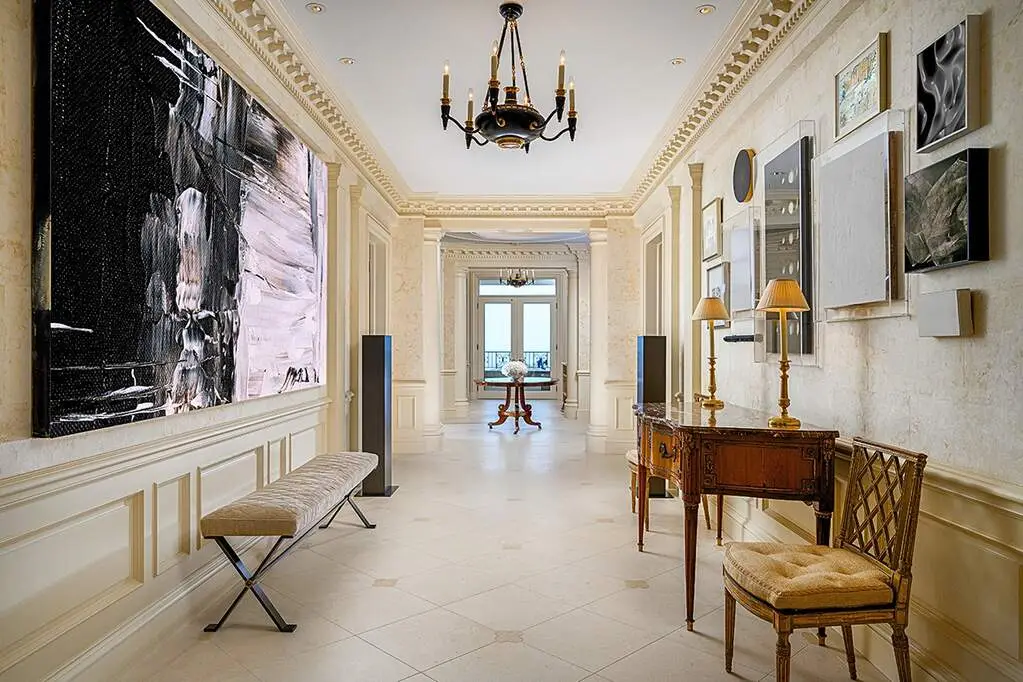 This is an exceptional opportunity for a completely custom home in one of the most desirable Gold Coast buildings. Spanning nearly 12,000 square feet across two levels with three beautiful exposures, this estate-like property is the perfect city home. Enjoy boutique style living in a building with first class service. Designed by the late David Easton in collaboration with Eric J. Smith, this home was built to easily host large gatherings while still enjoying the comforts of day-to-day living. The gracious limestone foyer is a most beautiful receiving area, with gorgeous and intricately designed moldings and lighting all which leads to an amazingly sunny gallery and rotunda. The professional grade kitchen features the highest quality appliances, ample prep space, plus a separate butler pantry and catering space. Flanking either side of the kitchen are a breakfast room to the east for everyday dining, and an oversized dining room to the west for hosting more formal gatherings. The breakfast room features a custom, dual sided aquarium for living art and opens into the family room with rounded windows overlooking Lake Michigan. The formal living and library spaces are clad in Nordic pine and face east for spectacular lake views. Two exceptional bedroom suites, a well outfitted mudroom/family entrance, an art studio/project room, and an extra-large laundry room complete the east side of the home. A private fitness center, a media room, multiple wet bars/kitchenettes, and an extensive wine cellar all add to the main level of the home. Each room has details that one only finds in the most custom and detailed of properties. A classic staircase leads to the second level of the home, which is dedicated solely to bedroom suites, allowing for the utmost in privacy. The expansive primary suite offers a generously sized east-facing bedroom with privacy sound glass, dual baths and dressing rooms, as well as a separate study or sitting room. Three additional bedroom suites all offer wonderful closet space and nicely appointed incredibly detailed ensuite bathrooms. Enjoy six private terraces, state-of-the-art audio visual, and sensational storage throughout in addition to seven premium garage parking spaces and three storage spaces. This is truly a one-of-a-kind home with too many details to list! 65 E Goethe features 24-hour door-staff and a beautifully designed rooftop terrace with spectacular city views.