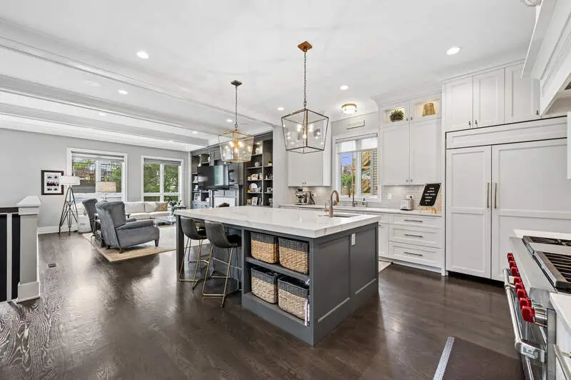 Gorgeous extra wide newer construction home in Linocoln Square on an oversized lot! Impeccable finishes and floor plan with 7 bedrooms and 4 full & 2 half baths on a tree lined one way street. The extra width of the lot allows for an amazing custom chef's kitchen, professional commercial grade SS appliances, including 2 dishwashers, huge oversized island, quartz counters & built in banquette. Adjacent open family room with WB fireplace & custom built-ins provides a perfect entertaining space. Upstairs offers 4 beds/3 full baths & a true laundry room. Luxurious master suite w/cathedral ceilings, marble bath, his/hers walk in closets. Lower level w/radiant heat, high ceilings, 3 beds/1.5 bths and large rec room with wet bar. Rear fully built out mudroom leads to yard with snowmelt brick paver patio, custom landscaping and lighting and a 3 car heated garage and roof top deck. Steps to Lincoln Square, Winnemac Park the El and Metra. Custom closets and window treatments throughout. This home is better than brand new and there is absolutely nothing to do but move in.