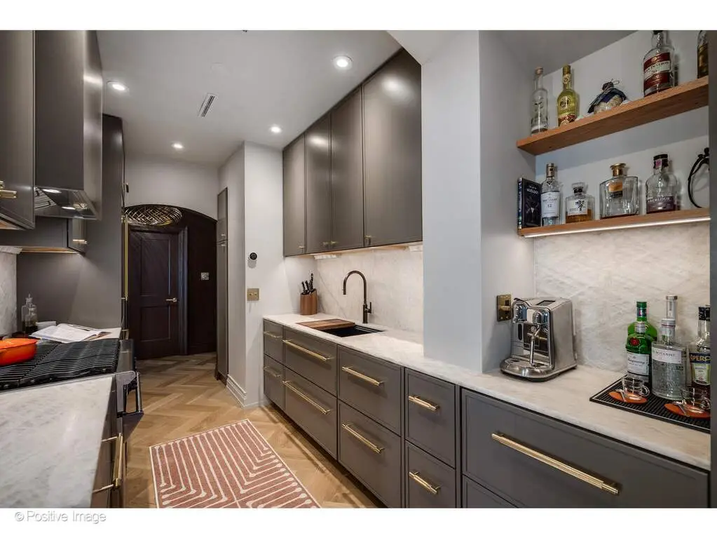This extraordinary top-floor residence has been completely reimagined in a meticulous 2024 transformation, resulting in a bespoke masterpiece that cannot be replicated. From the moment you enter, it is evident that every detail-every finish, every material-was selected with the highest level of intention and refinement. White oak herringbone floors flow seamlessly throughout, complemented by exquisite custom millwork in the baseboards and crown moldings, creating a timeless architectural frame. In the living room, a dramatic skylight cascades natural light across the space, while a hand-crafted marble mantle encases a wood-burning fireplace, an elegant centerpiece for sophisticated gatherings. The adjoining dining area is anchored by a sculptural Corbett chandelier, setting the tone for elevated entertaining. The chef's kitchen is nothing short of spectacular: iceberg quartzite counters, bespoke cabinetry, and brass and bronze hardware harmonize with a suite of Sub-Zero, Wolf, and Bosch appliances, including a built-in wine cooler. Every switch, outlet, and handle has been thoughtfully upgraded to Buster + Punch, ensuring a cohesive, refined aesthetic. Just beyond, custom glass doors reveal a versatile bedroom currently curated as a home office, complete with a striking tropical Wenge live-edge desk. The jewel-box powder room delights with a custom vanity, Graff fixtures, and statement wallpaper, while a serene den houses bespoke closets, including a concealed laundry with Electrolux appliances and additional storage. The primary suite is a private sanctuary, lavish and light-filled...with custom built-ins, and an extraordinary walk-in closet of glass and steel illuminated by a Tom Dixon fixture. The dual ensuite baths are a study in indulgence, featuring Palmer Industries brass fixtures, Lacava sinks, and luxurious travertine and marble floors. Every mechanical element of the residence was upgraded in the renovation, including new plumbing and electrical systems. A sculptural spiral staircase leads upward to what is arguably the finest private terrace in the Gold Coast. Here, a fully integrated indoor sunroom with bar, refrigerator, and freezer seamlessly transitions to an expansive rooftop oasis. European shade systems define a partially covered lounge area, while a sun-soaked expanse invites relaxation on designer furnishings-all included. A dedicated dining terrace boasts outdoor kitchen with grill, refrigerator, extensive counter space, and storage. Privacy walls, a Sonos sound system, and a professional irrigation system complete this unrivaled alfresco experience, framed by iconic views of the Hancock, Gold Coast architecture, and shimmering lakefront. The residence is set within a building whose infrastructure has been fully revitalized, including new piping, boiler, tuckpointing, masonry, and the addition of a common roof deck. Perfectly positioned at 1255 N State Parkway, this one-of-a-kind home offers the best of city living-just moments from Oak Street Beach, Lincoln Park, and the world-class shopping, five-star dining, and cultural richness of Chicago's Gold Coast. A residence beyond compare. Welcome home.