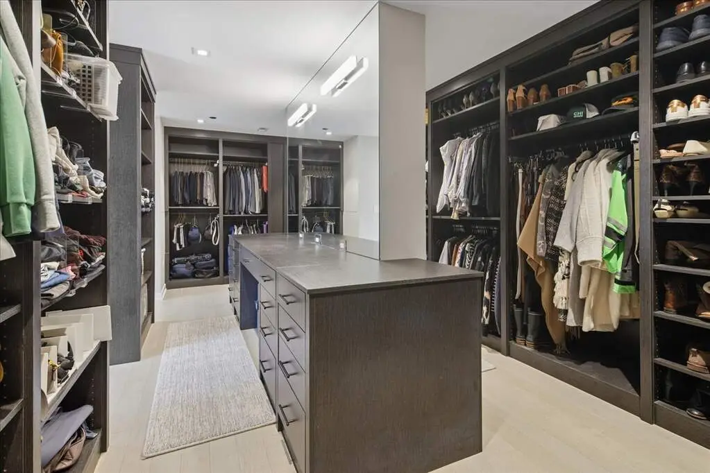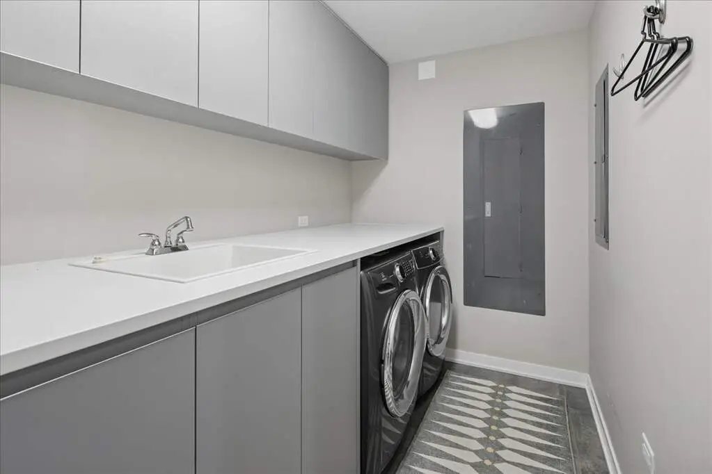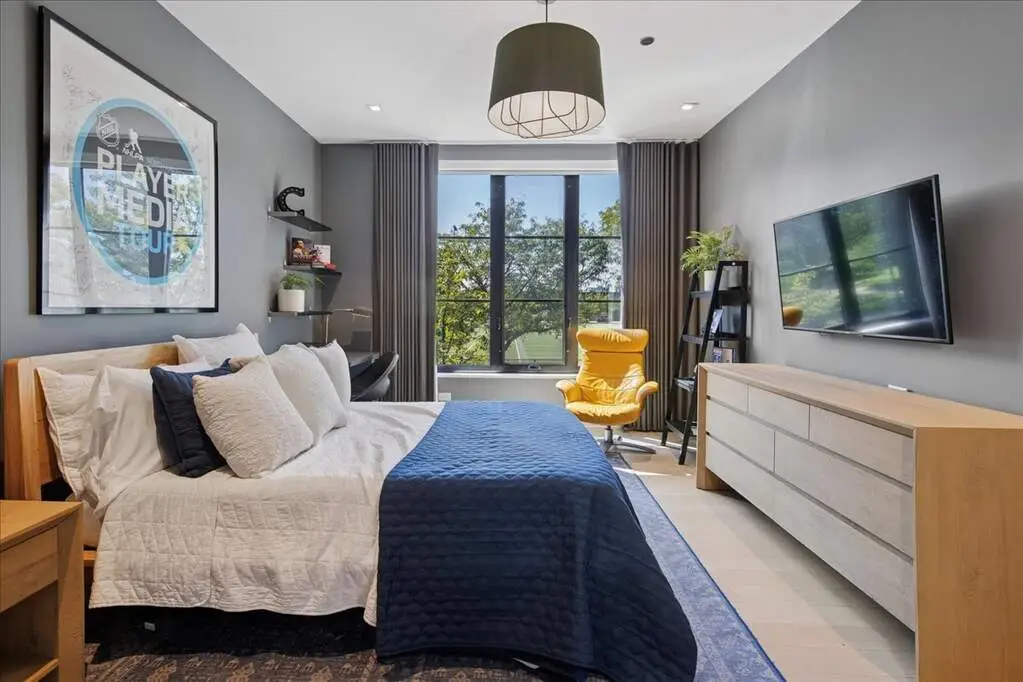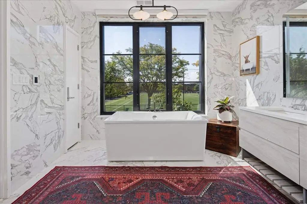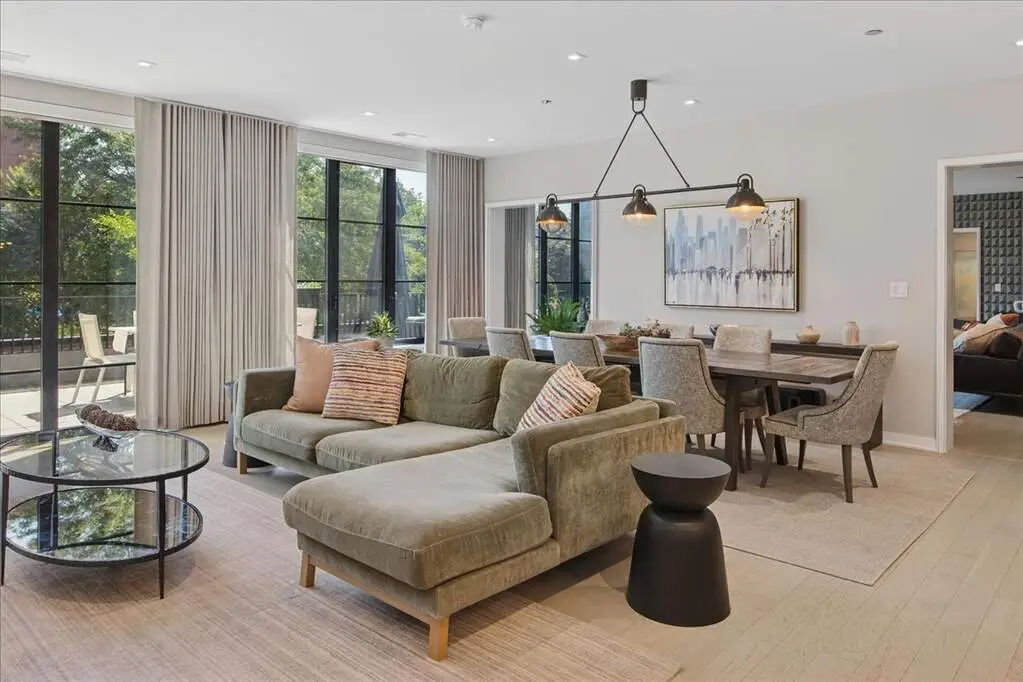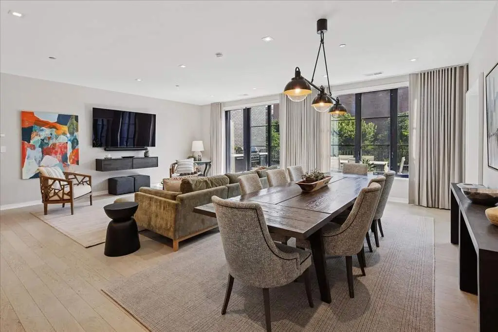 In the heart of Chicago's sought-after West Loop, this extraordinary 5-bed/5 and 1/2 bath residence embodies sophisticated modern living. Designed by acclaimed New York firm MoJo Stumer and elevated with curated finishes throughout, the home combines architectural precision with a warm, livable elegance. A private elevator opens into a gracious foyer, setting the tone for an expansive, light-filled interior where 9' plus ceilings and floor-to-ceiling windows frame private views of the city and nearby parks. Handsome lighting fixtures, premium designer wallpaper and custom closets add refinement and functionality, while the white oak floors and Lutron motorized blinds provide understated luxury. The chef's kitchen is a striking centerpiece, outfitted generously with Italian cabinetry, a dramatic quartz island and fully integrated/built-in Thermador and Bosch appliances, including a six-burner range, built-in espresso maker, and more. It's difficult to capture how much this thoughtfully designed kitchen enhances the home's elevated lifestyle. The primary suite is a serene retreat with spa-like bath featuring a sculptural soaking tub, walk-in shower, dual vanities, and oversized walk-in closets, while 3 additional bedrooms and a media lounge with balcony access offer comfort and dynamism. The 5th bedroom suite with kitchenette and separate entrance is located on the opposite end of the unit; ideal for guests or live-in quarters. Beyond the interiors, a spectacular 600 sq ft terrace with porcelain pavers, Mont Alpi grill, wine fridge, and built-in water and gas lines creates an outdoor living experience rarely found in the city. Additionally, dual-zone climate control, 2 separate built out laundry rooms, 3 extra storage lockers and 3 indoor parking spaces (2 EV chargers)-underscore the home's seamless blend of design and function. Steps from Skinner Park, esteemed Whitney Young Magnat School and the city's best dining and shopping, this is a rare opportunity to own a residence where elevated design meets everyday ease in one of Chicago's most dynamic neighborhoods.