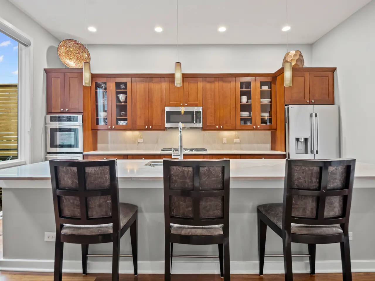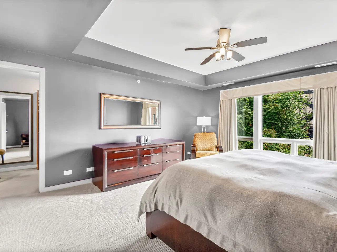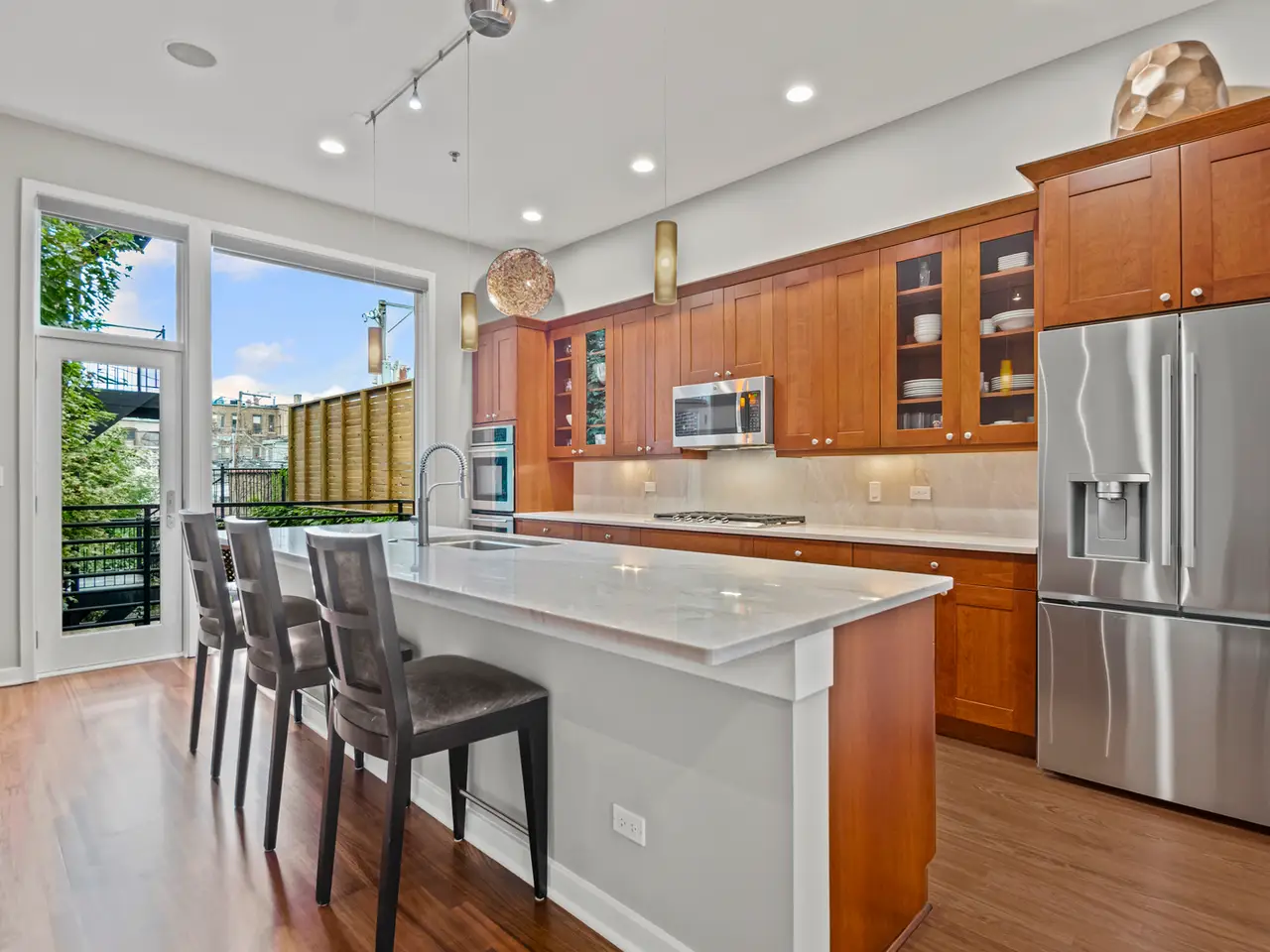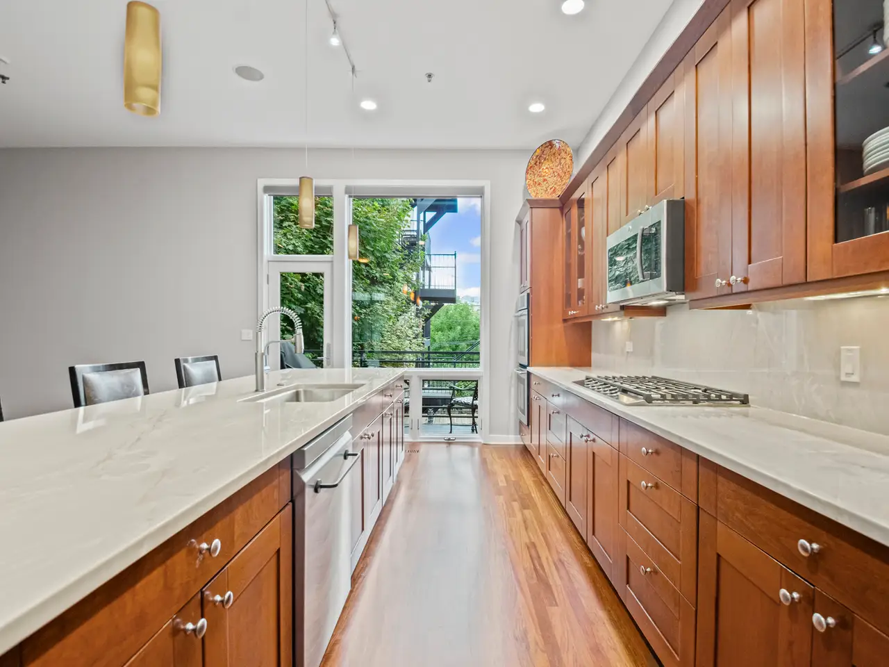 Over 3500 sq. ft. townhome in beautiful condition with 11 foot ceilings, floor to ceiling windows located in Lincoln Park gated community, Bosworth Place. First floor has a huge family room which opens up to a stunning 450 foot private patio, full bath and laundry room. Second floor has a gorgeous living room flooded with natural light, wood burning fireplace, newly refinished floors, dining room with built in, stylish powder room, gourmet kitchen and great room. Kitchen has a huge island with quartzite countertops and backsplash, high quality cabinetry, new appliances, balcony overlooking patio and opens up to the great room. Third floor has an expansive primary suite and two spacious bedrooms. Primary suite has spa like bath with a soaking tub, walk in shower and dual vanity. With a two car attached garage this home lives like a single family and in a in a perfect Lincoln Park location