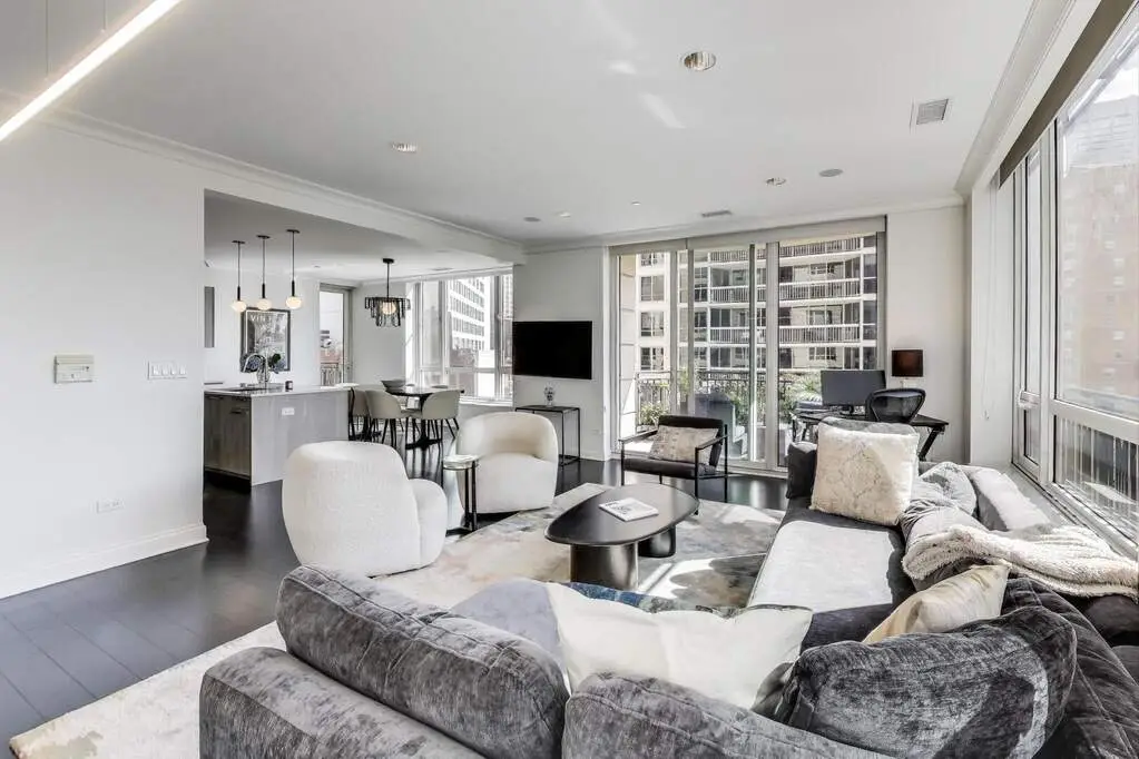 Enjoy amazing city views from this generous SW corner unit. Sunlit streams through the floor-to-ceiling windows. Gracious foyer leads to spacious open concept living space. A sharp redo by Paul Schulman Design sets this unit apart. The updated kitchen features SubZero & Viking appliances, custom Poggenpohl cabinets, natural stone countertops & convenient breakfast bar. Your first balcony is off the living space and comes with a gas line for easy grilling. The primary bedroom has a large walk-in closet, marble bathroom with double sinks, separate shower & soaking tub plus a second balcony. The other two bedrooms are generously-sized & each with their own designated bathroom plus a powder room. Crisp hardwood floors t-out. Wonderful amenities include 24-hour doorman, outdoor rooftop swimming pool, sundeck and gardens, state of the art fitness center, and party room. This well run building has new hallways & 2.4m in reserves as well as a 4-pipe system allowing the selection of heating or cooling year-round. Fantastic location just steps from Michigan Ave, Oak St beach, restaurants, coffee shops, grocery stores, and great shopping. One attached, heated garage space and storage space is included in the price, and second garage space next to it is available for $50K.