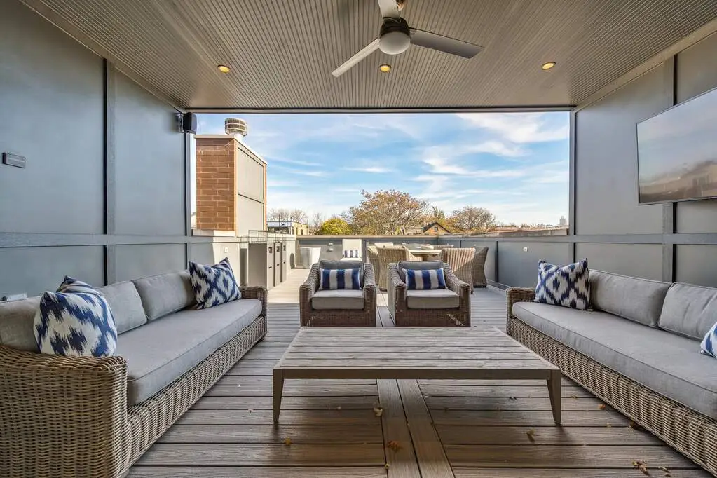 Meticulously maintained Platinum Homes resale with truly unbeatable Chicago skyline views! Located on the coveted east side (not on "L") of beautiful, lush Bissell Street! Completed in 2016, this elegantly designed limestone and brick home offers the ultimate in luxury living. Up to the minute finishes with ECO2 Lutron lighting, triple zone radiant heat, snowmelt on both the front and back patio all controlled through the convenience of your smart phone. Intricate millwork, poplar moldings, custom shutters and white oak plank flooring with herringbone inlay on the main level allow for a true air of sophistication. Step inside, where a gracious foyer welcomes you this outstanding open floorplan. Boasting a formal living and dining room with oversized west facing windows and a gorgeous, stone fireplace. Natural light pours through the main level with west, south, and north facing windows. Entertaining is truly easy in the sleek white kitchen boasting quartz countertops, a custom oversized statutory marble island, Wolf range and coffee maker, two Bosch dishwashers, SubZero fridge and freezer, fantastic pantry and storage space, plus a well-equipped butler's pantry with a u-line beverage center. East facing windows overlooking the incredible outdoor space is the focal view of the great room with custom built-ins surrounding a second marble fireplace. An extension of your home's living space, the adjacent back patio offers an outdoor kitchen with a woodburning fireplace and ample room to dine, relax, or play, plus access to the heated 2.5 car garage. The built-in mudroom area makes for easy in and out access with smart storage solutions. A powder room and ample storage space complete this level. Three ensuite bedrooms make up the second level, including the relaxing primary suite boasting dual walk-in closets, and a marble spa bath with dual vanities, an oversized soaking tub and steam shower. A fantastic laundry center with a sink and great storage space can also be found. Find the most magnificent views of the city just one floor up on your huge penthouse level roof deck! Opening up to an exceptional rec room with a wet bar and a huge guest bedroom and full bath. The lower has it all, featuring high ceilings, a generous family room with great built-ins, a third wet bar, two nicely sized bedrooms, a full white bath and secondary laundry. Perfect location in the heart of Lincoln Park, within walking distance to wonderful restaurants, parks, and Sheffield/Armitage shopping, plus in Oscar Mayer School District!