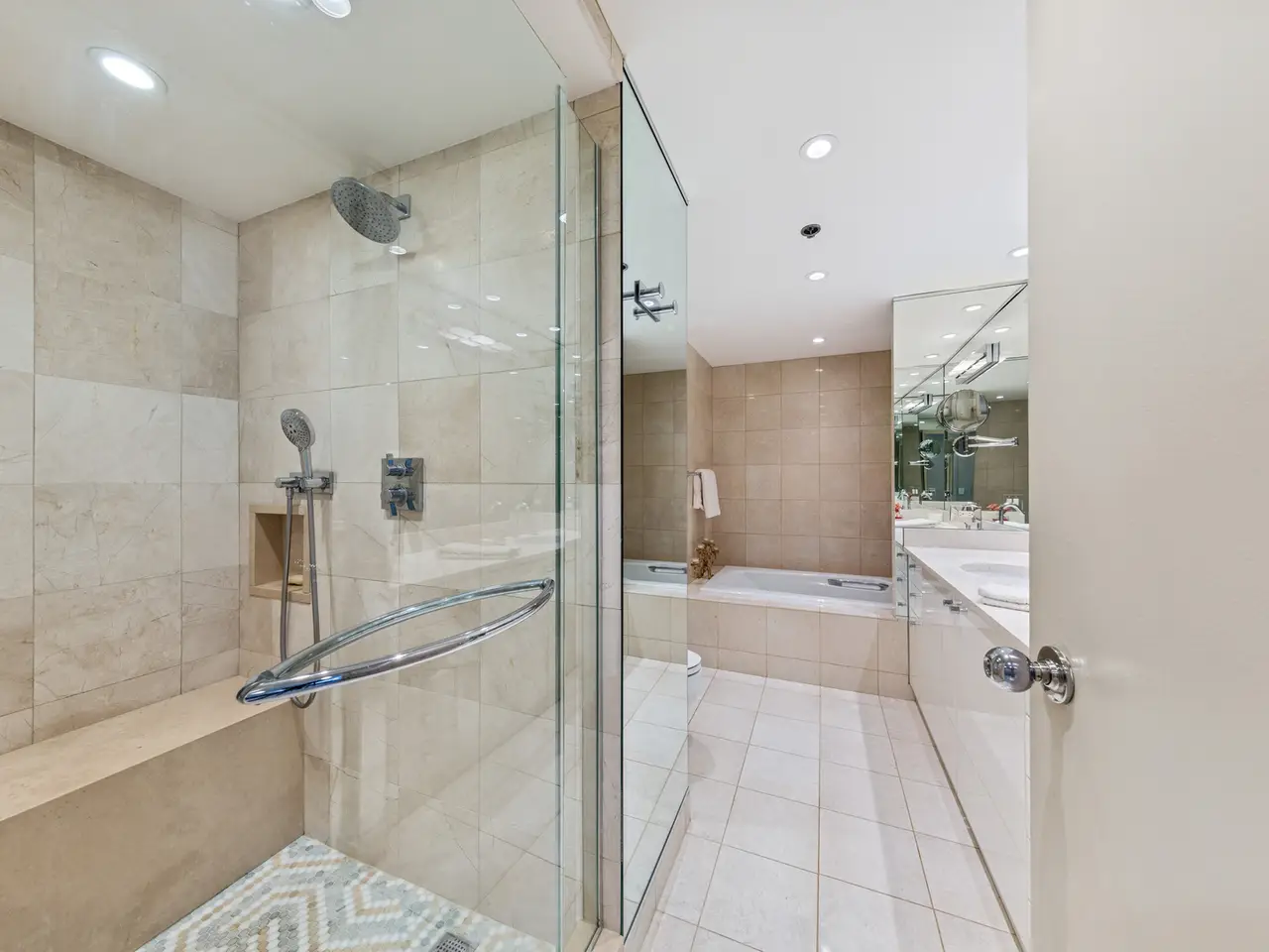 Tastefully tiled oversized shower