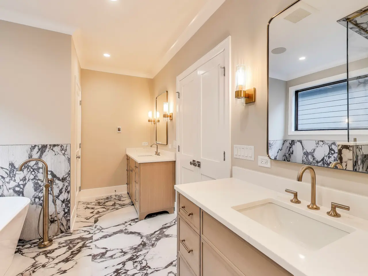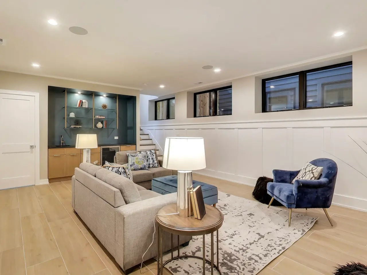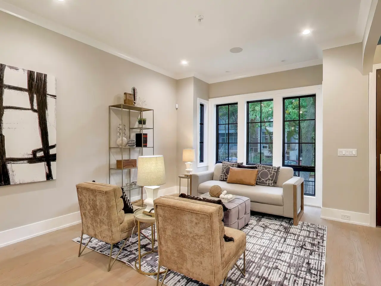 JUST COMPLETED. Nestled in the vibrant West Town neighborhood and within the sought-after Mitchell School District, this stunning new construction home redefines modern luxury. Boasting six spacious bedrooms and six beautifully appointed bathrooms, this residence offers an unparalleled living experience and is within easy walking distance to the diverse restaurants and shops along Chicago Avenue. Step inside and discover a thoughtfully designed, open floor plan perfect for both everyday living and grand entertaining. The gourmet kitchen is a chef's dream, featuring top-of-the-line Sub-Zero and Wolf appliances, and a striking walk-through butler's pantry seamlessly connects it to the elegant dining area, offering both functionality and sophisticated style. The upper level is a true retreat, featuring four generously sized bedrooms, providing ample space and privacy for family and guests. Each bathroom showcases luxury design finishes, creating spa-like sanctuaries throughout the home. The lower level is an entertainer's dream, complete with a sprawling entertainment room perfect for movie nights or game days, and two additional bedrooms, offering flexibility for guests, home offices, or a gym. Radiant heated floors ensure year-round comfort throughout this level. Gather around the cozy fireplace in the inviting family room, or extend your living outdoors to the patio, where a second fireplace creates a warm and inviting ambiance for al fresco gatherings. Ascend to the garage rooftop deck, an exceptional outdoor oasis featuring a custom pergola, ideal for enjoying city views and relaxing in style. This exceptional West Town residence offers the perfect blend of modern design, luxurious amenities, an unbeatable location, and the convenience of city living right outside your door. Welcome home.