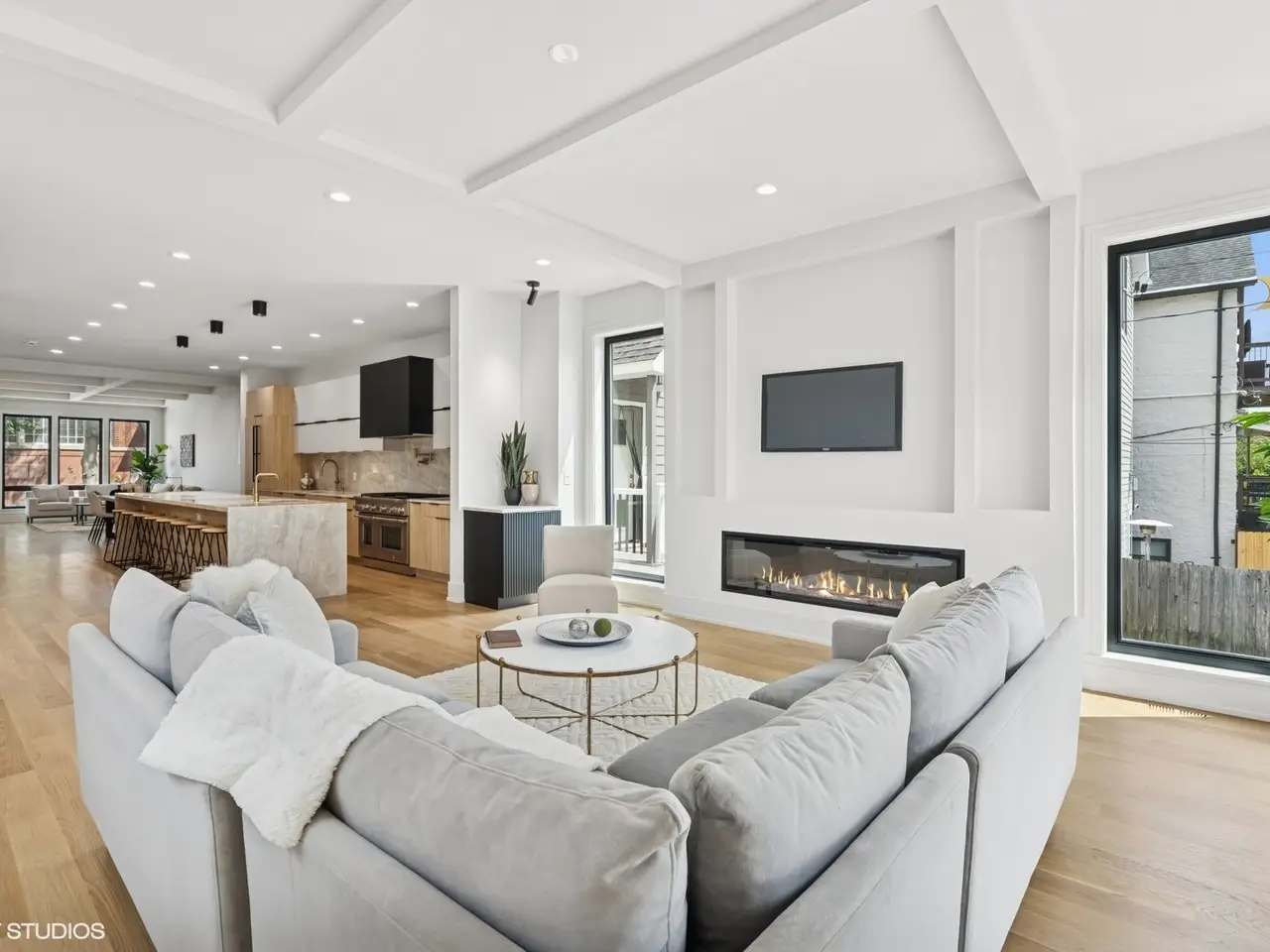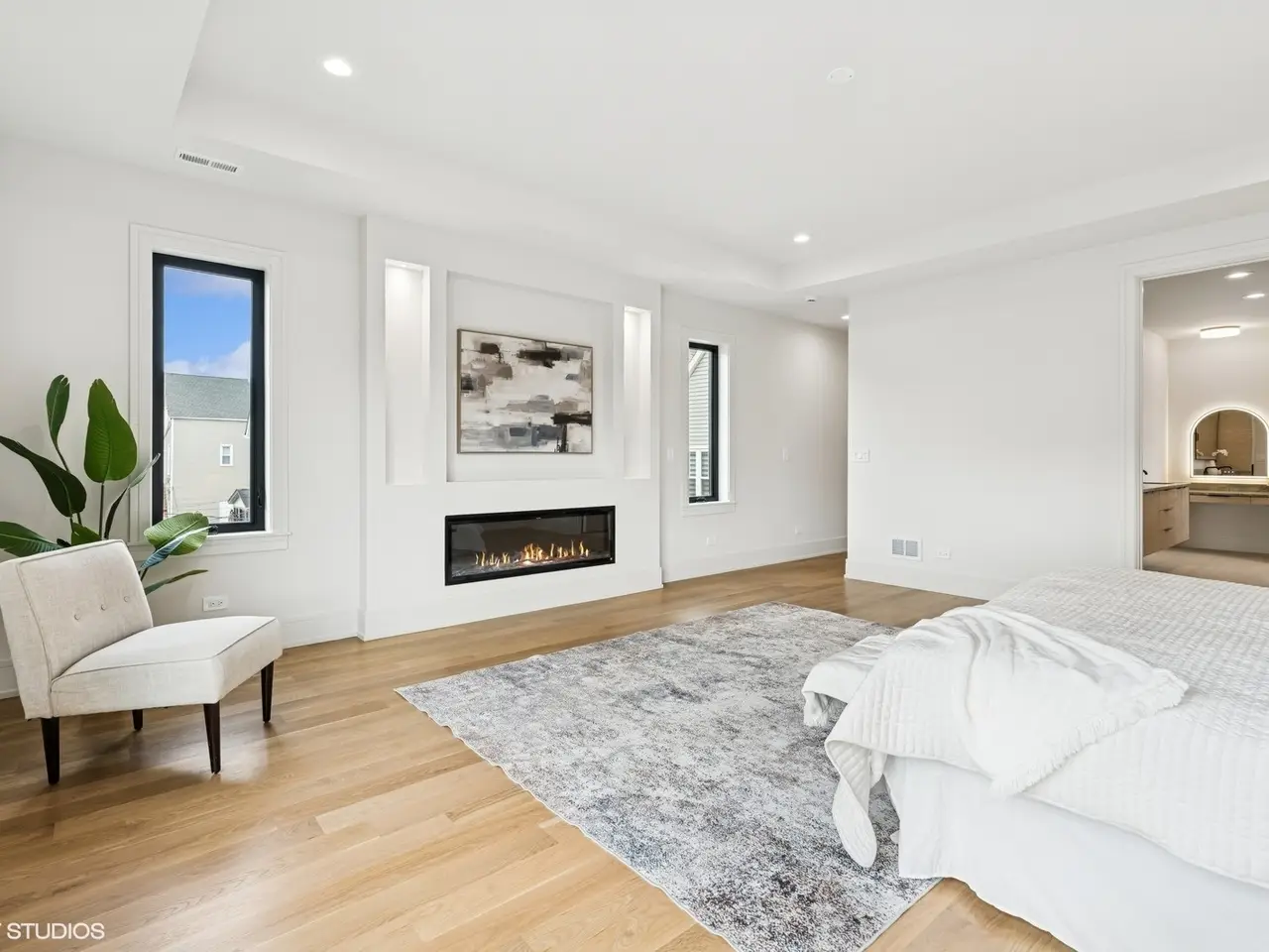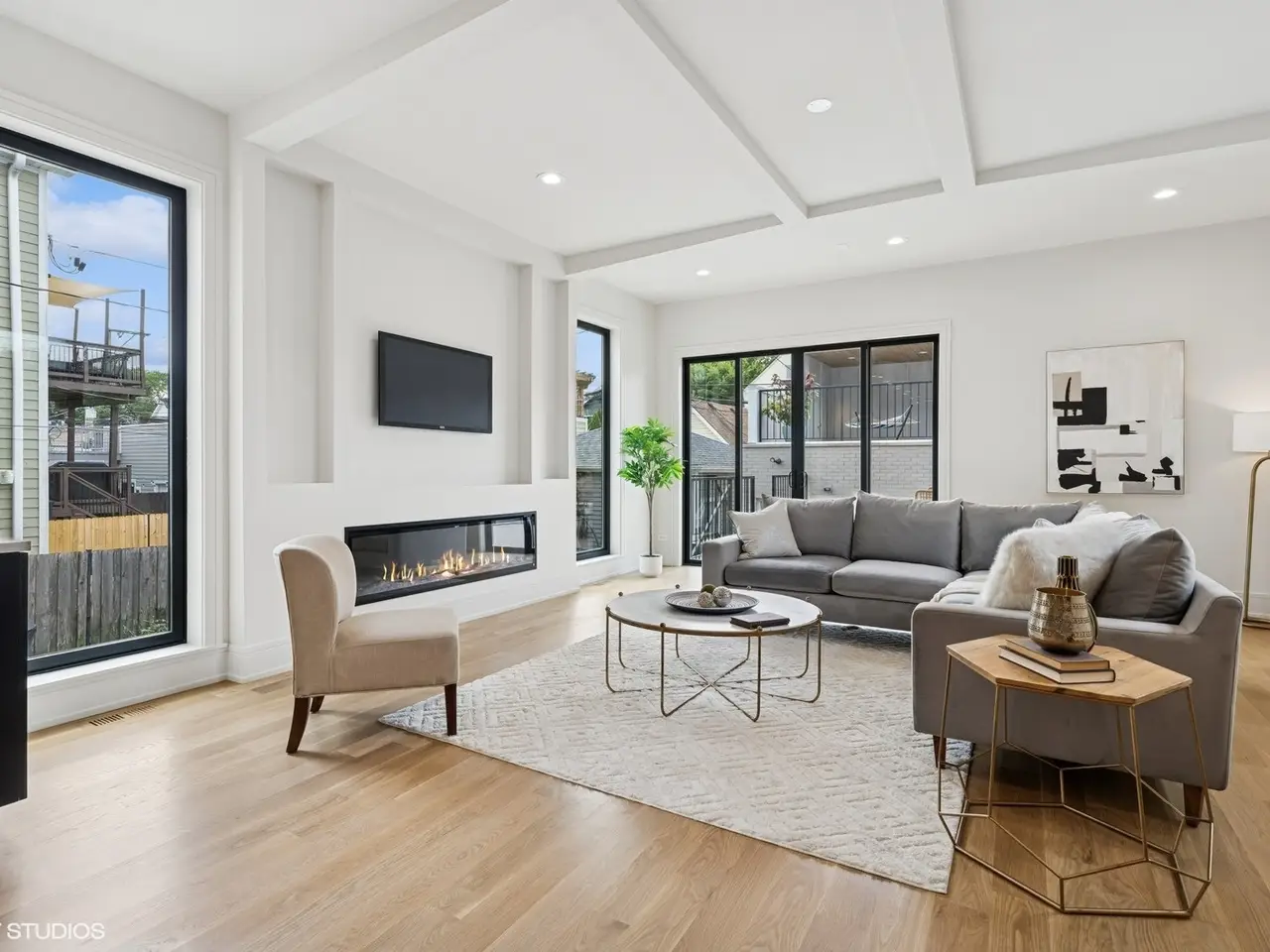 Newly completed West Lakeview 5-bedroom, 4.2-bath single-family home with elegant architectural flow, natural materials, and curated finishes. The oversized entry and formal sitting area features coffered ceilings, powder room with made-to-order Calacatta Viola Antique Marble Sink. The unforgettable chef's kitchen features a 16' island with Taj Mahal marble, paneled Thermador appliance suite, Emtek pulls, custom cabinetry, walk-in pantry, and fluted accents. Living room expands to the custom made steel deck and composite decking, and garage-top deck with enclosed pergola. The primary includes dual walk-in closets, spa-quality en-suite bath with Aqua Quartzite dual sinks, Victoria+Albert soaking tub, spa shower, radiant heated floors and artisan tile selections including a Verde Tia marble niche and Baltic sandstone. The second level has two additional bedrooms, a Jack-and-Jill bath with Aqua quartzite sinks, natural stone finishes, and radiant heated floors. The utility room and laundry closet with storage complete the level. The lower level offers an expansive family room, 10' high ceilings, wet bar, Zephyr beverage cooler, finished with a leathered Onyx quartzite marble counter. Level also includes powder room, two bedrooms, each with radiant heated floors in en-suite baths and custom closets, and full-size laundry room. Additional features include a 400-amp electrical service (garage subpanel, EV ready), main and lower level pre-wired for 5.2 surround sound, 2 electric fireplaces, custom closets throughout, oversized windows, 4K full parameter camera system, and smart home integrations. Located directly across from the Hamlin Park clubhouse, pool, tennis courts, and dog park. Enjoy easy access to Costco, Whole Foods, Target, Belmont CTA, Roscoe Village shops and restaurants, and an abundance of green space.