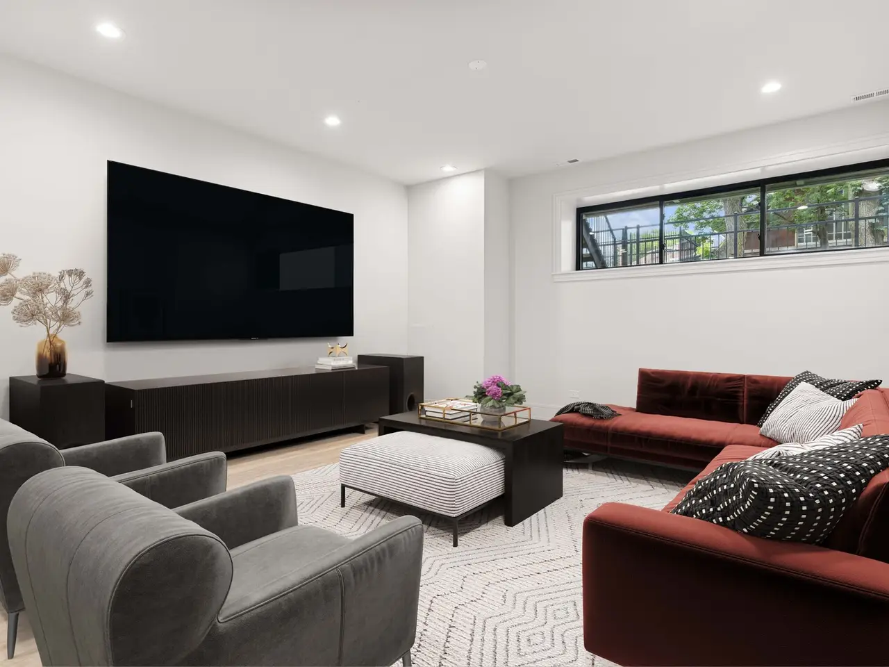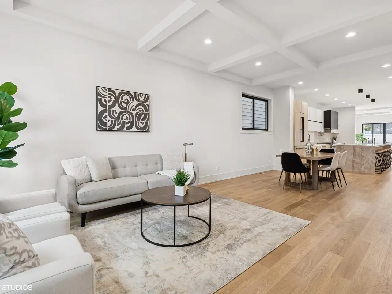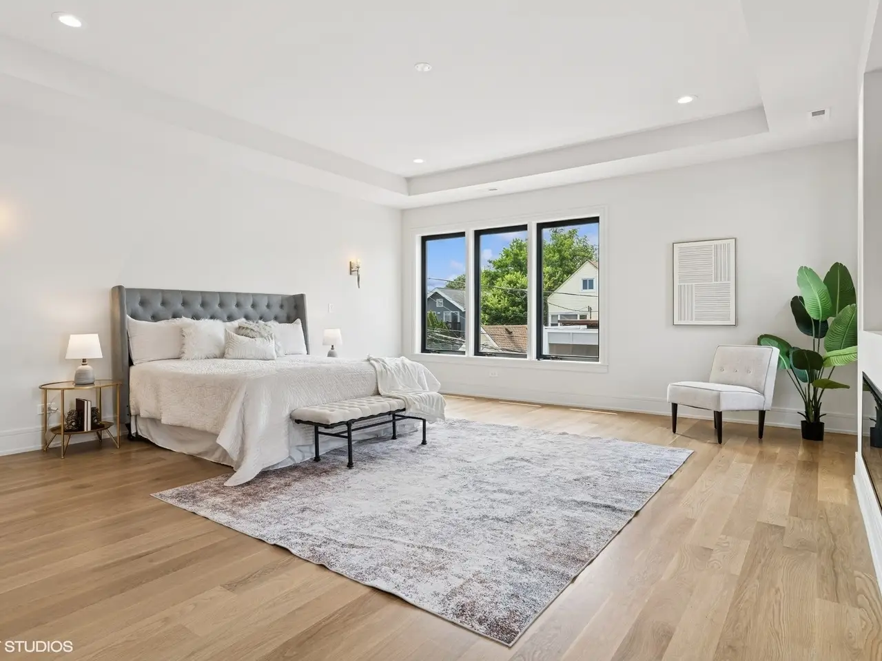 Newly completed West Lakeview 5-bedroom, 4.2-bath single-family home with elegant architectural flow, natural materials, and curated finishes. The oversized entry and formal sitting area features coffered ceilings, powder room with made-to-order Calacatta Viola Antique Marble Sink. The unforgettable chef's kitchen features a 16' island with Taj Mahal marble, paneled Thermador appliance suite, Emtek pulls, custom cabinetry, walk-in pantry, and fluted accents. Living room expands to the custom made steel deck and composite decking, and garage-top deck with enclosed pergola. The primary includes dual walk-in closets, spa-quality en-suite bath with Aqua Quartzite dual sinks, Victoria+Albert soaking tub, spa shower, radiant heated floors and artisan tile selections including a Verde Tia marble niche and Baltic sandstone. The second level has two additional bedrooms, a Jack-and-Jill bath with Aqua quartzite sinks, natural stone finishes, and radiant heated floors. The utility room and laundry closet with storage complete the level. The lower level offers an expansive family room, 10' high ceilings, wet bar, Zephyr beverage cooler, finished with a leathered Onyx quartzite marble counter. Level also includes powder room, two bedrooms, each with radiant heated floors in en-suite baths and custom closets, and full-size laundry room. Additional features include a 400-amp electrical service (garage subpanel, EV ready), main and lower level pre-wired for 5.2 surround sound, 2 electric fireplaces, custom closets throughout, oversized windows, 4K full parameter camera system, and smart home integrations. Located directly across from the Hamlin Park clubhouse, pool, tennis courts, and dog park. Enjoy easy access to Costco, Whole Foods, Target, Belmont CTA, Roscoe Village shops and restaurants, and an abundance of green space.