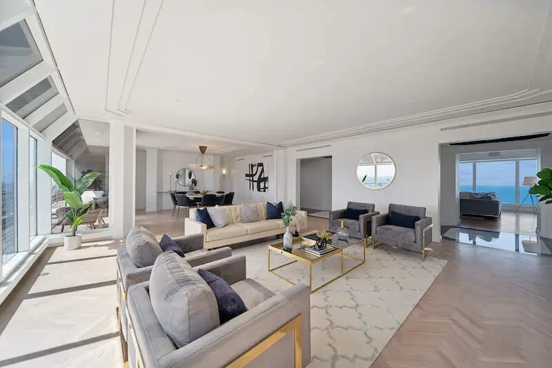 A one-of-a-kind fully renovated 5,000 square foot, 3 bedroom plus den, 4 1/2 bathroom penthouse with 550 feet of private terrace accessible from five rooms, one of only two homes in the building. A dream terrace for entertainment or quiet enjoyment renovated in 2025! Exceptional penthouse in one of Chicago's premier luxury buildings - One Magnificent Mile. Incomparable and breathtaking skyline and lake Michigan views from every room. Dramatic gallery leads you to a large family room, living room on the opposite side and elegant separate dining room. The modern kitchen boasts an oversize island, a casual dining area, floor-to-ceiling windows and sliding doors to the terrace. Top-of-the-line stainless steel appliances, including Sub-Zero, Wolf, and Viking. Imagine cooking with the cityscape as your background! Be on vacation year-round in the master suite with a wall of windows, terrace, a true dressing room, closets galore and two spa-like bathrooms. Two additional en suite bedrooms complete this exceptional residence in the sky. Full-amenity, impeccably managed building is ideally situated on prestigious Michigan Avenue and offers 24-hour door staff, rooftop deck, indoor pool and spa, poolside deck, and fitness facility. Beach, shopping, and entertainment at your doorstep!