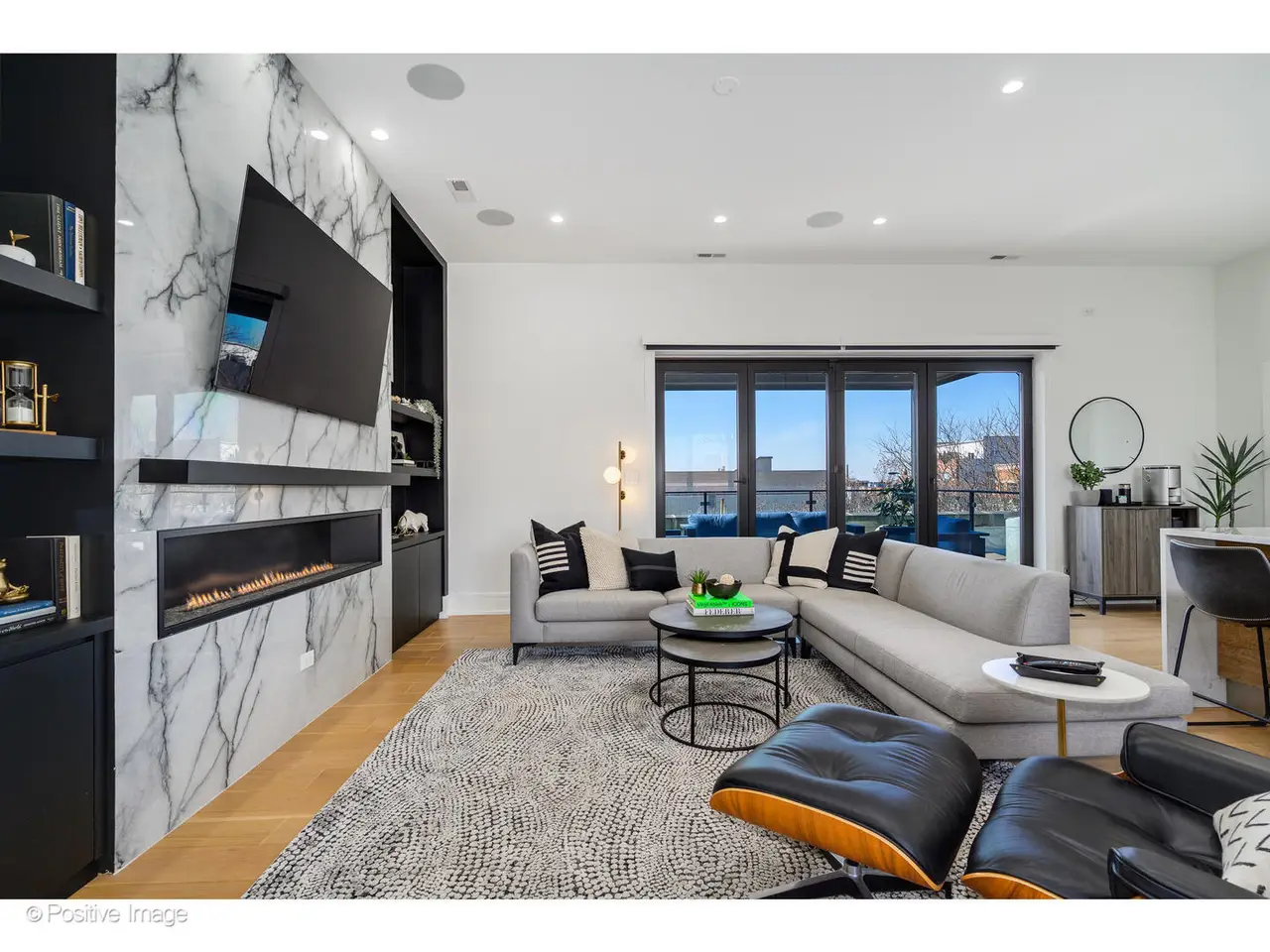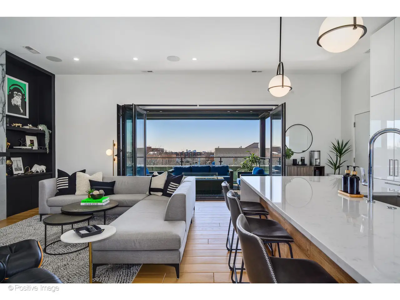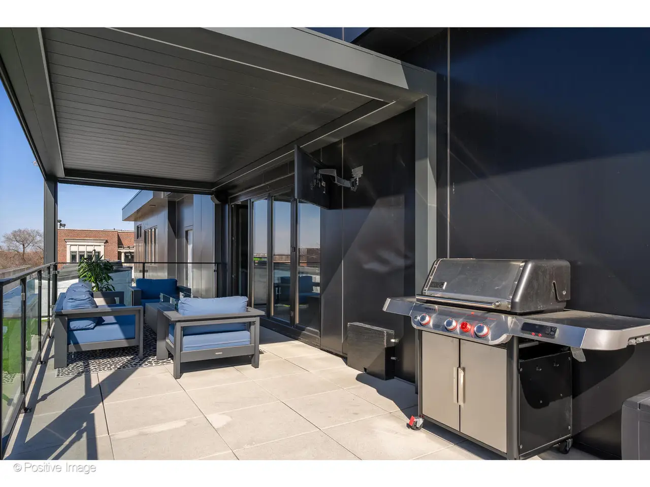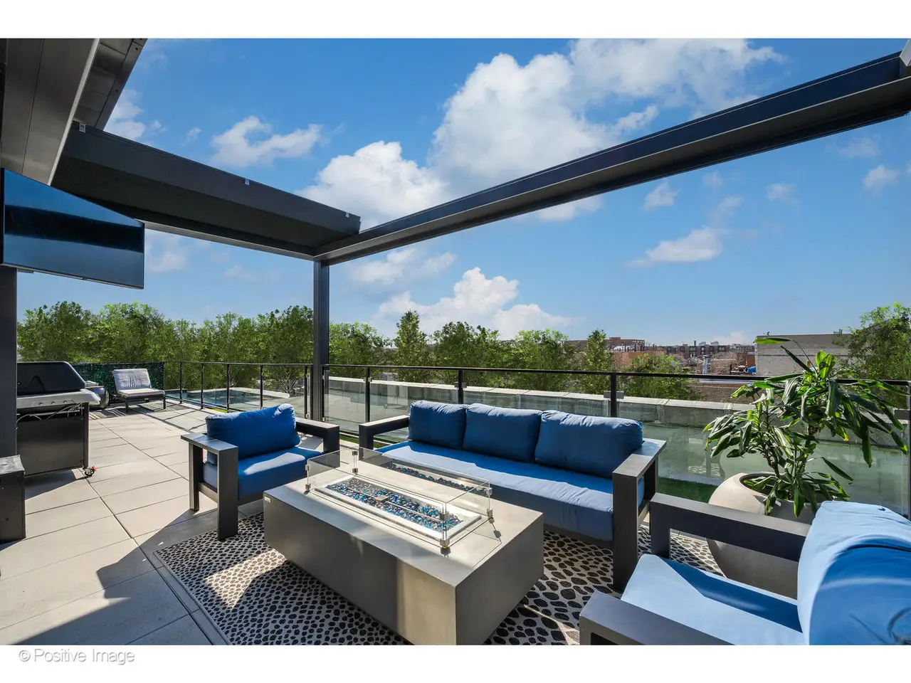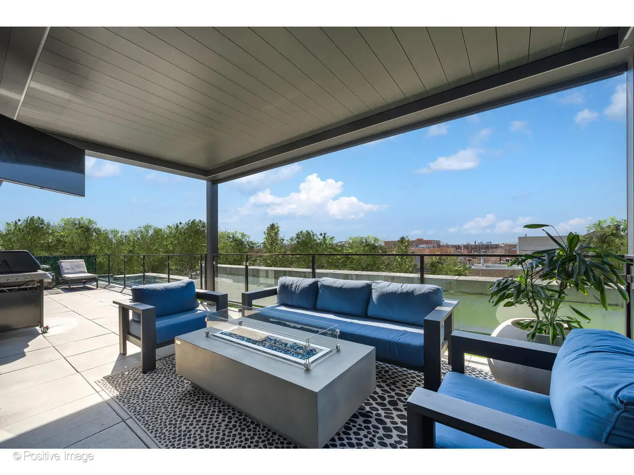 Step into refined living in this revitalized Chicago Landmark Bank building. Nestled in Lincoln Park on Janssen Ave, a quiet, tree-lined street, this penthouse is a true showstopper. Designed for seamless living, the home features direct elevator entry, coffered ceilings, and modern finishes. The gourmet kitchen boasts a large island, quartz countertops and backsplash, modern pendant lighting, and ample storage. It flows effortlessly into the spacious living area, where a gas fireplace, custom built-ins, and in-ceiling surround sound speakers create an inviting atmosphere. A retractable sliding door leads to one of the home's most impressive features - a sprawling 460 square feet private outdoor oasis so you can enjoy indoor/outdoor living. This entertainer's dream includes an aluminum pergola with a retractable roof and automated shades, a gas fire table, and turf flooring, offering a perfect indoor-outdoor experience. All three bedrooms are thoughtfully designed with modern touches and oversized windows. The primary suite is a private retreat, complete with another wall-length retractable sliding door that seamlessly connects to the deck, enhancing the indoor-outdoor flow. Located just minutes from the Red, Brown, and Purple Line stop and with quick access to the expressway, this home is surrounded by top-tier shopping, dining, parks, and more. Plus, it's in the highly sought-after Oscar Mayer Magnet School district. One garage parking space and additional storage included