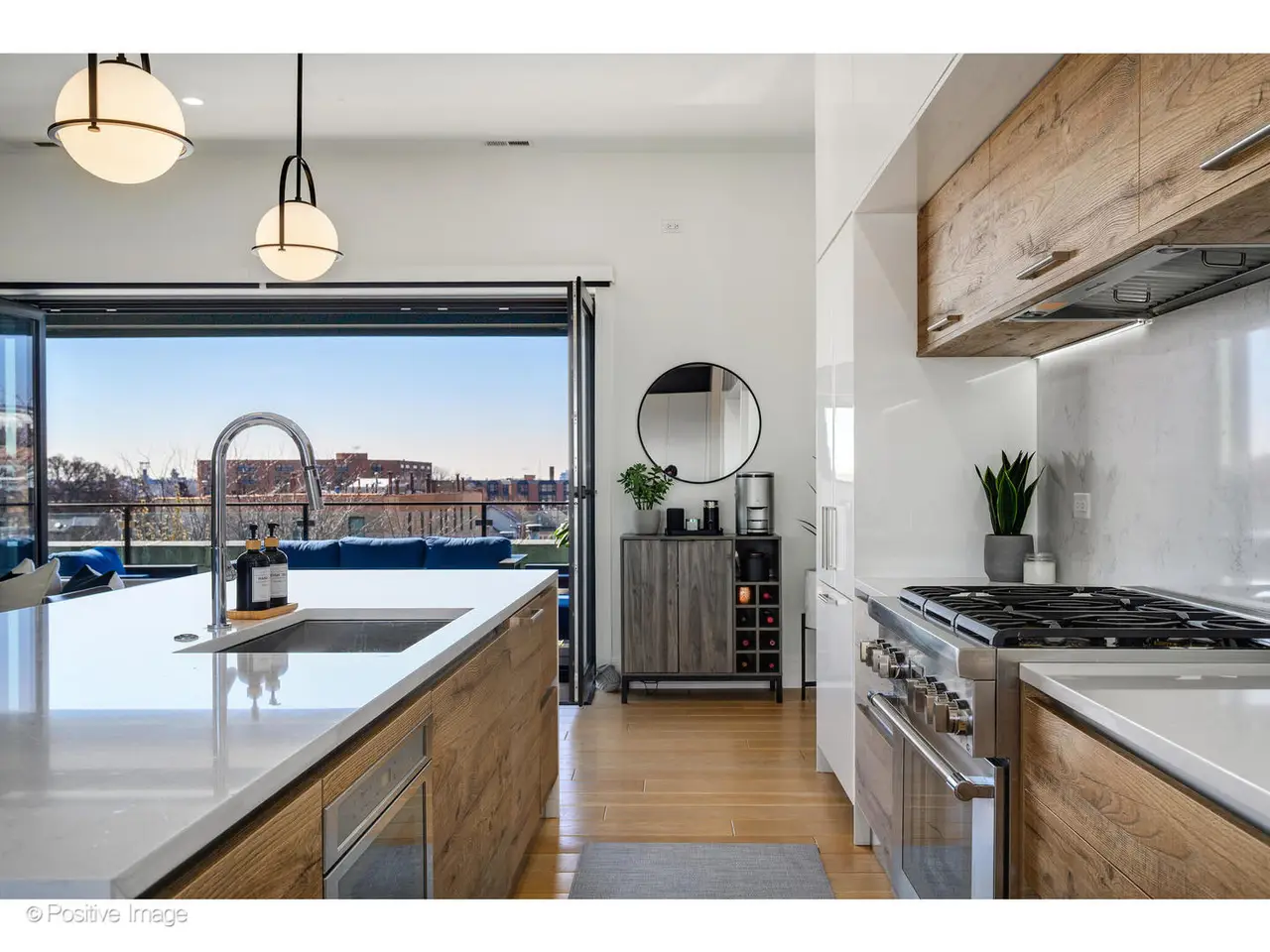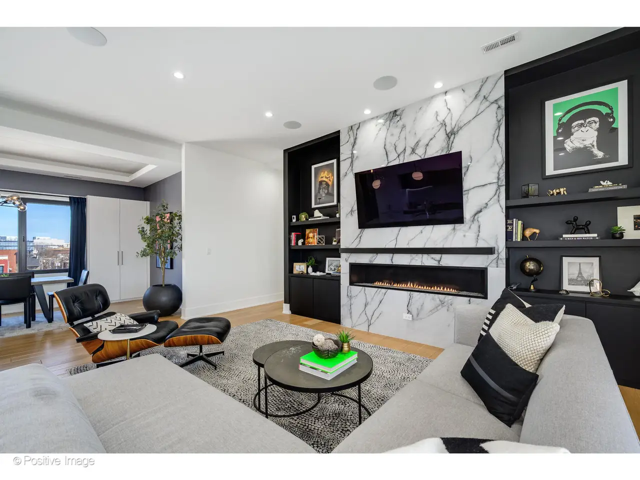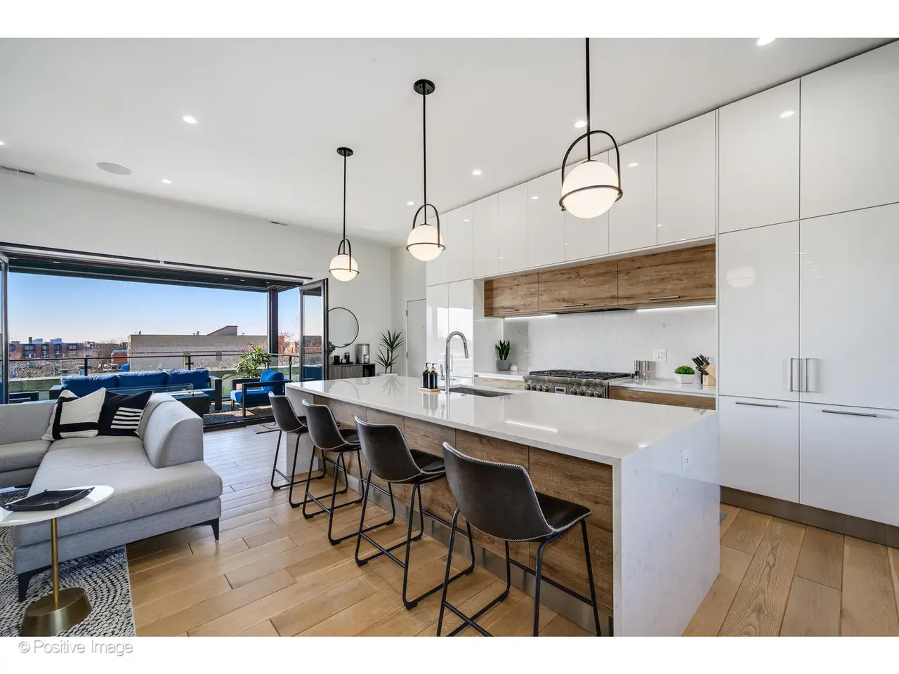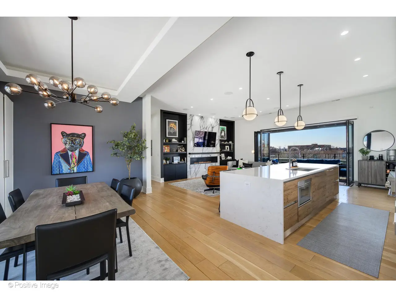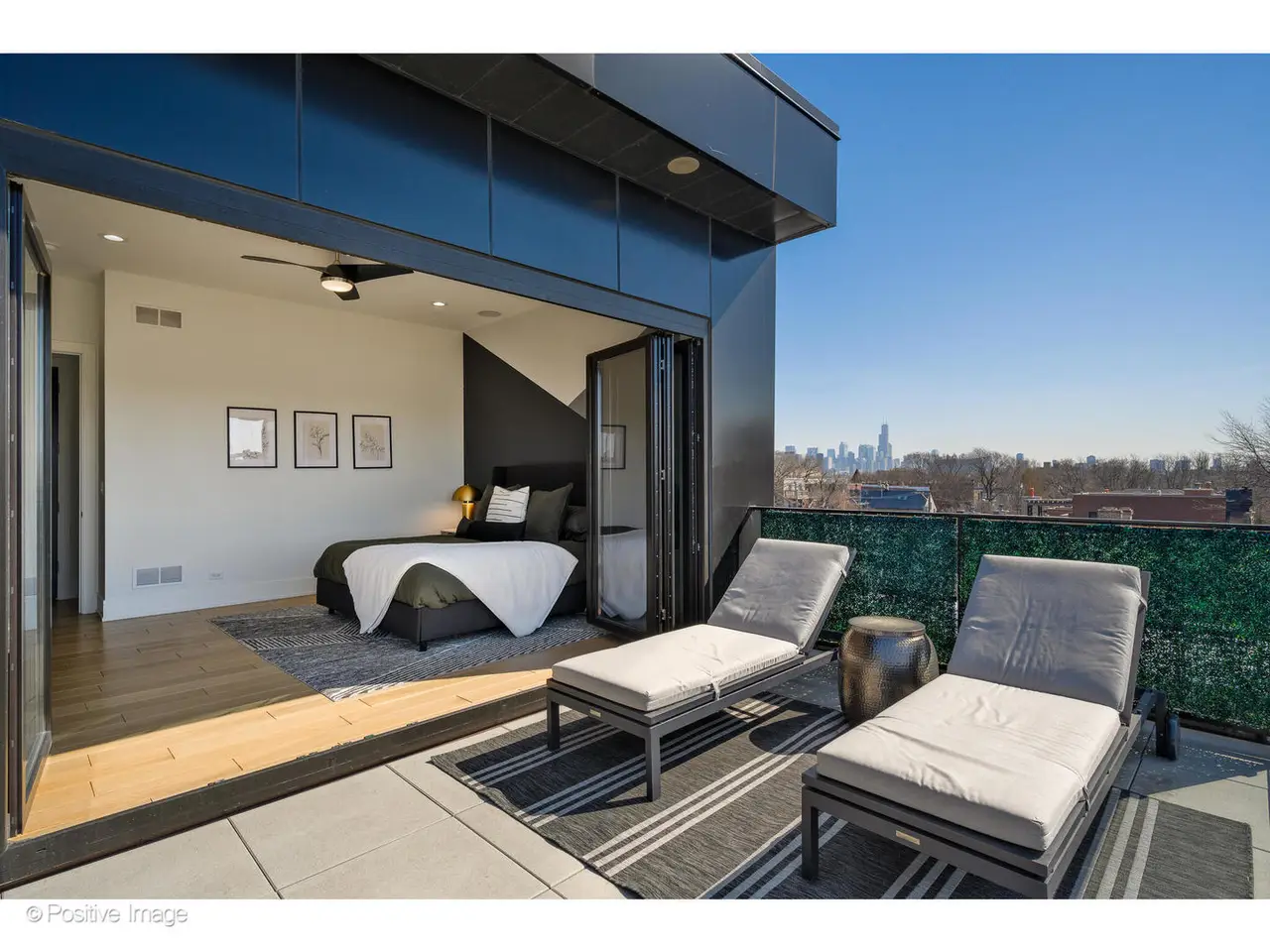Step into refined living in this revitalized Chicago Landmark Bank building. Nestled in Lincoln Park on Janssen Ave, a quiet, tree-lined street, this penthouse is a true showstopper. Designed for seamless living, the home features direct elevator entry, coffered ceilings, and modern finishes. The gourmet kitchen boasts a large island, quartz countertops and backsplash, modern pendant lighting, and ample storage. It flows effortlessly into the spacious living area, where a gas fireplace, custom built-ins, and in-ceiling surround sound speakers create an inviting atmosphere. A retractable sliding door leads to one of the home's most impressive features - a sprawling 460 square feet private outdoor oasis so you can enjoy indoor/outdoor living. This entertainer's dream includes an aluminum pergola with a retractable roof and automated shades, a gas fire table, and turf flooring, offering a perfect indoor-outdoor experience. All three bedrooms are thoughtfully designed with modern touches and oversized windows. The primary suite is a private retreat, complete with another wall-length retractable sliding door that seamlessly connects to the deck, enhancing the indoor-outdoor flow. Located just minutes from the Red, Brown, and Purple Line stop and with quick access to the expressway, this home is surrounded by top-tier shopping, dining, parks, and more. Plus, it's in the highly sought-after Oscar Mayer Magnet School district. One garage parking space and additional storage included