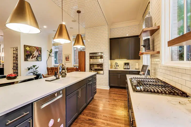 A rare offering in the heart of Streeterville, this four-story end-unit townhome combines the scale and privacy of a single-family residence with the convenience of a premier downtown location. Encompassing approximately 3,600 square feet, the home features four bedrooms, three and one-half baths, and an attached heated two-car garage, all set on an extra-large floor plan facing a quiet, tree-lined street. An open-concept second level is defined by soaring 11-foot floor-to-ceiling windows, a gas fireplace, remote-controlled blinds, fully automated AV and a flexible living/dining space ideal for everyday living and entertaining. The chef's kitchen has been thoughtfully updated with new appliances, refinished cabinetry, a generous pantry, and a wide balcony for grilling or gatherings. Multi-room speaker surround sound system on Sonos network and integrated smart-home features, including Alexa-controlled lighting, further enhance the experience. The primary suite offers custom built-ins, a walk-in closet, and a spa-style bath with a soaking tub, separate glass shower, and double vanity. A first-floor ensuite suite provides flexibility for guests or extended family. Additional features include new hardwood floors, a finished mudroom, newer furnace, AC, and water heater. The crowning feature of the residence is a private wraparound Trex rooftop deck, newly completed in 2023, with sweeping city views-perfect for entertaining, gardening, or quiet relaxation above the city. Located just blocks from the Magnificent Mile, the Lakefront, River Walk, Navy Pier, Ogden Slip, and Chicago's finest dining, shopping, and cultural attractions, this home represents a rare opportunity to own both space and lifestyle in one of the city's most dynamic neighborhoods.