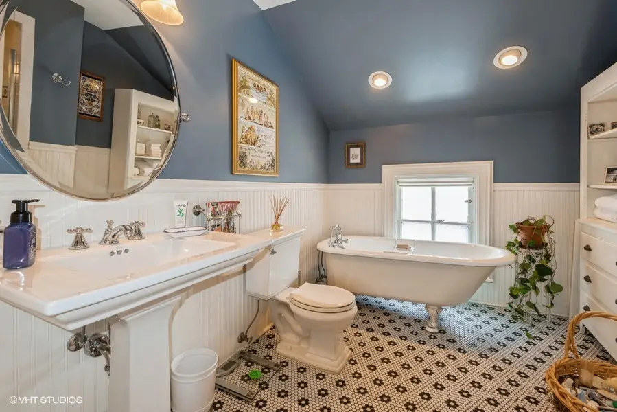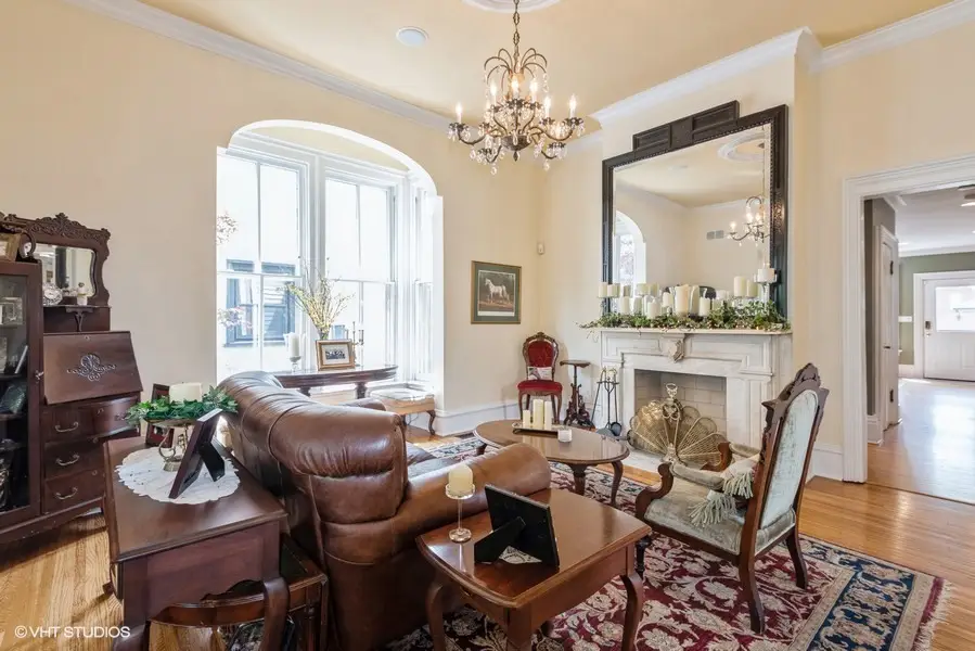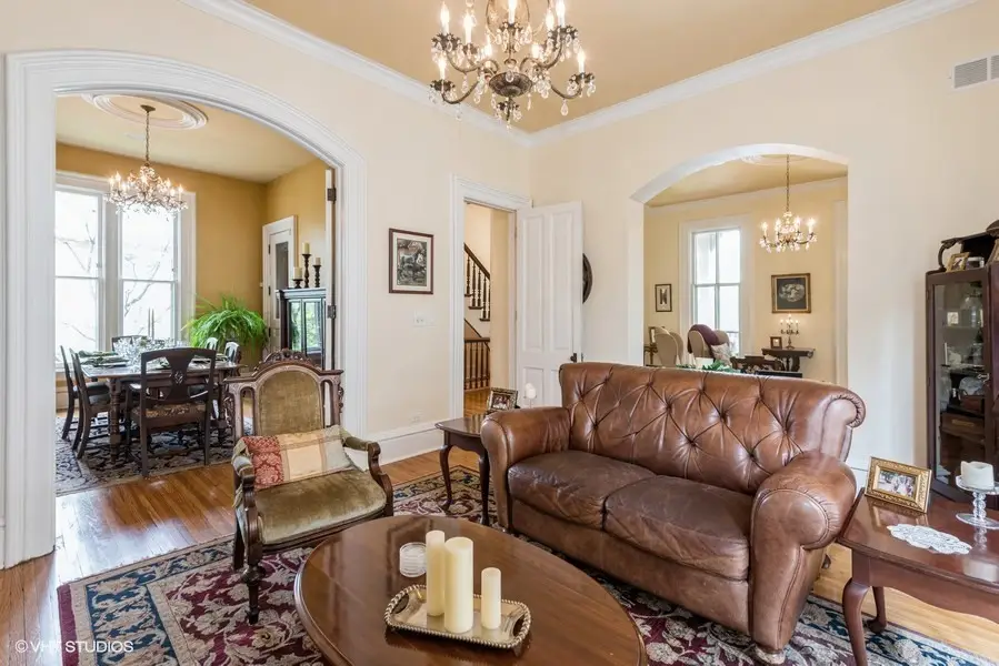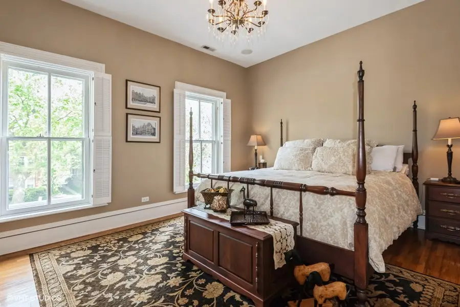 This turn-of-the-century Italianate home, completely renovated in 2005, is situated on one of the prime corners in Old Irving Park. As you approach the house, you will be welcomed by a charming front porch seating area. Upon entering the residence, you are greeted by a grand foyer featuring a stunning mahogany staircase, 11-foot ceilings, original moldings and door casings, hardwood floors, oversized windows that flood the rooms with light, gas fireplaces, an ante room, formal living room ,formal dining room. This constitutes merely the front half of the main floor. The back half of the main floor boasts a beautiful kitchen that opens to a spacious great room with wet bar, multiple pantries providing ample storage, a half bath with basketweave tiled flooring, and an office overlooking the back yard. The second floor has 4 bedrooms, 3 bathrooms and laundry room. The primary bathroom is equipped with a steam shower, heated floors, double bowl sinks and a soaking tub. The primary bedroom includes a sitting area with a fireplace. The basement offers a recreation room, custom detailed temp-controlled wine cellar, office, 5th bedroom, bathroom and second kitchen along with heated floors and tall windows that allow significant natural light. This level is perfect for in-law living or an au pair arrangement. The 2 car garage was designed to fit 4 cars using lifts. The exterior of the home is a lush filled garden oasis with water fountain feature, fully fenced yard, bluestone pavers, and sprinkler system. This property is located on one of Old Irving Park's most desirable blocks, known for its larger lots and lower density, with Kildare serving as a through street between Addison and Irving Park. Leave the cars in the garage - Conveniently within less than a mile, you'll find two Metra stations, the Blueline El stop, Smoque BBQ, Eris and Old Irving Breweries, groceries and many other amenities.