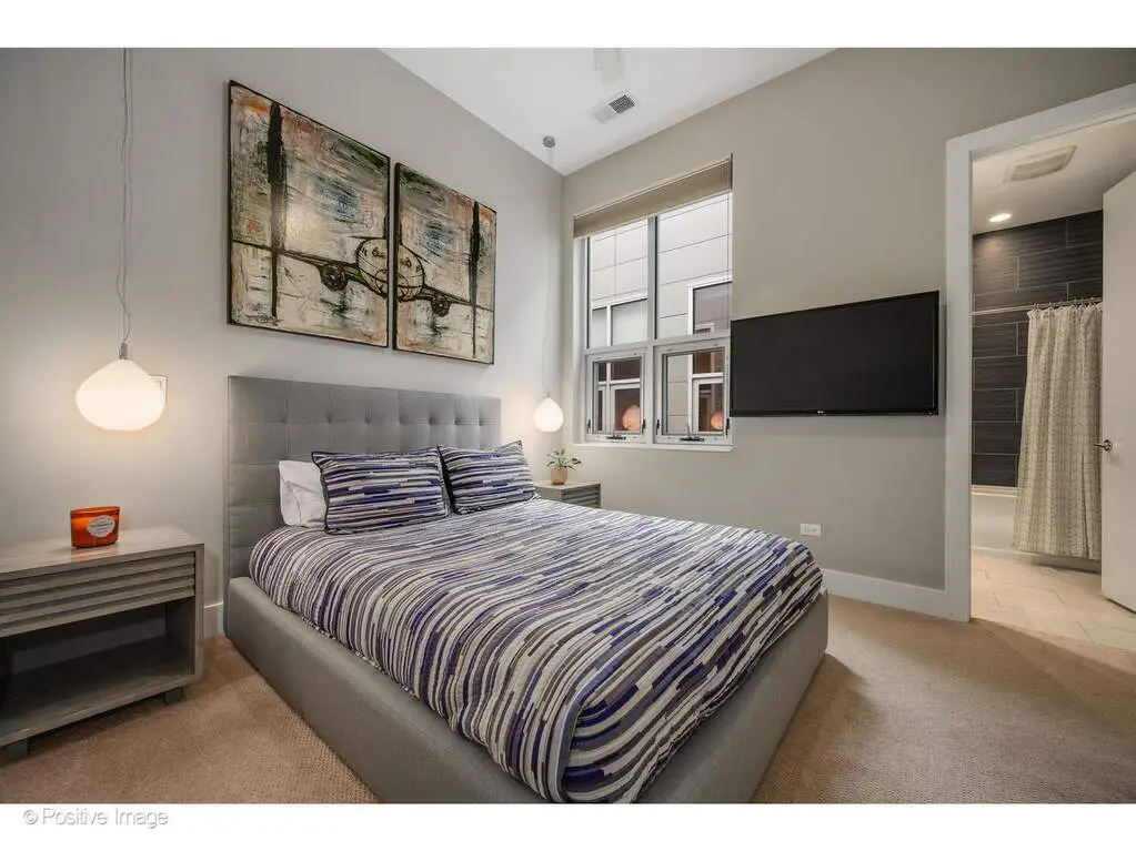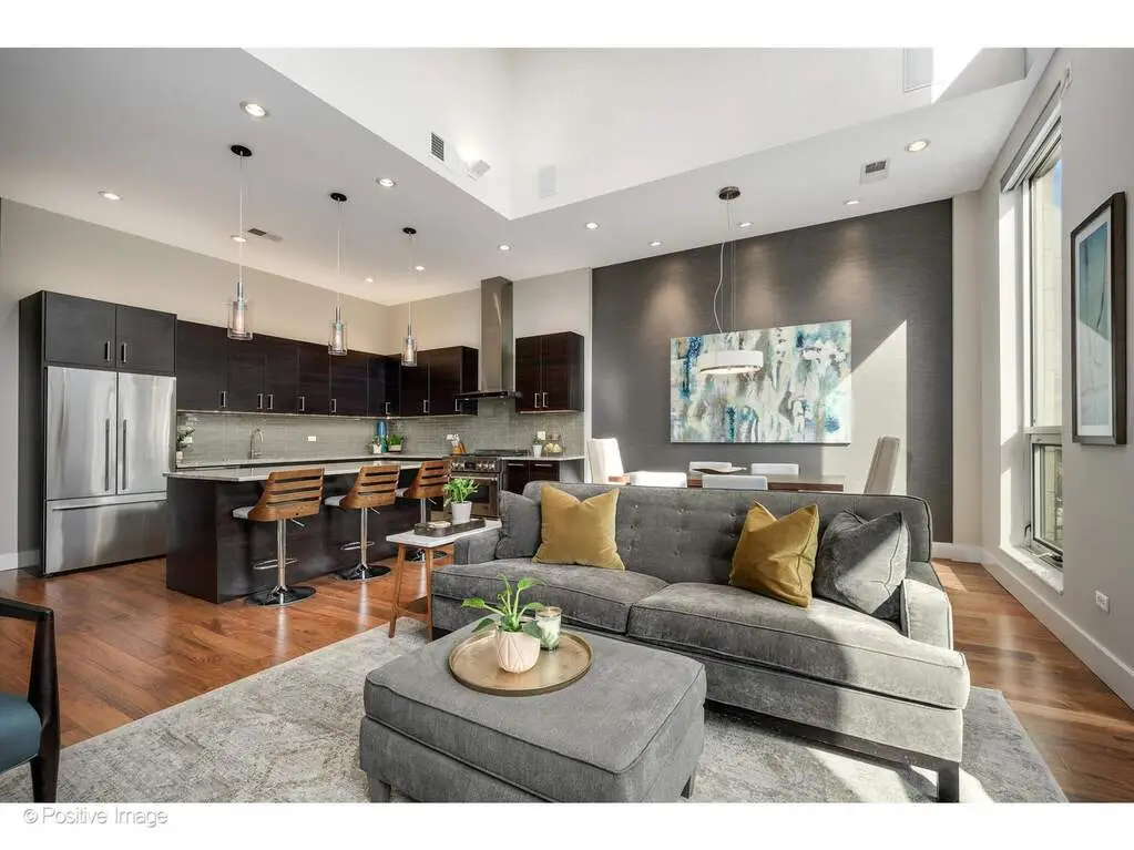 Stunning skyline views, refined design, and sleek modern features define this quintessential West Loop penthouse. Step directly into your home via a private elevator and discover a dramatic residence with soaring 22-foot ceilings and floor-to-ceiling windows that frame sweeping vistas of Willis Tower and downtown Chicago. The living room is a showpiece, enhanced with high-end lighting, custom millwork, marble window sills, and motorized shades throughout. Outdoor living is just as extraordinary, with a private rooftop deck and two additional balconies offering unforgettable views. Meticulous attention was paid to every detail and the result is nothing short of perfection. An elevator opens directly into the penthouse, where the main foyer finely clad in Venetian plaster welcomes you home. The open floor plan in the living spaces enjoys an abundance of natural light through two stories of windows. Both elegant and subtle, a contemporary floating built-in entertainment center feels like a piece of art on the wall. A separate dining area, large open kitchen, and a balcony make this the perfect home to entertain a party of any size. The chef's kitchen is a true showstopper and features Copat cabinetry, granite countertops, Fisher-Paykel, Jennair, and Dacor appliances, and a center island with breakfast bar. Just around the corner, a custom-built dry bar awaits with granite counters, a U-line wine fridge and refrigerator drawers, and custom cabinetry with lighting. The private roof deck spans 836 SQFT and is surrounded by a privacy wall, creating a serene oasis in the middle of the city. With sparkling city views of Willis Tower, this is the perfect place to entertain or enjoy a peaceful evening at home. The impressive primary suite features 14.8 ft ceilings, an accent wall clad entirely in custom millwork, a private balcony, custom walk-in closet, and a beautifully appointed ensuite bath with double sink and oversized shower. Traditionally built out as an office "nook" in the hallway, this space has been converted to a second primary walk-in closet and has been completely customized. The second bedroom has an ensuite bath that Jack-and-Jills into the hallway for convenient guest use. Currently configured as a den, the third bedroom features custom millwork, stunning built-ins, a huge walk-in closet, and an ensuite bath. Two-car tandem attached garage parking and a dedicated storage cage are both included in the price. Ideally located in the West Loop, walk to world-class restaurants, West Loop Farmer's Market, multiple gyms, Whole Foods, Mariano's, parks, playgrounds, daycare options, Skinner Elementary School, and easy access to the Loop, 290, and public transportation. Welcome home!