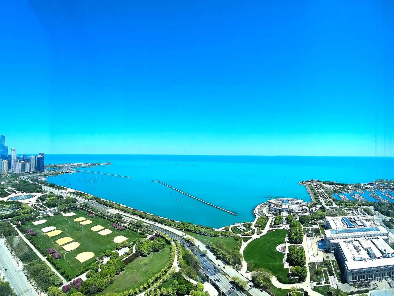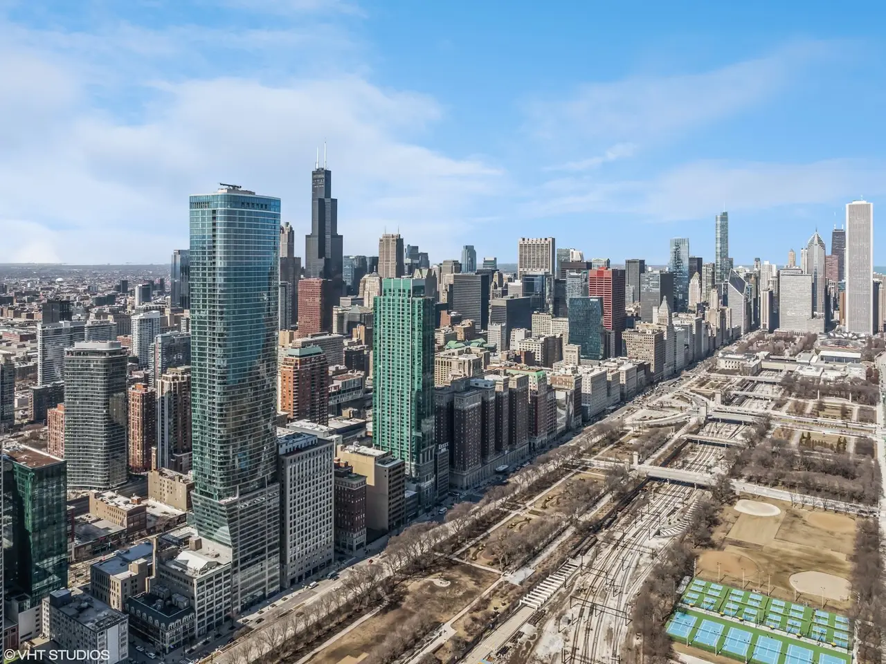 Spectacular Penthouse with the Best Views in Chicago. . . .Experience the best of city living in this extraordinary penthouse condo, perfectly situated across the street from Grant Park and the Museum Campus. Marvel at breathtaking, unobstructed views of Chicago's skyline, Lake Michigan, Millennium Park, and beloved landmarks like the Field Museum, Shedd Aquarium, Adler Planetarium, Burnham Harbor, and Soldier Field -- all visible through nine-foot, floor-to-ceiling windows. Boasting 2,920 square feet, this three-bedroom, three-bath residence features a large great room with living and dining areas, ideal for hosting gatherings while enjoying panoramic views of the Chicago Marathon, NASCAR races, park concerts, Bears games, and summer boating. . . .The gourmet kitchen is outfitted with custom cabinetry, granite countertops, and a breakfast bar, alongside high-end Sub-Zero and Wolf appliances, including a 48"" side-by-side refrigerator, double ovens, a six-burner gas cooktop, and a microwave-all in stainless steel. The spacious primary bedroom features two large walk-in closets, with an en-suite bath offering granite countertops, double sinks, marble floors, a bubbler soaking tub, and a separate walk-in steam shower. The second bedroom also has an en-suite bath with double sinks, separate tub, and shower, as well as its own walk-in and linen closets -- perfect for ensuring your guests' privacy. The third bedroom provides ample space and is adjacent to a full bath. A dedicated laundry room with a high-end washer/dryer and pantry adds extra convenience. Throughout the home, you'll find beautiful hardwood floors in the main living areas and hallways, and comfortably carpeted bedrooms, with custom-built closets and solid core doors in every room. . . .The building's resort-style amenities include both indoor and outdoor pools, a large sun deck, saunas, a playroom, an outdoor BBQ and dining area, and a state-of-the-art exercise facility. Two stylish hospitality rooms can be reserved for private events, and the 24-hour door staff along with on-site management ensure a welcoming experience. This unit has two prime side-by-side deeded parking spaces on the first floor -- both EV-ready -- along with a large storage locker and a larger storage room on the same floor as the unit. The parking spaces and storage room are deeded separately and may be purchased at an additional cost. Pet owners will appreciate the dog-friendly building complete with a covered dog run. . . .Don't miss the opportunity to enjoy these unrivaled panoramic views -- schedule your private showing today and experience one of the finest residences Chicago has to offer!