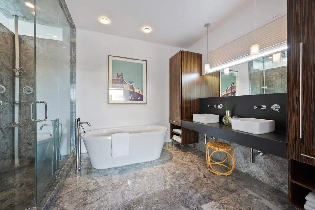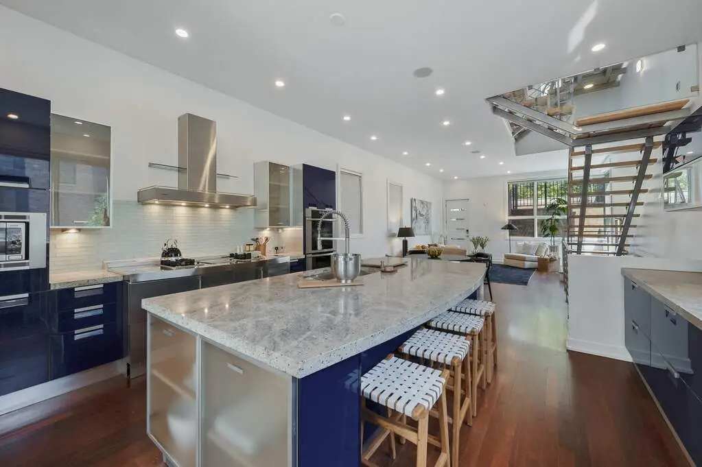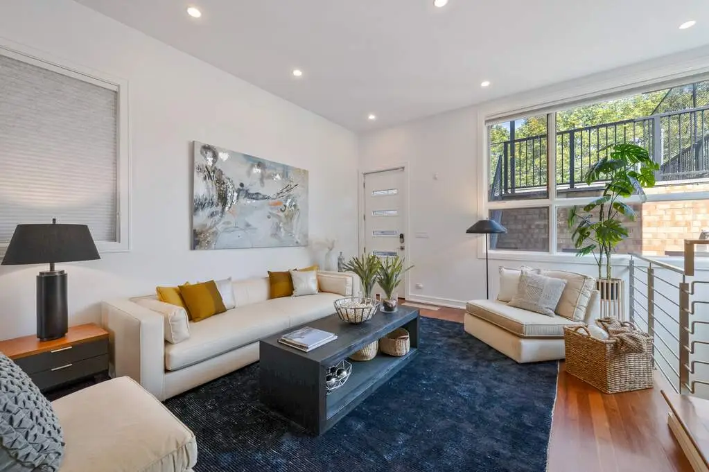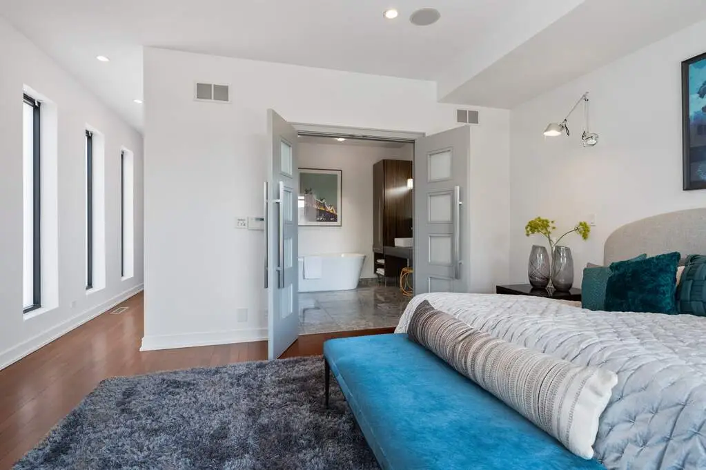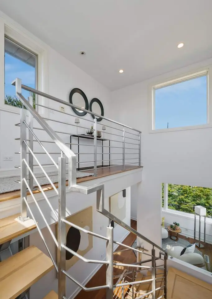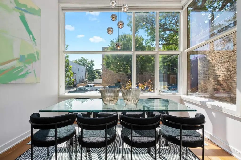 Welcome home to this sprawling modern oasis with five bedrooms, 3.5 bathrooms, a family room, dedicated office, wine cellar, and sauna. Located in the sought-after Pritzker School District, this over 5,000 sq ft modern masterpiece is just steps from Division Street and all the best that Bucktown and Wicker Park have to offer. Soaring ceilings throughout (10-12 feet) create an airy, dramatic feel. The ideal layout includes 4 bedrooms and a full laundry room on the upper level, along with multiple outdoor spaces-deck over the garage and a rooftop with unobstructed panoramic city views all year round. Light floods the home from every direction, thanks to a rare rear exposure and neighboring side yard. The chef's kitchen features professional-grade granite countertops, Arclinea cabinetry, Miele and Sub-Zero appliances, and opens to both the living room with fireplace and a stunning family room with separate dining area. This large and perfectly appointed kitchen makes cooking and entertaining a true experience. The primary bedroom provides you with serene privacy and the ultimate place for relaxation. Your en suite primary bath is truly spa-like, with a separate soaking tub, steam/shower system, and radiant heated floors. The incredible lower level includes a guest suite, a nearly 400-bottle brick wine cellar, second laundry center, and sauna. Zoned HVAC and a 2-car garage complete this exceptional home. No detail soared with recent updates to include new water heater, snow melt on stairs and walkway to house, newly installed decking on rooftop and additional decking and netting installed on garage roof. Ideally located between the intersection of Milwaukee Avenue/Damen Avenue and Western Avenue, near the North Branch of the Chicago River and the 606 Trail, enjoy walking to top rated restaurants, shopping, easy access to parks, public transportation and an abundance of activities.