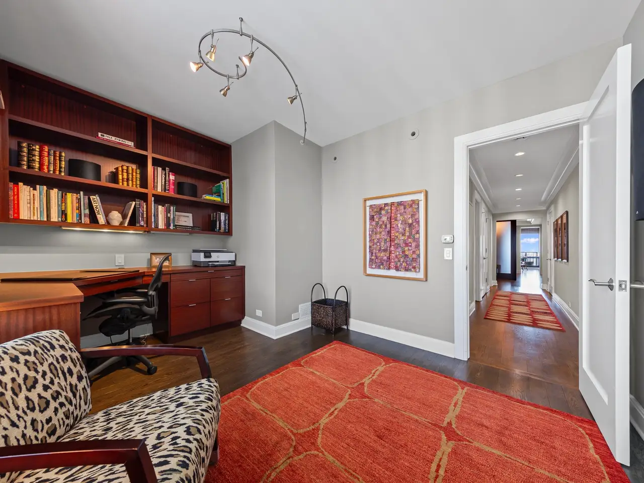 A stunning 3-bedroom, 3.1-bath lakefront residence (3,020 sq ft) on the 31st floor of The Carlyle; one of the finest condominium buildings in the city of Chicago. Its 20-foot terrace affords spectacular and forever unobstructed views of Oak Street Beach and Lake Michigan; historic East Lake Shore Drive and the Streeterville skyline. Watch the annual Air and Water Show from your 31st floor front-row balcony seat! No expense was spared in the complete remodel of this home. The sleek and sophisticated Snaidero kitchen is a chef's dream, equipped with top-tier appliances and complemented by a large dining and informal sitting area that's perfect for entertaining. There is also a large walk-in pantry with a washer and dryer, plus a sink for added convenience. The 27-foot living room offers floor-to-ceiling windows framing stunning lake views, while the elegant formal dining room comfortably seats ten guests for unforgettable meals. The private library/den provides a quiet retreat, and a separate desk area ensures that you have all the space you need for work or study. The master suite is a sanctuary with southerly and westerly views. It includes two dressing areas leading to dual baths, each with radiant floor heating for ultimate comfort. Bedroom 2 also has an ensuite bath with radiant heating. Bedroom 3 is currently being used as a secluded office, adding to the home's versatility. Further features include 9 ft ceilings, recently installed A/V system, a wonderful powder room, ample amounts of storage including a 7' x 6' storage room. There is beautiful hardwood flooring and tiling throughout. One attached valet parking space is included in the monthly assessment with extra parking and guest parking available. The Carlyle is renowned for its world-class amenities where residents enjoy 24-hour door staff, valet parking with EV-charging, and on-site management. The magnificence begins in the lobby and continues 38 stories, up to the rooftop recreation center offering an indoor lap pool, expansive fitness center, sun decks with jaw-dropping views, and a 90 ft ballroom with a catering kitchen - perfect for entertaining or hosting events. There is also an assigned storage locker. Superbly located in the Gold Coast moments from the Magnificent Mile and all the very best Chicago has to offer. 100% owner occupied. No pets or rentals permitted.