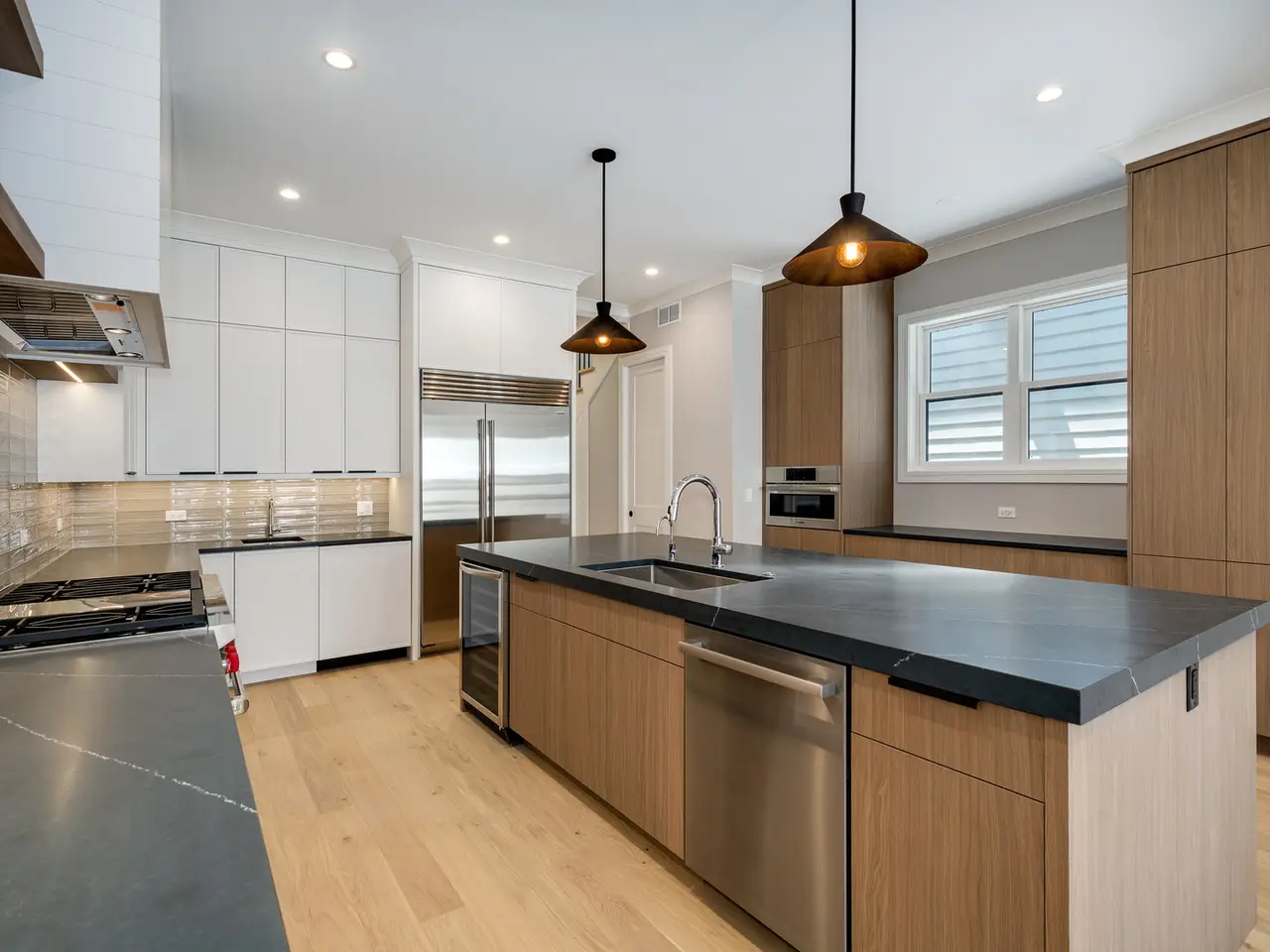 Stunning New Construction in West Town - Luxury Meets Livability Welcome to your dream home in the heart of West Town! This newly constructed 6-bedroom, 4 full bath, 2 half bath residence blends timeless craftsmanship with modern amenities across three levels of meticulously designed living space. Interior Highlights: Wide-plank 7"" oak hardwood floors throughout, Two elegant indoor fireplaces plus a cozy outdoor fireplace for year-round ambiance, Custom cabinetry and millwork that elevate every room Lower-level features: Two spacious bedrooms, Entertainment lounge with fully built-out media center, Private sauna in one-en-suite bedroom, Heated floors for ultimate comfort Chef's Kitchen & Entertaining Spaces: Sub-Zero refrigerator, Wolfe 6-burner range with griddle, and two Bosch dishwashers, Oversized walnut island perfect for gatherings, Butler's pantry with prep sink and beverage center, Walk-in pantry for ample storage Exterior Features: Heated limestone entry stairs with ice melt system, Expansive roof deck above the garage - ideal for entertaining or relaxing, Garage includes electric vehicle charging port This home is a rare find, offering both sophistication and functionality in one of Chicago's most vibrant neighborhoods. Steps from top dining, shopping, and transit options, yet tucked away on a quiet residential street. photos are from previous development, occupancy estimated mid November