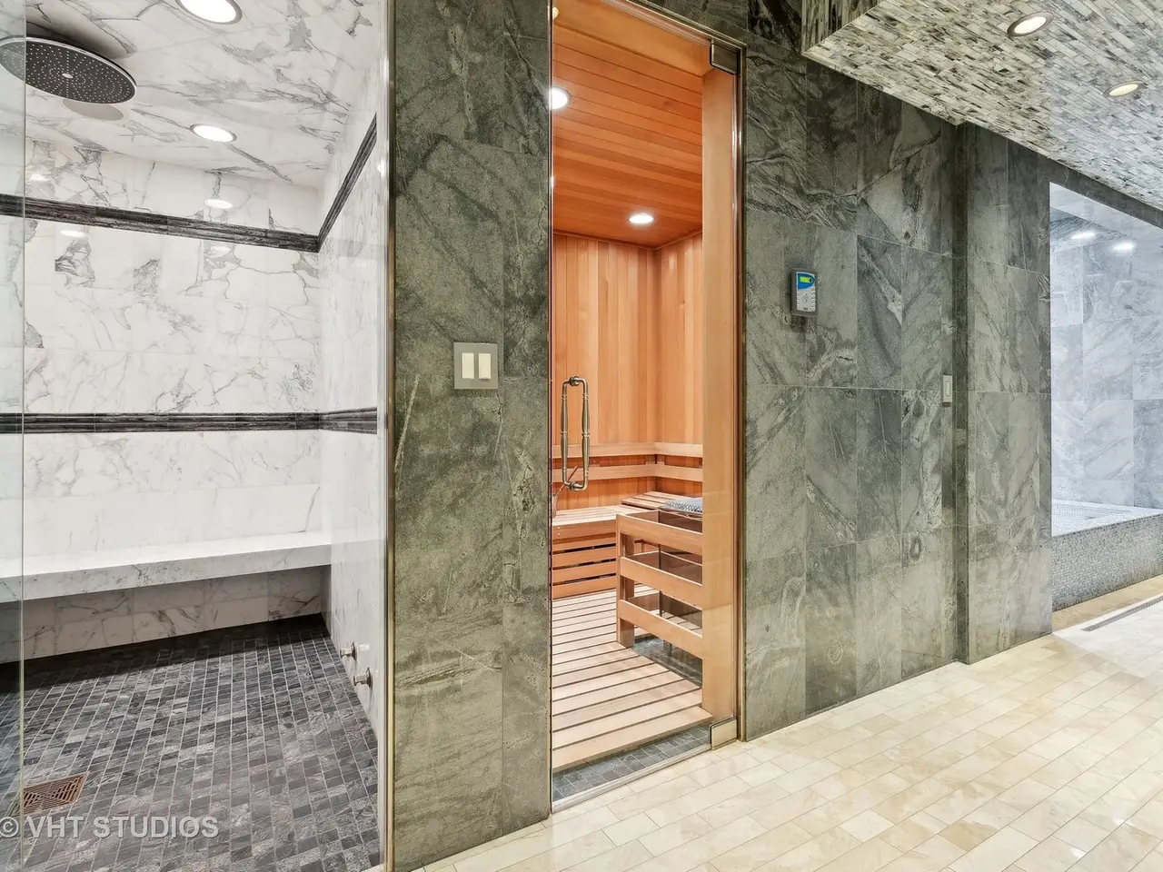 Spa with sauna, jacuzzi, and steam suite