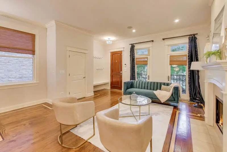 Stunning 5000 sq ft, 6-bedroom residence in the heart of Roscoe Village and the coveted Audubon School District! With 4 bedrooms conveniently located on the upper level, this thoughtfully designed home combines luxurious living with family-friendly functionality. Enjoy soaring 10' ceilings, radiant heated lower level, and three fireplaces throughout. The chef's kitchen boasts SubZero, Viking, and Dacor appliances, granite countertops, custom cabinetry, and premium Grohe and Kohler fixtures. Spa-inspired baths feature steam and rain showers, whirlpool tubs, and double vanities. Exceptional outdoor space includes a paver patio, garage roof deck, and two additional decks off a spacious top-floor bonus room. The finished English basement offers a rec room, office, and guest suite-perfect for extended family or flexible living. Zoned HVAC, pre-wired sound, and incredible storage complete this exceptional offering-just steps to parks, dining, and all the charm of Roscoe Village!