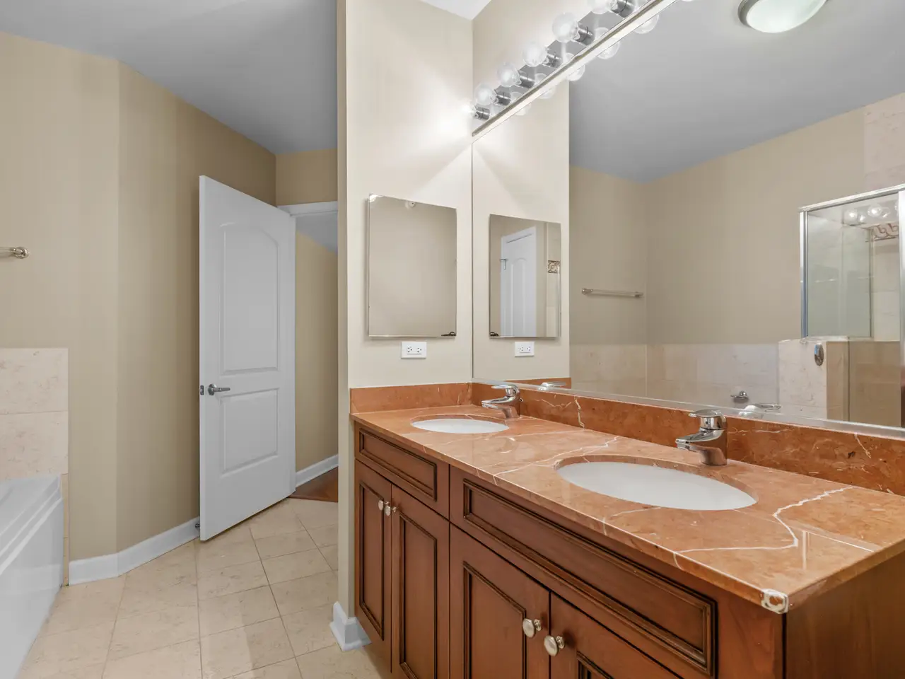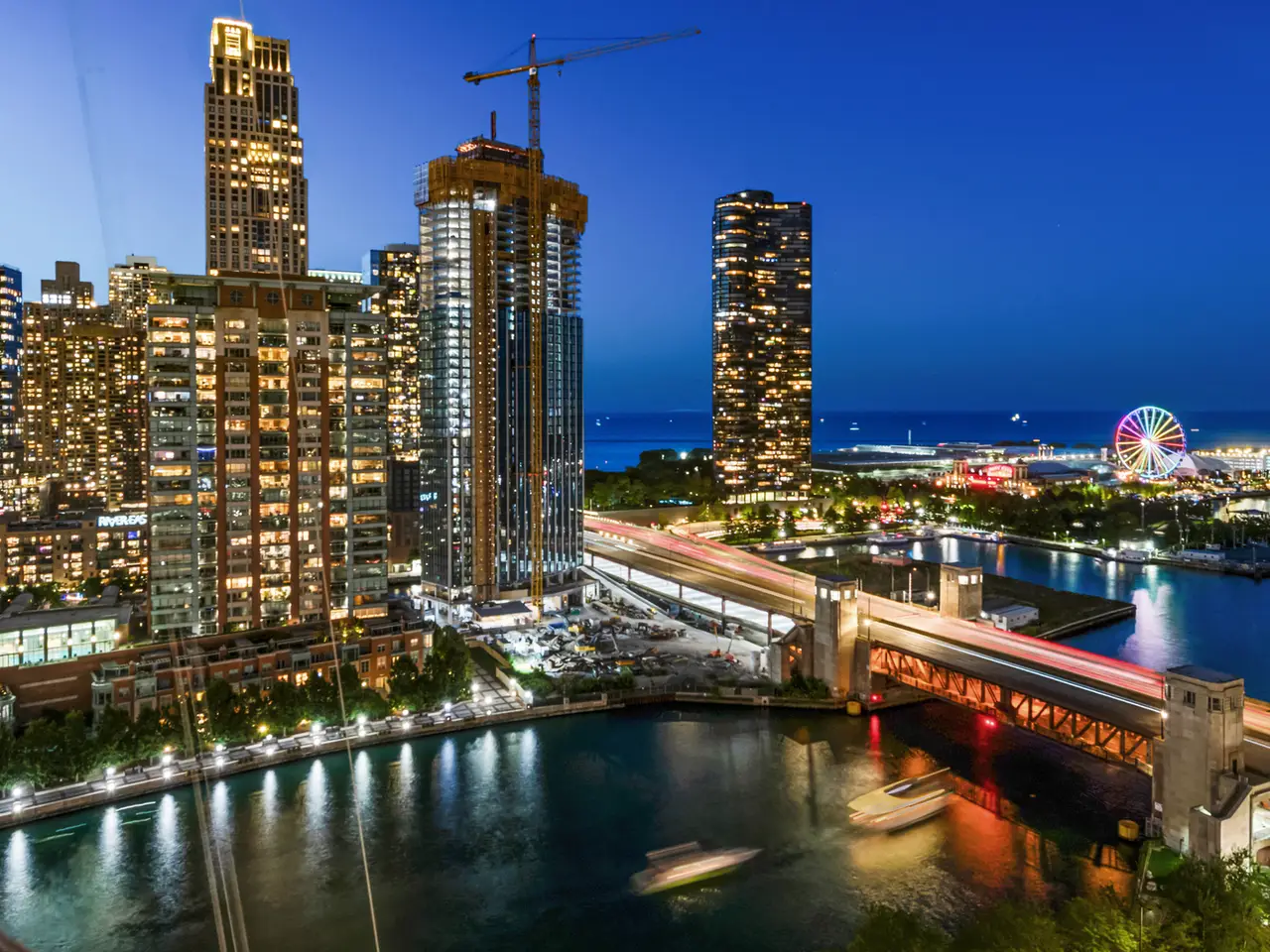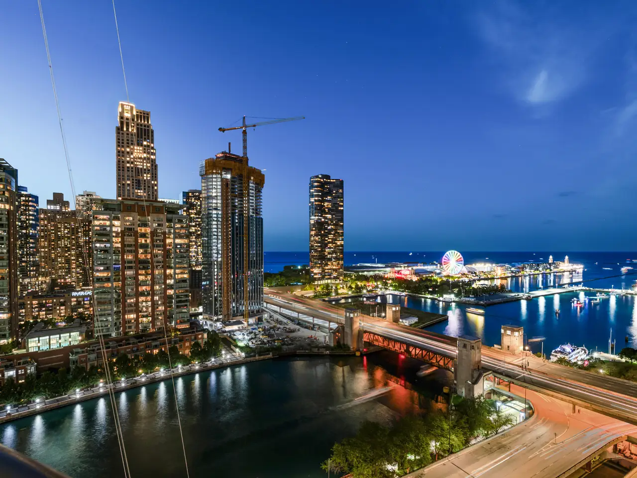 Experience the turnkey Residence 1814, a true 3 bedroom and 3 full bathroom, northeast corner residence at the Regatta tucked into the heart of Lakeshore East with unobstructed and permanent views of the Chicago River, Chicago's skyline and some of he most iconic and important buildings of the 1920s and 1930s Renaissance periods like the Merchandise Mart, Chicago Tribune Tower, Intercontinental Hotel an more modern structures of the last 25 years north of the river. Exquisite twilight and night time views north, west and east along the river and towards Lake Michigan and Navy Pier, Ohio Street Beach. Jut under 2000 square feet, Residence 1814 offers a formal entry, all hardwood floors throughout, open kitchen concept featuring chef's kitchen, 1.25"" bullnosed granite counters, raised bar, KitchenAid stainless steel appliances, 42"" all wood cabinetry with crown, glass panes, abundant storage space and drawers, open to living and separate dining areas, clear views to the lakeside. Floor to ceiling windows, balcony off living space. Staggered guest suite with ensuite bathroom off to the side, split apart from primary and second bedrooms. Custom lighting throughout from Lightology. Side by side washer and dryer. Sumptuous 22'x23' living and dining space combined. Each bathroom dressed in flor to ceiling natural marble stone. Primary bathroom with dual vanity, under mount sink, all wood vanity, separate shower and soaking tub, recessed medicine cabinets. Walk-in closet. Views from each room. This is a full amenity building with 24 hour doorstaff, onsite management, maintenance, engineer and property manager. Dry cleaners, library and common room, hospitality. Indoor lap pool, locker rooms, whirlpool, state of the art complete and comprehensive gym, beautifully outfitted hospitality room for private events, billiards room. Well funded with over $3.1M in reserves for 302 units. No special assessments. two side by side garage parking spaces (P4-263 and P4-264) included in the list price.