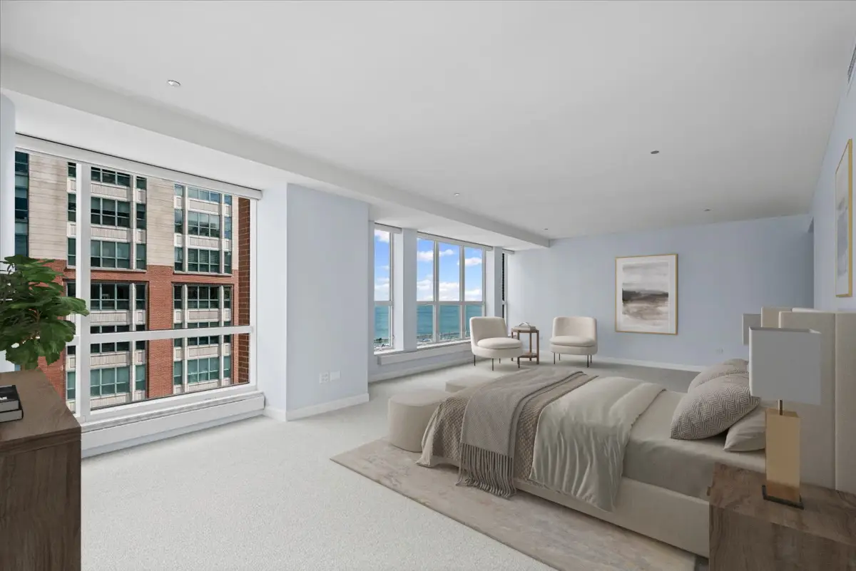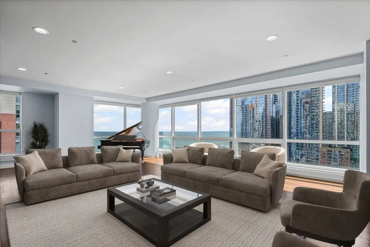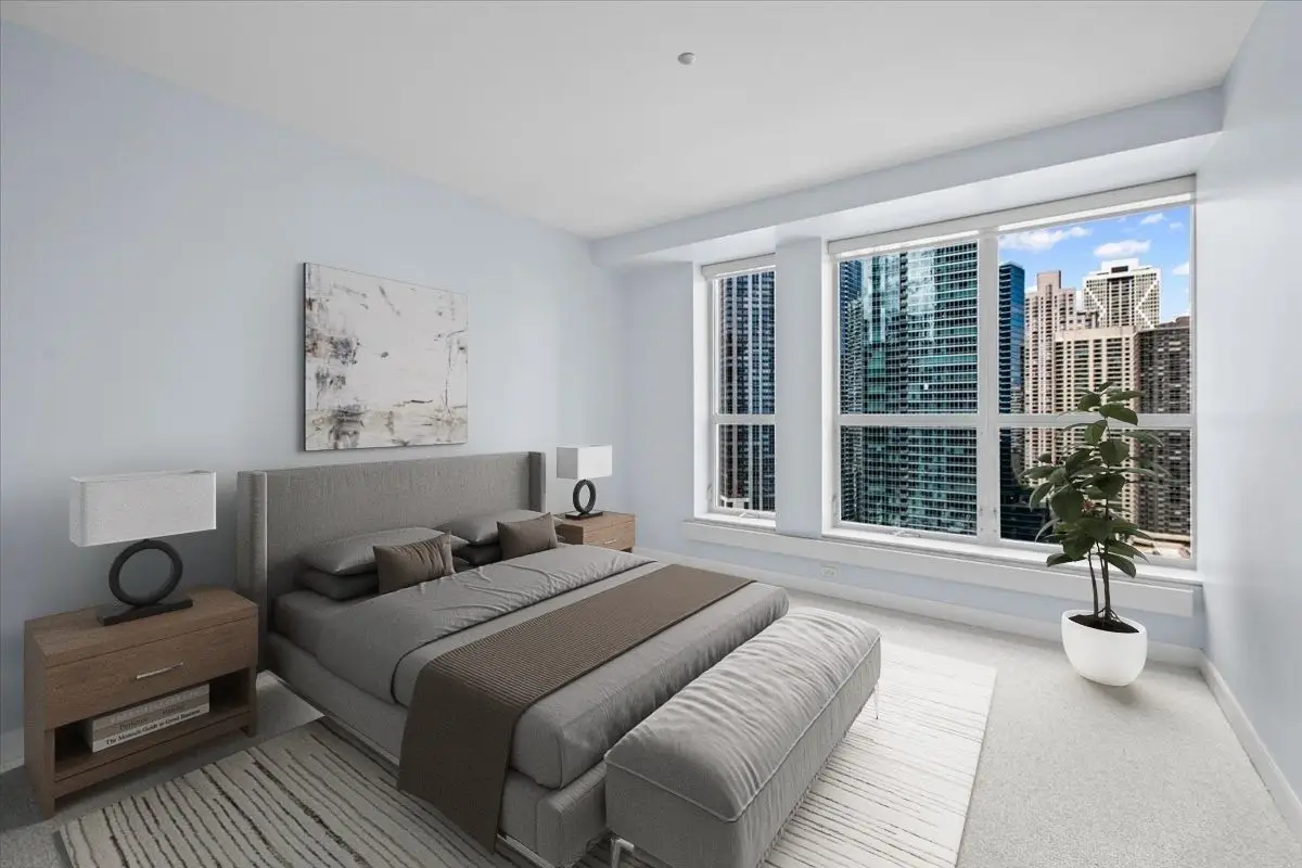 Experience full service, luxury living in Chicago's vibrant Streeterville neighborhood. This 3917 sqft home offers a spacious 3-bedroom, 3.1-bathroom layout, with 9 ft ceilings and 2 private balconies. The nearly 1000 sqft primary suite has a large walk in closet with custom lighting, motorized shades and a spa-inspired bath with oversized tub and steam shower. A separate wing (with its own exit door) has 2 more bedrooms, 2 bathrooms and a 17x16 family room which could be easily converted to a 4th bedroom or private office. The 18x16 kitchen has an oversized island, double ovens, SubZero, warming drawer and expansive counter space. Laundry room with S/S WD and separate sink. Breathtaking north, south and east views overlooking the lake, Chicago River and city skyline. List price includes two deeded parking spaces on the 1st floor of the garage: one space is double wide/handicap accessible, the 2nd is EV charging capable, guest parking spaces are also available. This full service building offers 24 hour door staff/maintenance team, onsite manager, dry cleaners, bike rooms and car wash bay. The 6th floor has a party room with catering kitchen, fitness center, yoga studio, indoor lap pool, jacuzzi, locker rooms with saunas and a large south facing sundeck. Located on the Chicago River just steps from Target, Whole Foods, Northwestern Medical Campus, dining and shopping. The building is very pet friendly and has an adjacent dog run. Over $4M in building reserves.
