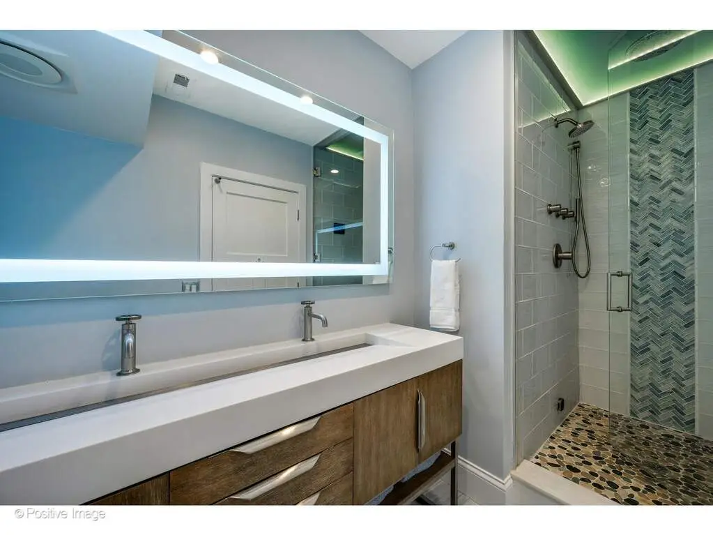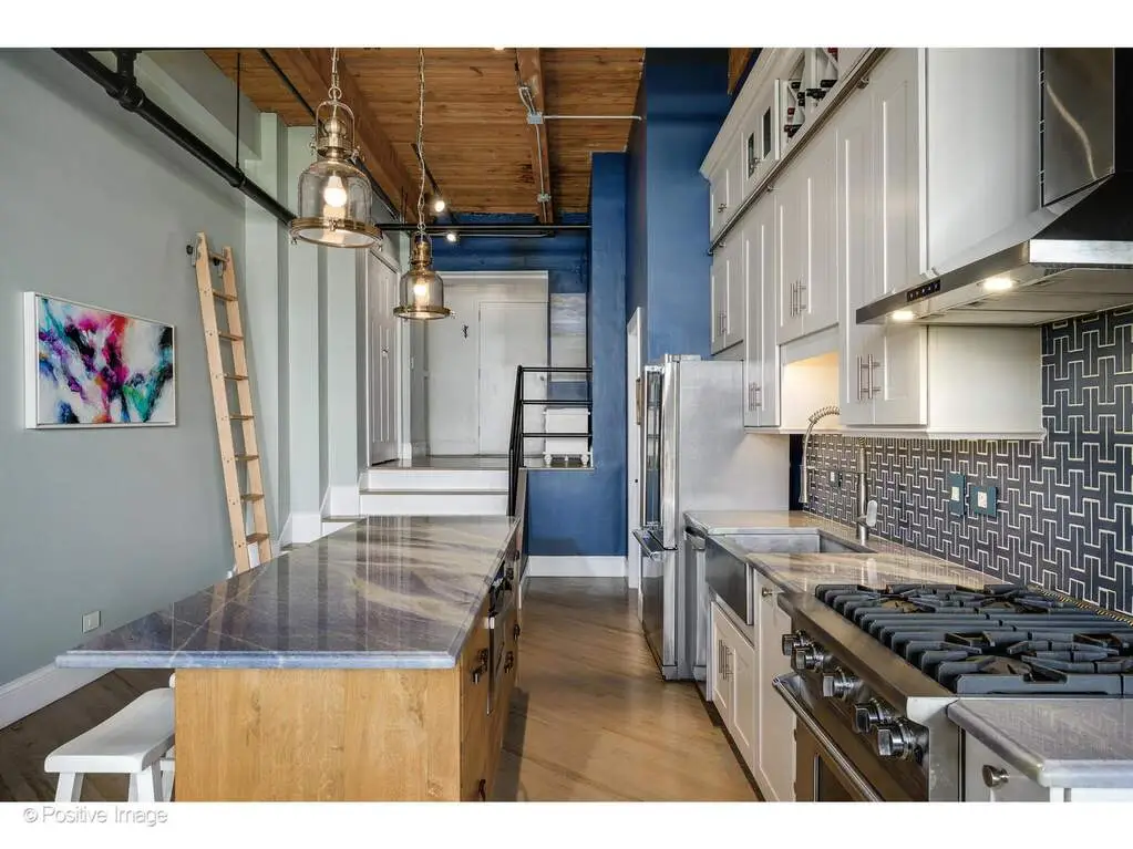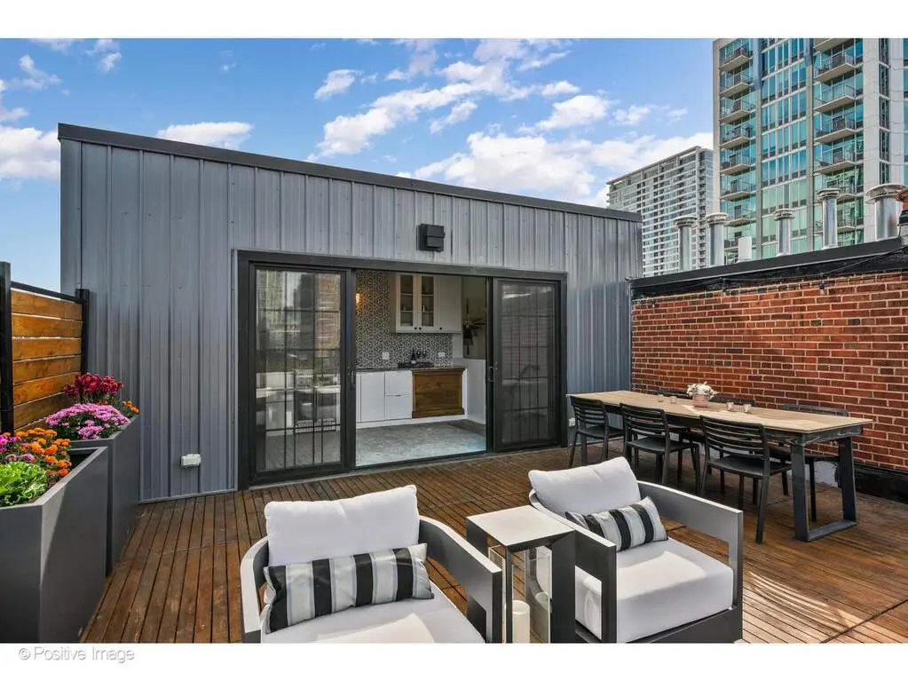 Spectacular penthouse duplex loft with stunning, skyline views in the heart of Chicago's vivacious South Loop neighborhood! Gut rehabbed in 2017, the owners reimagined the space, creating a home that is as vibrant as it is chic. Upon entry, an elevated entry foyer highlights the soaring, 14 ft timber beamed ceilings. A few steps down into the living space, exposed brick, an open floor plan, flawless hardwood floors, and giant windows help create a cool, yet relaxed vibe throughout the residence. The spacious living / dining area features a two-sided Napoleon BHD4PG Peninsula w/ fire glass fireplace and access to a 29ft balcony showcasing stunning, north-facing views. The living space flows seamlessly into an impressive cook's kitchen featuring Azul Imperial Quartzite countertops, Koak Design (Netherlands imported) Island wood cabinets / Dover white shaker wall cabinets, a Rockler Rolling ladder for high cabinets & storage, custom tile backsplash, an oversized island with breakfast bar illuminated by Elida Antique Brass Island pendant lights, and top-of-the-line Viking appliances. The primary suite enjoys the other side of the two-sided fireplace along with an abundance of natural light, an Emerson ceiling fan, custom designed walk-in closet with Red Elm Slab Closet door, and a luxurious ensuite bath with a steam shower and Hans Grohe Axor brushed nickel overhead rain shower, handheld wand and regular showerhead, Columbia double sink bathroom vanity, Dual Grohe Faucets- Aeropure, Kohler toilet, and a 72x36 Lighted vanity mirror. A graciously sized second bedroom clad in exposed brick walls enjoys an exquisitely appointed ensuite bath with Kohler Chrome Tub/Shower trim & toilet, Black Aluminum glass partition, and 24 x 32 Dimmable light in mirror. A laundry closet with stackable Whirlpool washer and dryer. Upstairs you will find a second level, a new addition and private roof deck added to the property in 2021. The stairway is lit by a Gravity chandelier by Forestier. At the top of the stairs, a family room awaits complete with a wet bar with and Abosi wine/beverage fridge, refrigerator and freezer drawers, Redrock Verge Hex Tess backsplash tile, Majestic 3cm Quartzite countertops, a Brizo kitchen faucet pulldown, and Crystorama Calypso Mini Chandelier. A wall of floor-to-ceiling windows slides open and leads to a 714 SQFT private roof deck - a true urban oasis with incredible skyline views. This home is the perfect place both to entertain on a large scale as well as live comfortably with many serene spaces to relax and unwind. The second level also features a third bedroom with white, brick walls and timber ceilings and a full bath with Kohler Chrome Shower trim, Concrete floor tile, and a unique wall-hung sink. One deeded parking space included in the price. Ideally situated within close proximity to the lake, parks, playgrounds, Soldier Field, Museum Campus, schools, and public transportation.