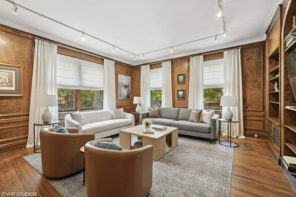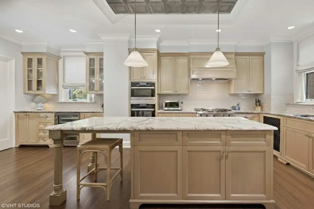 A truly exquisite vintage home on one of the most coveted streets in Chicago. This immaculate Gold Coast condo lives like a single family home with approximately 4300 sf of living space all on one level and beautiful tree-top views from every window. Featuring 3 bedrooms and 4 full bathrooms, this home has kept all of its vintage charm with crown molding & hardwood floors throughout, ornate millwork, custom built-ins, a wood burning fireplace & antique mantles. Enter the home through a private elevator bank and step into the grand foyer. Chef's kitchen features shaker cabinets, custom hood, high-end stainless steel appliances, island with seating, separate breakfast nook, dry bar with beverage fridge & a stunning tray ceiling. Continuing on, you will find the formal dining room, perfect for hosting gatherings, followed by the expansive formal living area with stunning vintage details and ample room for seating & entertaining. The more intimate family room is just around the corner surrounded by beautiful built-ins and an attached wet bar. All 3 bedrooms are generously sized and offer ensuite bathrooms. The primary bedroom features a luxurious bathroom with double vanity, walk-in rain shower, separate soaking tub & ample storage. A separate private office, full bathroom & massive laundry/mud room off the kitchen round out this spectacular home. Pet friendly and conveniently located on a premier quiet tree-lined street. Experience city living at its absolute finest in this highly sought-after building designed by renowned architect Andrew Rebori. Building amenities include 24-hour door staff, professional management, full-time engineer, in-unit package delivery, and two oversized storage rooms. Steps to Lake Michigan, the Lake Front Trail, Oak Street Beach, Goudy Park, Latin & Francis Parker schools, transportation, restaurants, cafes, nightlife and Magnificent Mile shopping. The neighborhood also offers convenient grocery stores, pharmacies and cleaners that all deliver. Ideal primary or in-town property. Indoor heated garage parking included.