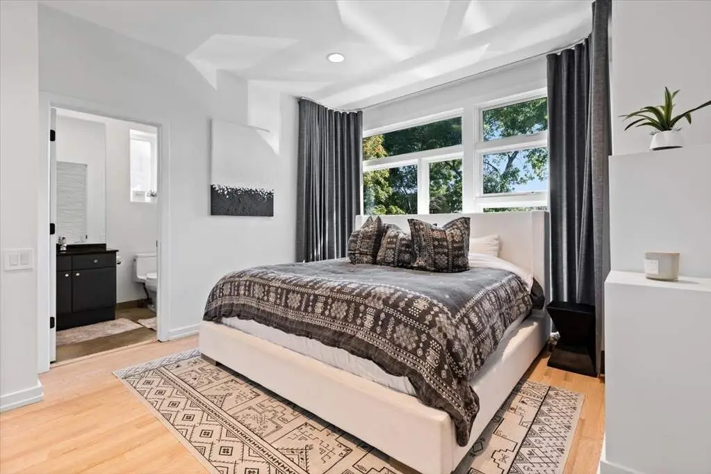 Wonderfully modern, six bedroom home in the perfect Bucktown location! This unique floorplan allows for light to flood the entire home and offers architectural details everywhere. At the front of the home is a secluded office and powder room with a formal living room above that overlooks Winchester with floor to ceiling windows. The main level has a large dining room with a huge skylight stories above, an updated kitchen with quartzite countertops and a full wet bar, and a spacious family room at the rear of the home where you can step outside directly at grade to a multi-level outdoor space. One level up is a huge primary suite that includes a fully renovated bathroom with separate shower and tub, double vanity, heated floors, and more. Additionally enjoy a balcony, three closets including two full walk-ins. The next bedroom is the perfect guest suite with an on-suite bathroom, followed by two more bedrooms and side by side laundry. The stairs take you up to the roof where there is the opportunity to build out a roofdeck with great city views. The lower level includes a large recreation room and huge bedroom with an on-suite bathroom or place to create an incredible home gym. This location can't be beat and is walkable to everything Bucktown and Wicker Park offer, the 606, shopping, dining, Churchill Park and the Blue Line!