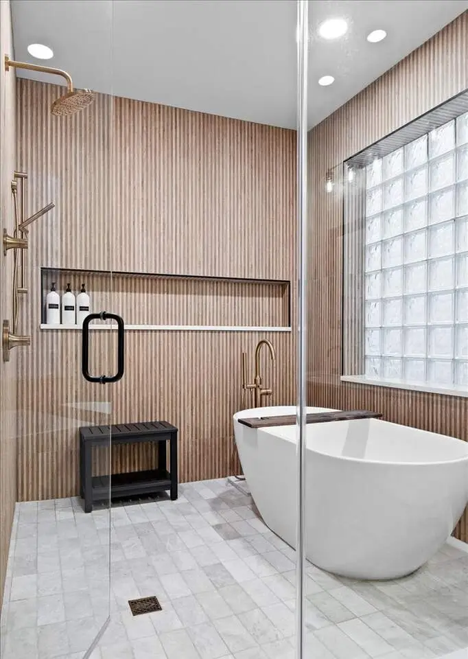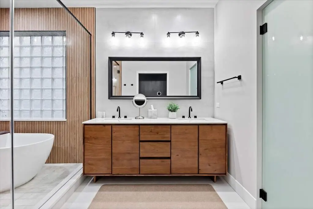 Fully renovated primary bathroom with heated floors