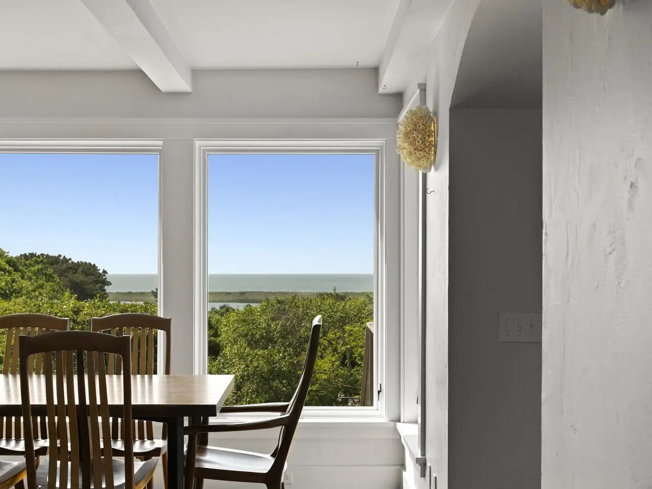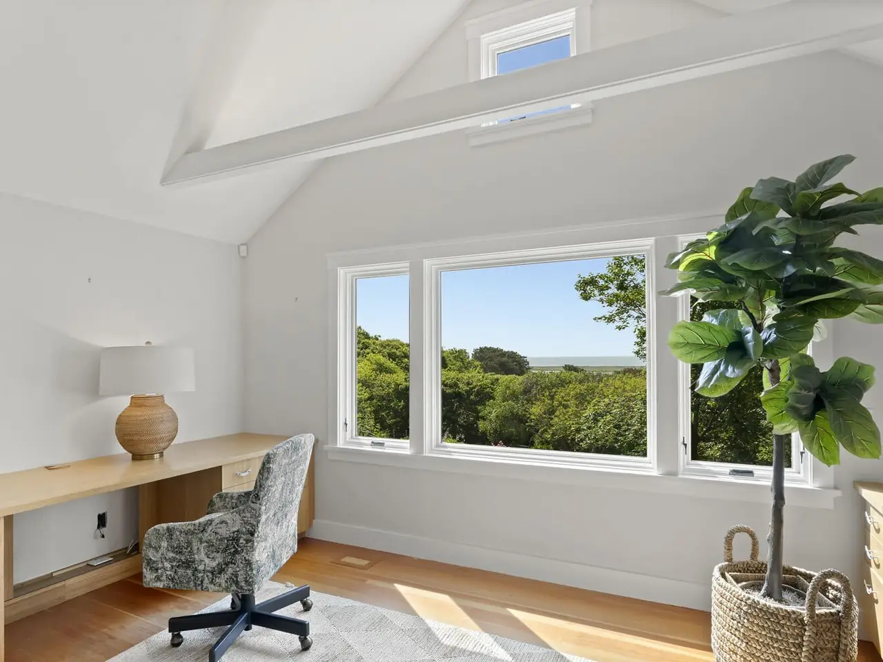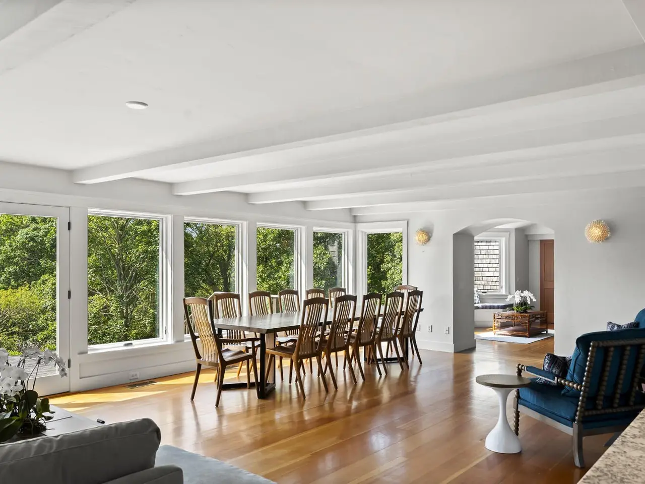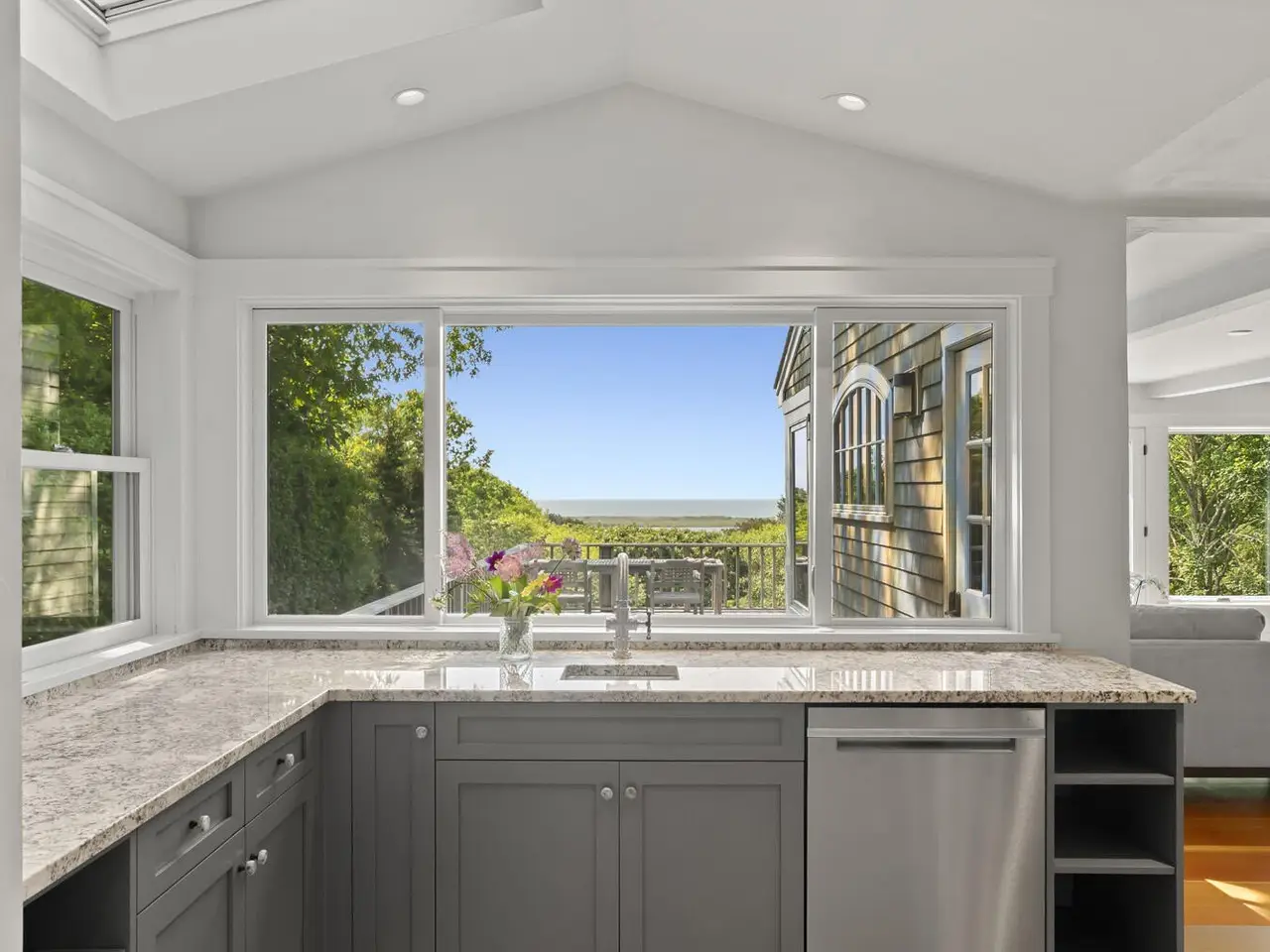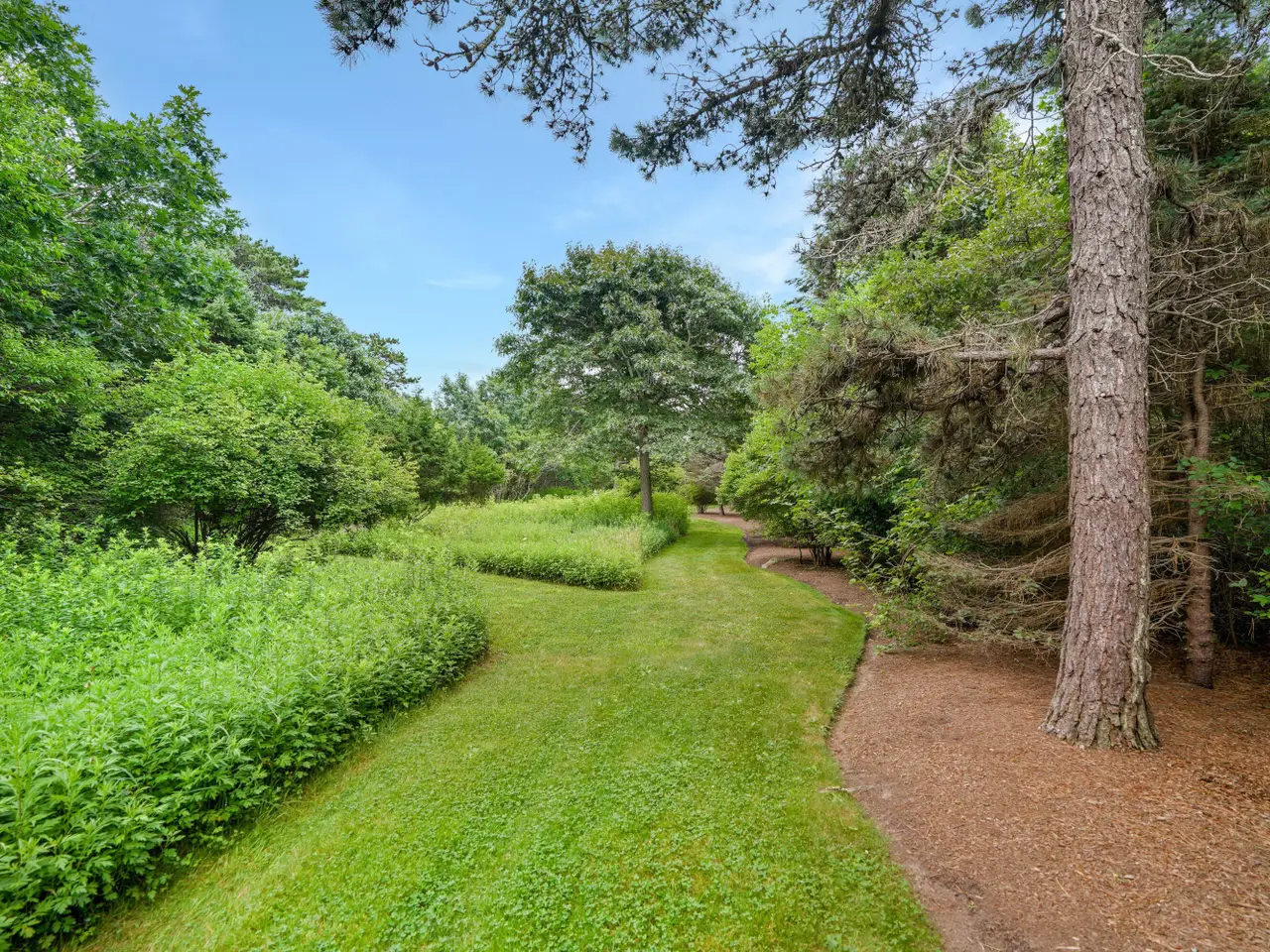 A commanding pond front retreat with a private dock and South Shore views - this exceptional residence offers a rare blend of privacy, elegance, and modern comfort. Originally built by Tom Tate and renovated in 2018, it exudes contemporary sophistication while embracing its natural surroundings. A private dock on Chilmark Pond provides direct water access and stunning South Shore sunsets. Follow a beautifully manicured path-an iconic Vineyard feature-to your dock and cross the pond to your private beach lot. Surrounded by over 7 acres of abutting conservation land, the setting is peaceful and secluded. Meticulously designed gardens enhance the home's timeless charm. The expansive first floor is perfect for entertaining, with open living spaces and a private office. The ground level offers a relaxed lounge with a wet bar and backyard access. Upstairs, a luxurious primary suite spans the entire second floor, featuring two private bathrooms and panoramic water views. More than a home-this is an elegant, serene lifestyle. A separate guest house is also available.