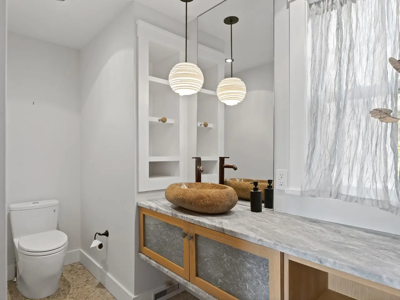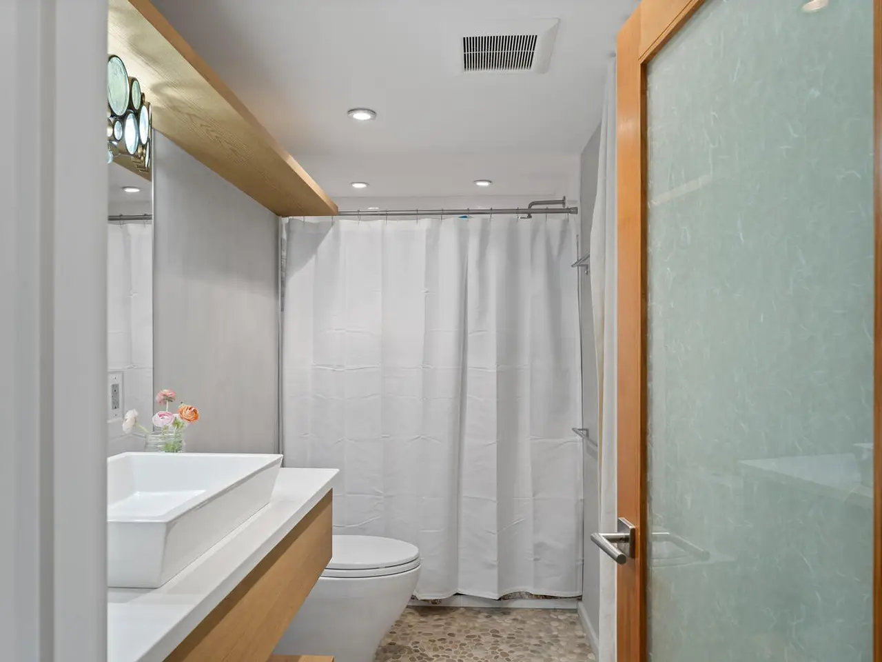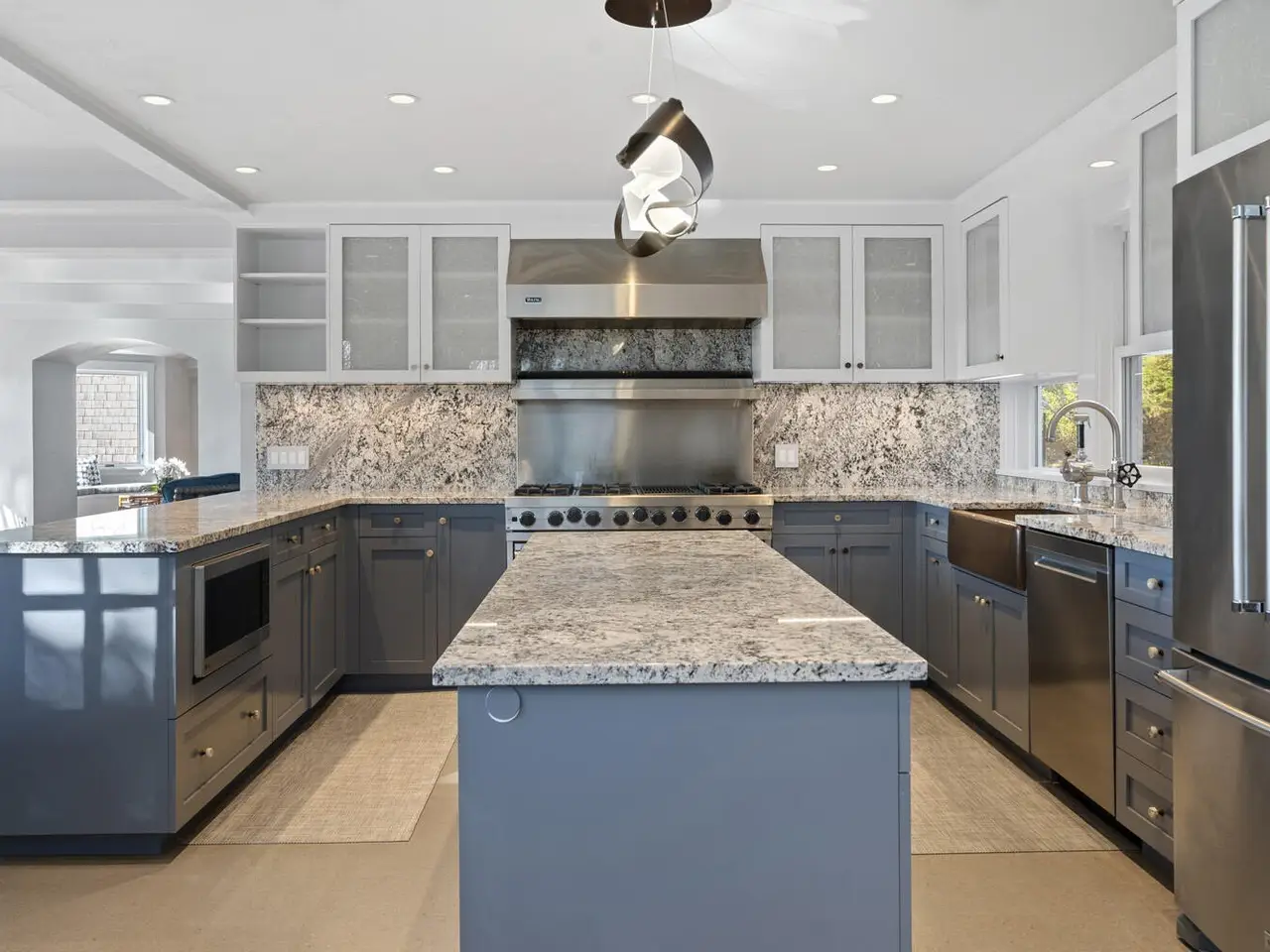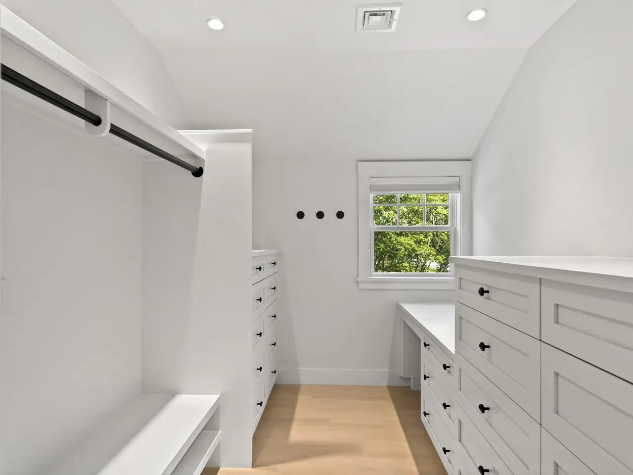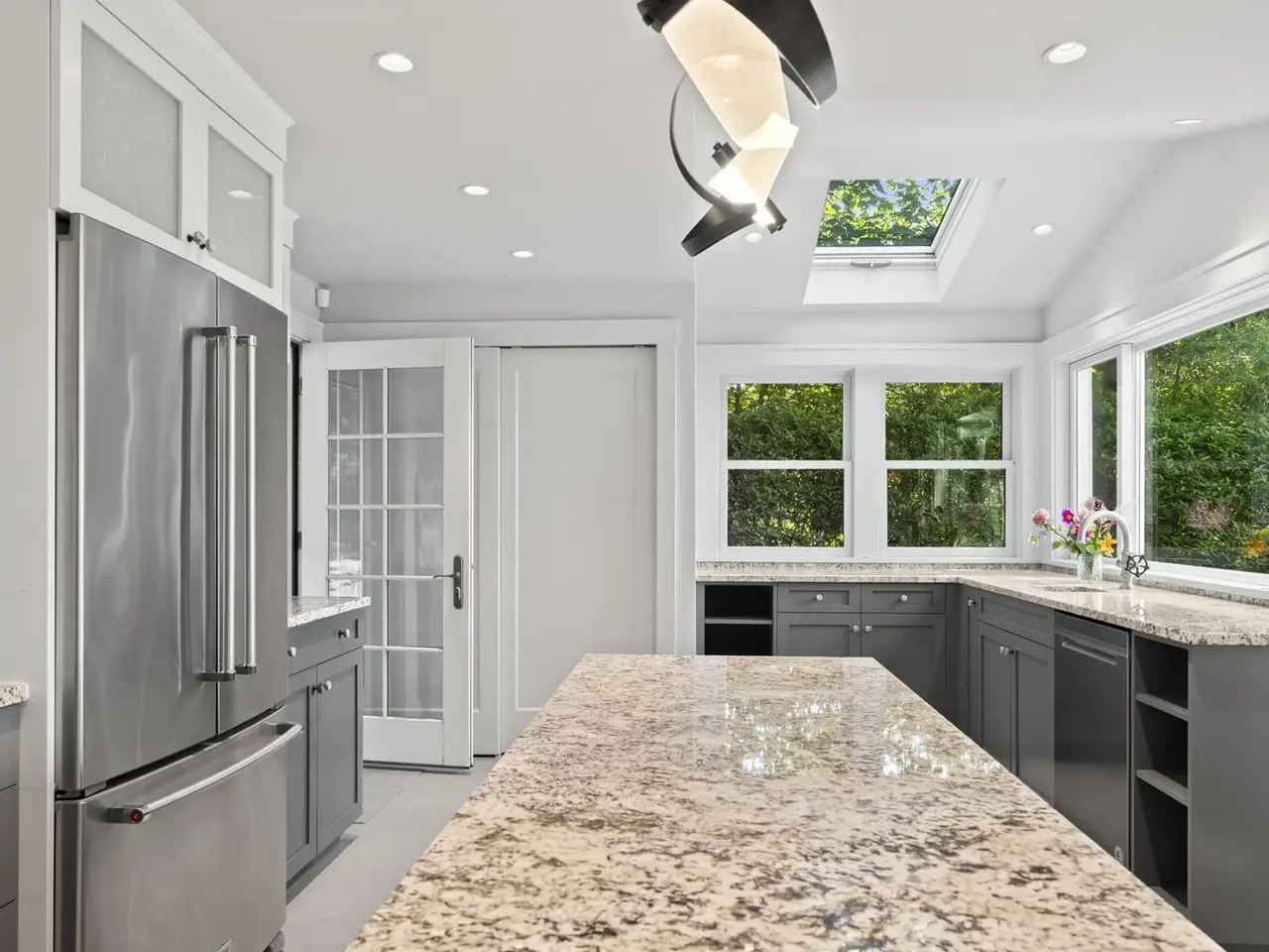A commanding pond front retreat with a private dock and South Shore views - this exceptional residence offers a rare blend of privacy, elegance, and modern comfort. Originally built by Tom Tate and renovated in 2018, it exudes contemporary sophistication while embracing its natural surroundings. A private dock on Chilmark Pond provides direct water access and stunning South Shore sunsets. Follow a beautifully manicured path-an iconic Vineyard feature-to your dock and cross the pond to your private beach lot. Surrounded by over 7 acres of abutting conservation land, the setting is peaceful and secluded. Meticulously designed gardens enhance the home's timeless charm. The expansive first floor is perfect for entertaining, with open living spaces and a private office. The ground level offers a relaxed lounge with a wet bar and backyard access. Upstairs, a luxurious primary suite spans the entire second floor, featuring two private bathrooms and panoramic water views. More than a home-this is an elegant, serene lifestyle. A separate guest house is also available.